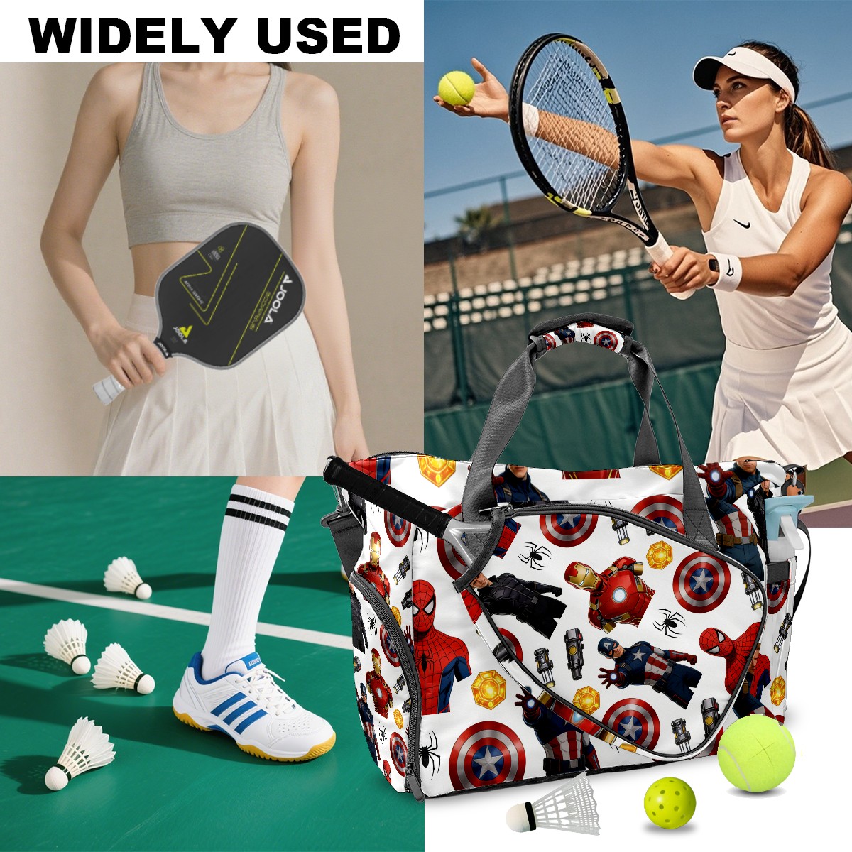 Pickleball Tote Bag Carryall for Paddles Balls and Accessories, Portable Lightweight Gear Bag for Players(创作经典IP图 (6))