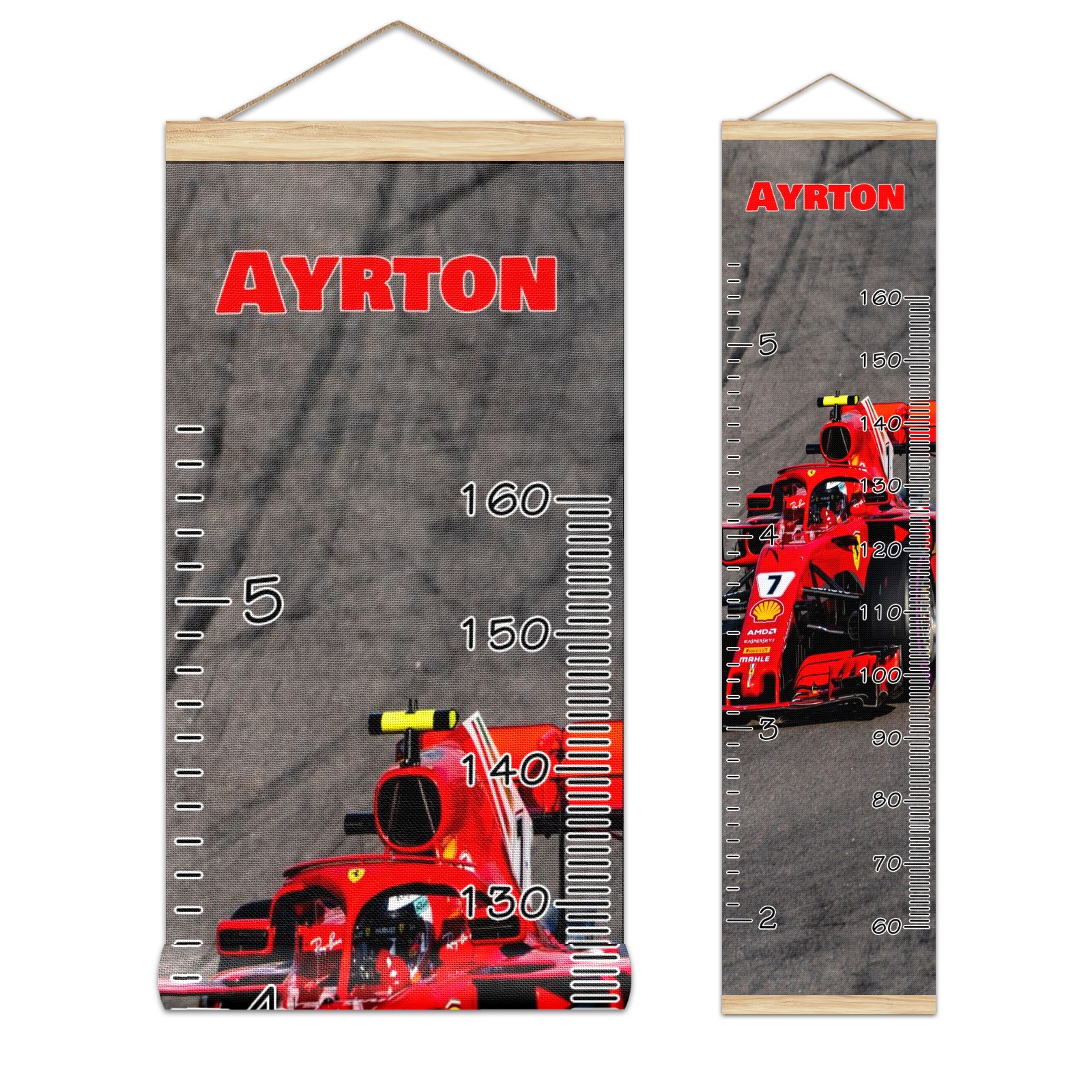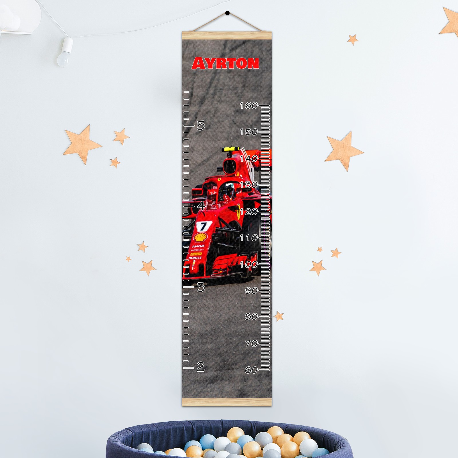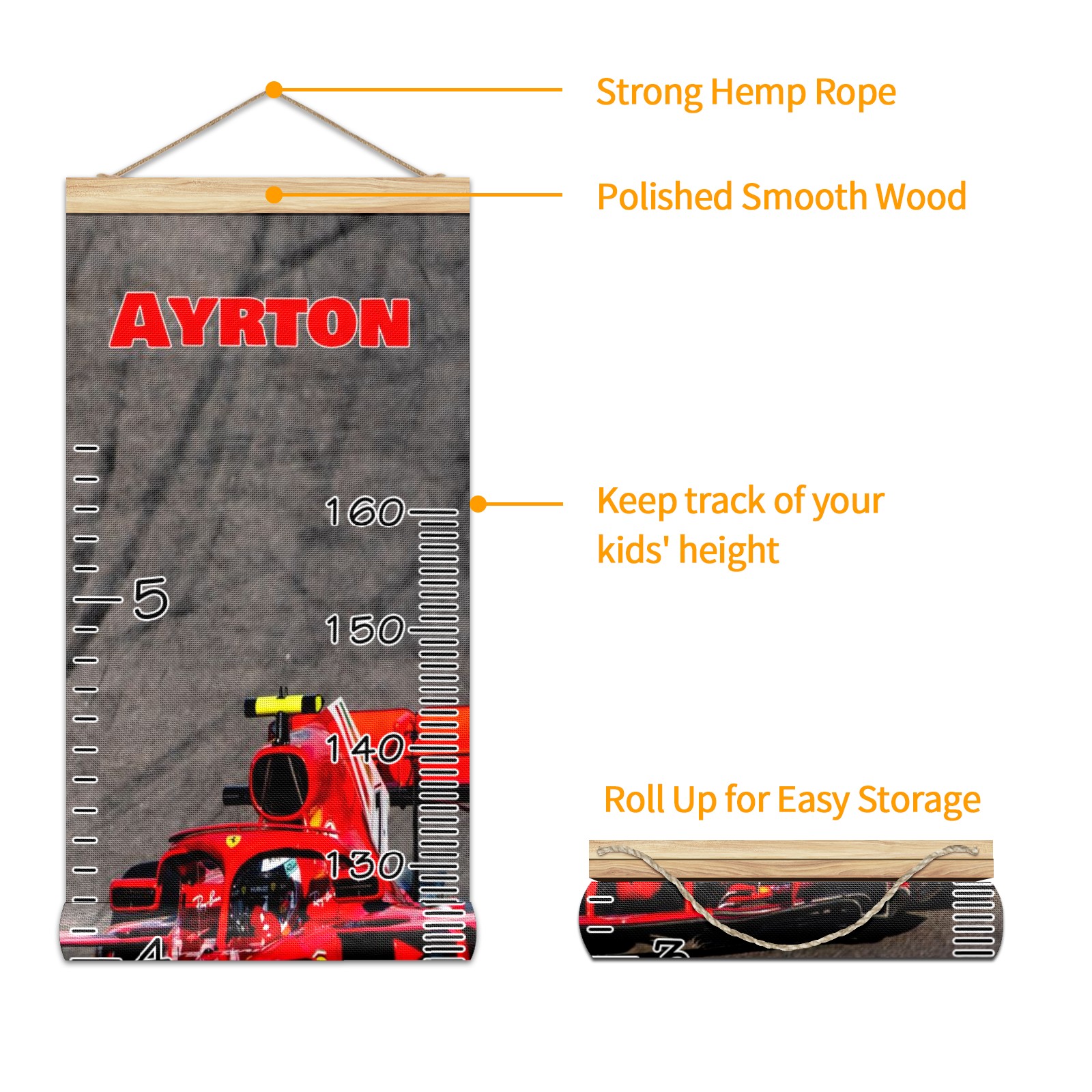 Personalized Kids Name Growth Chart Ruler for Wall Wood Frame Canvas Height Measure Chart 13.4x56 in Hanging Growth Chart RACE CAR2.14 Boys Girls Room Decor