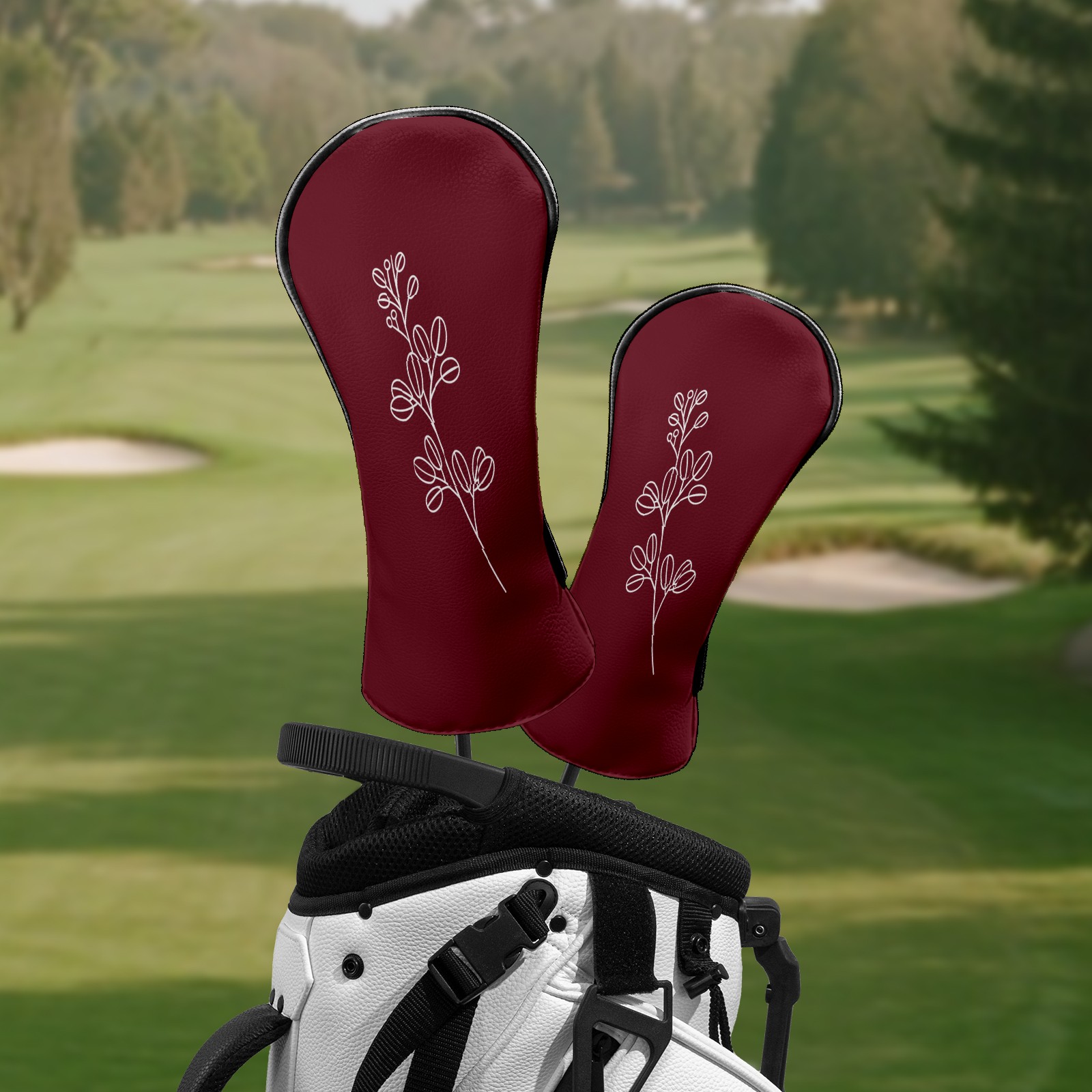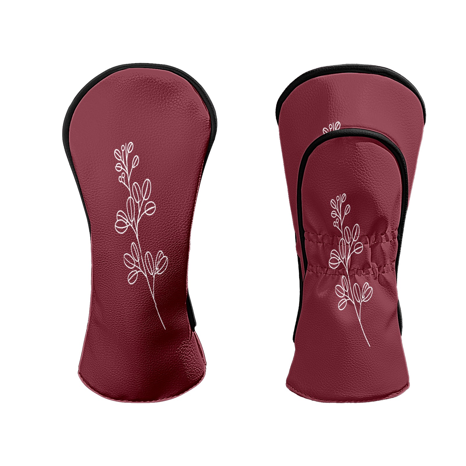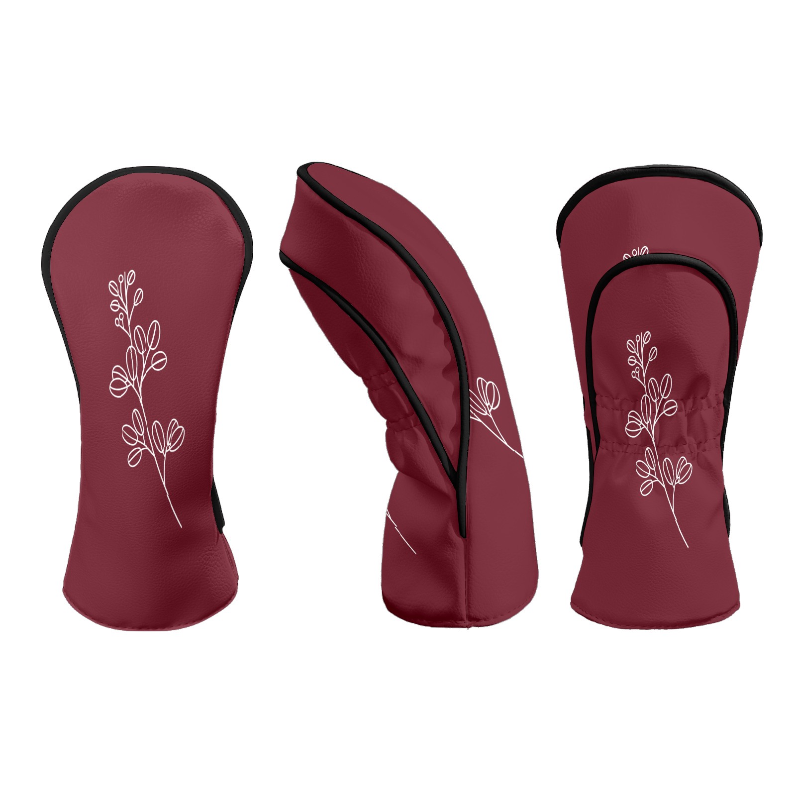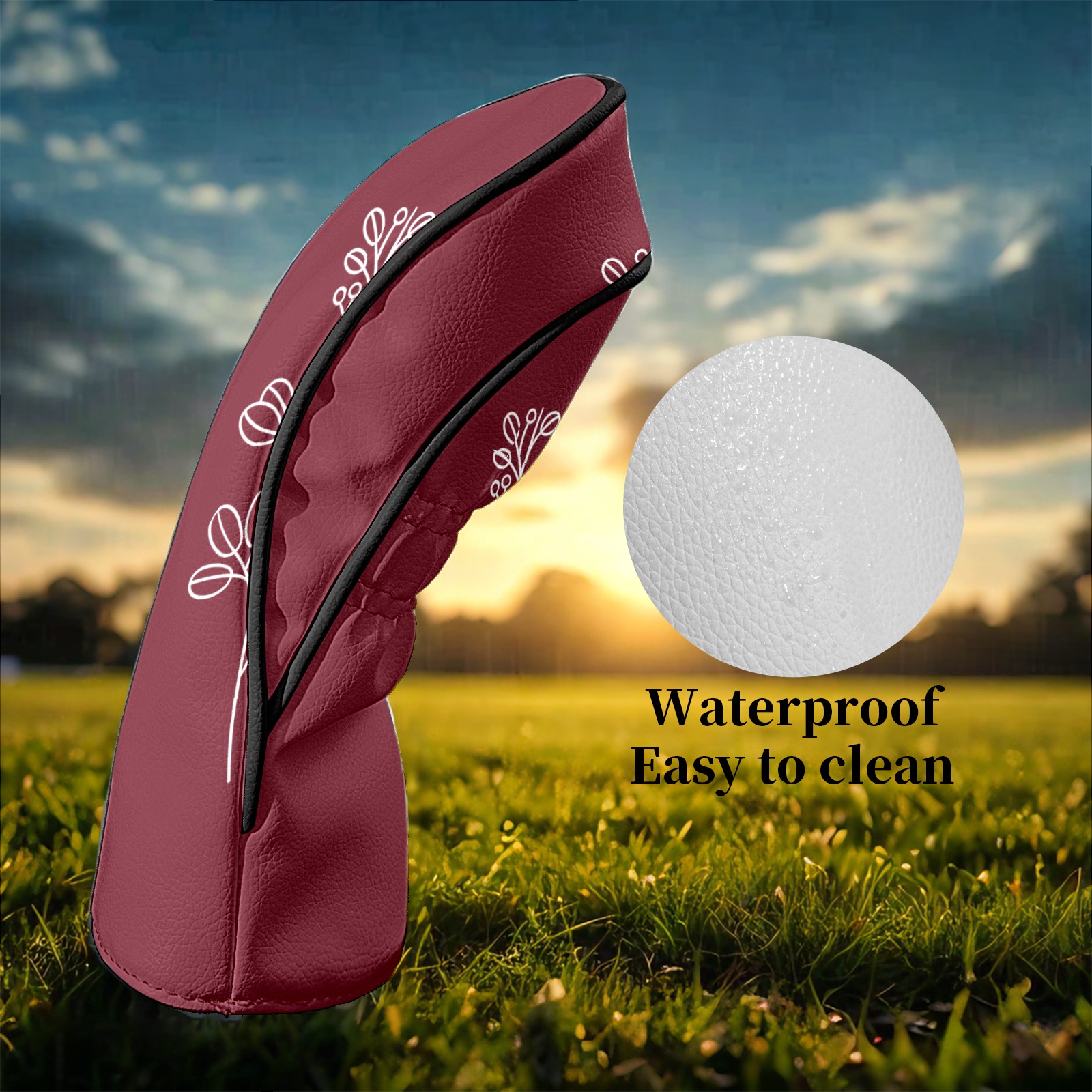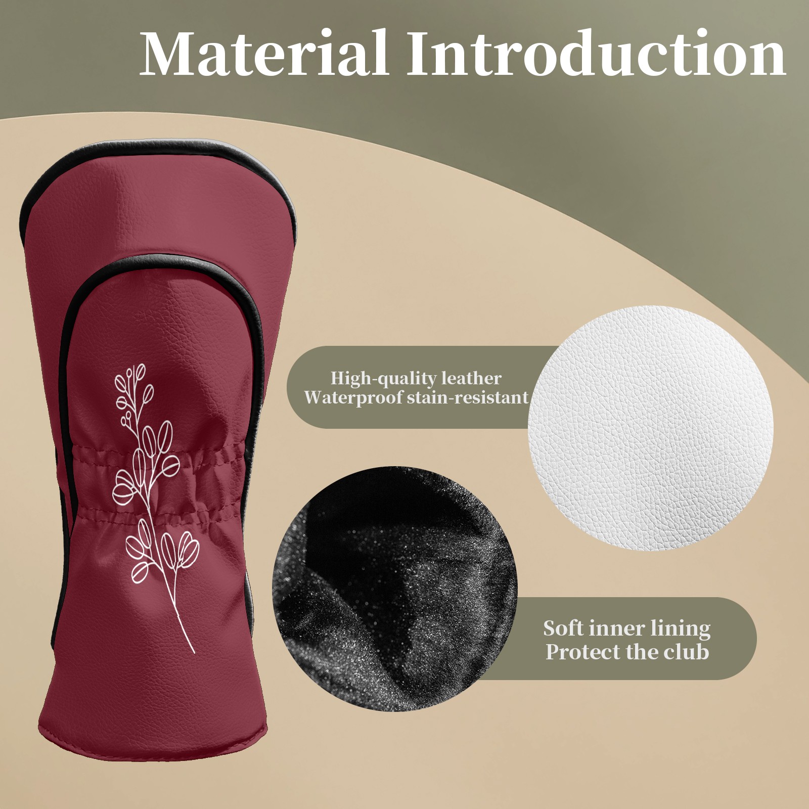 Golf Head Covers Leather Driver Head Cover, Premium Golf Club Covers with Soft Lining Fits Driver Hybrid Fairway 3/5 Wood Cover for Women Men Boys Girls (葉 赤い きれい)