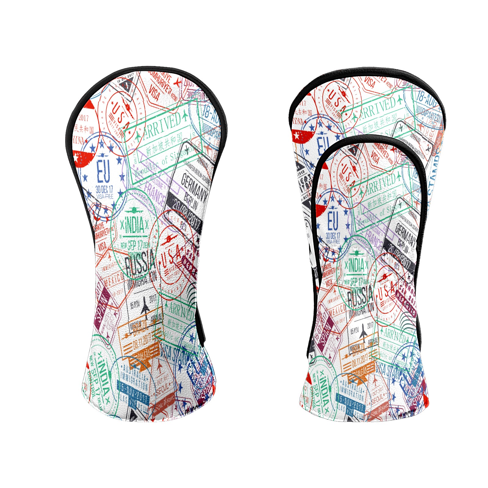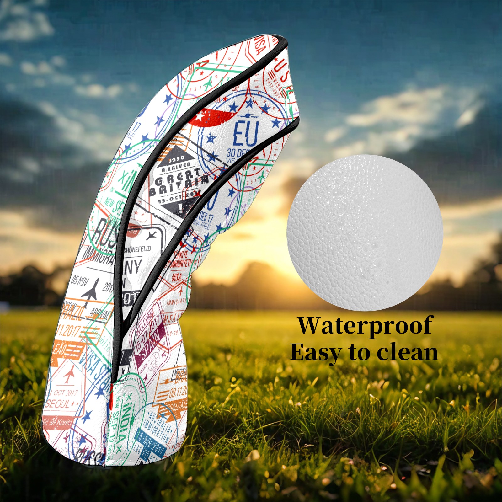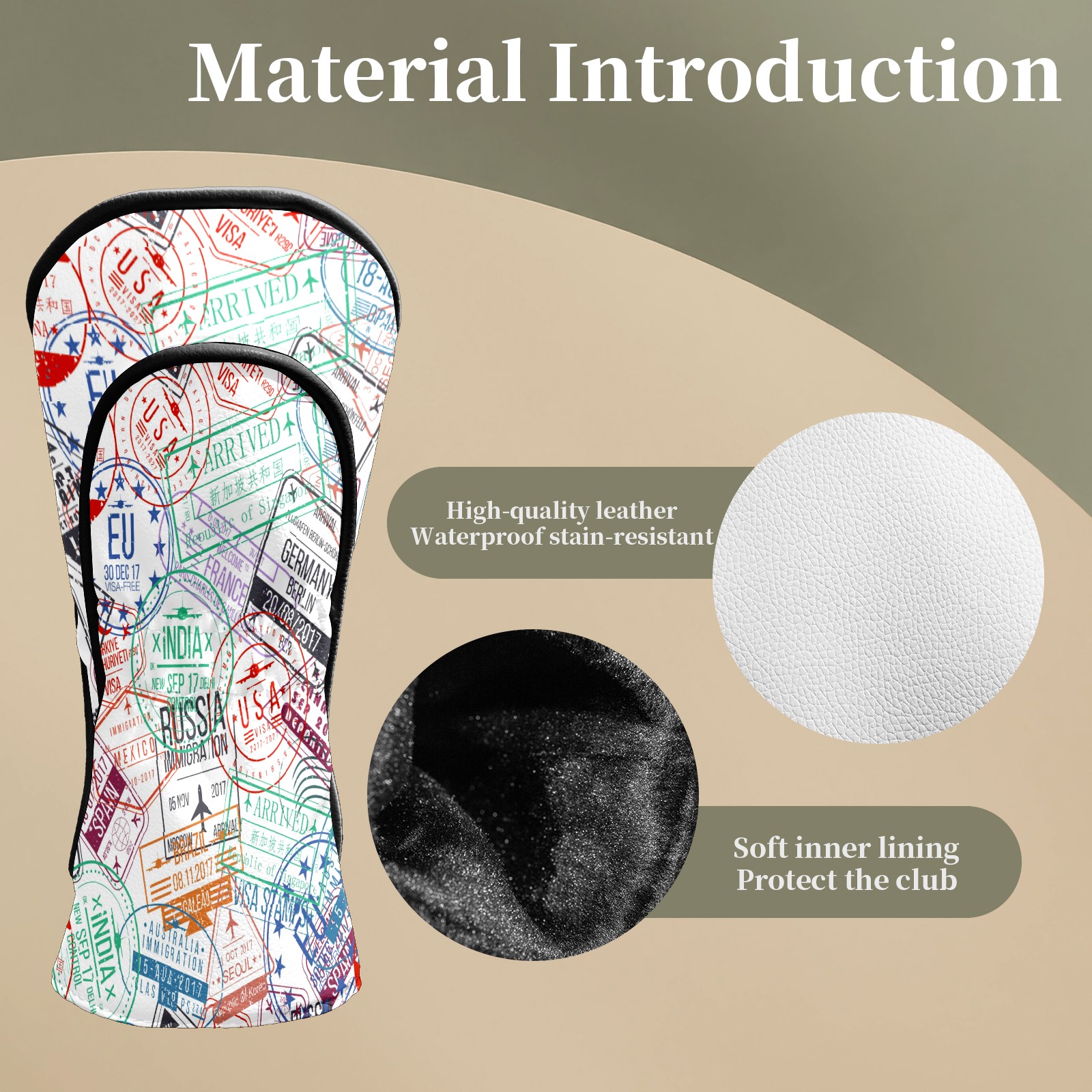 Golf Head Covers Leather Driver Head Cover, Premium Golf Club Covers with Soft Lining Fits Driver Hybrid Fairway 3/5 Wood Cover for Women Men Boys Girls (切手 郵便 おしゃれ)