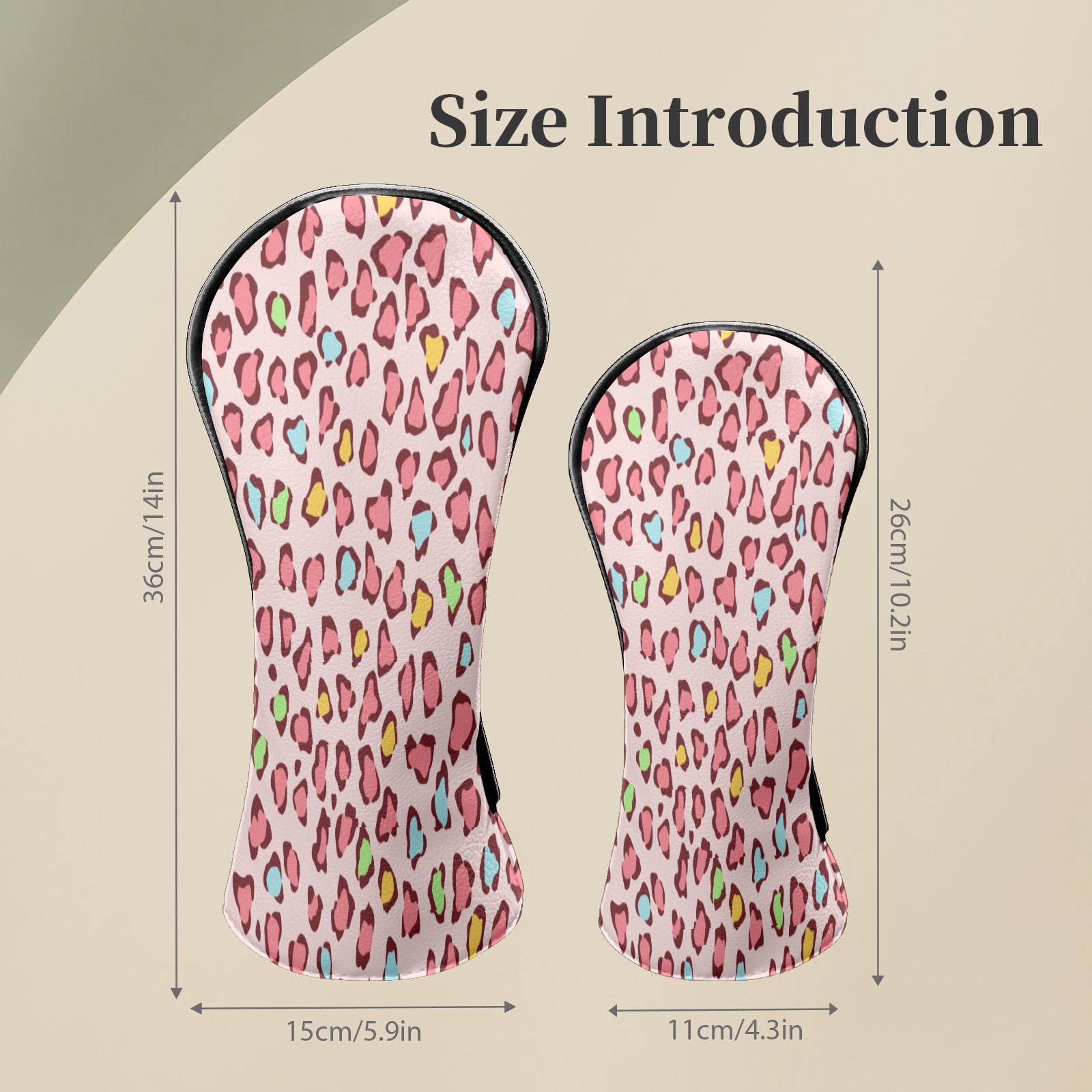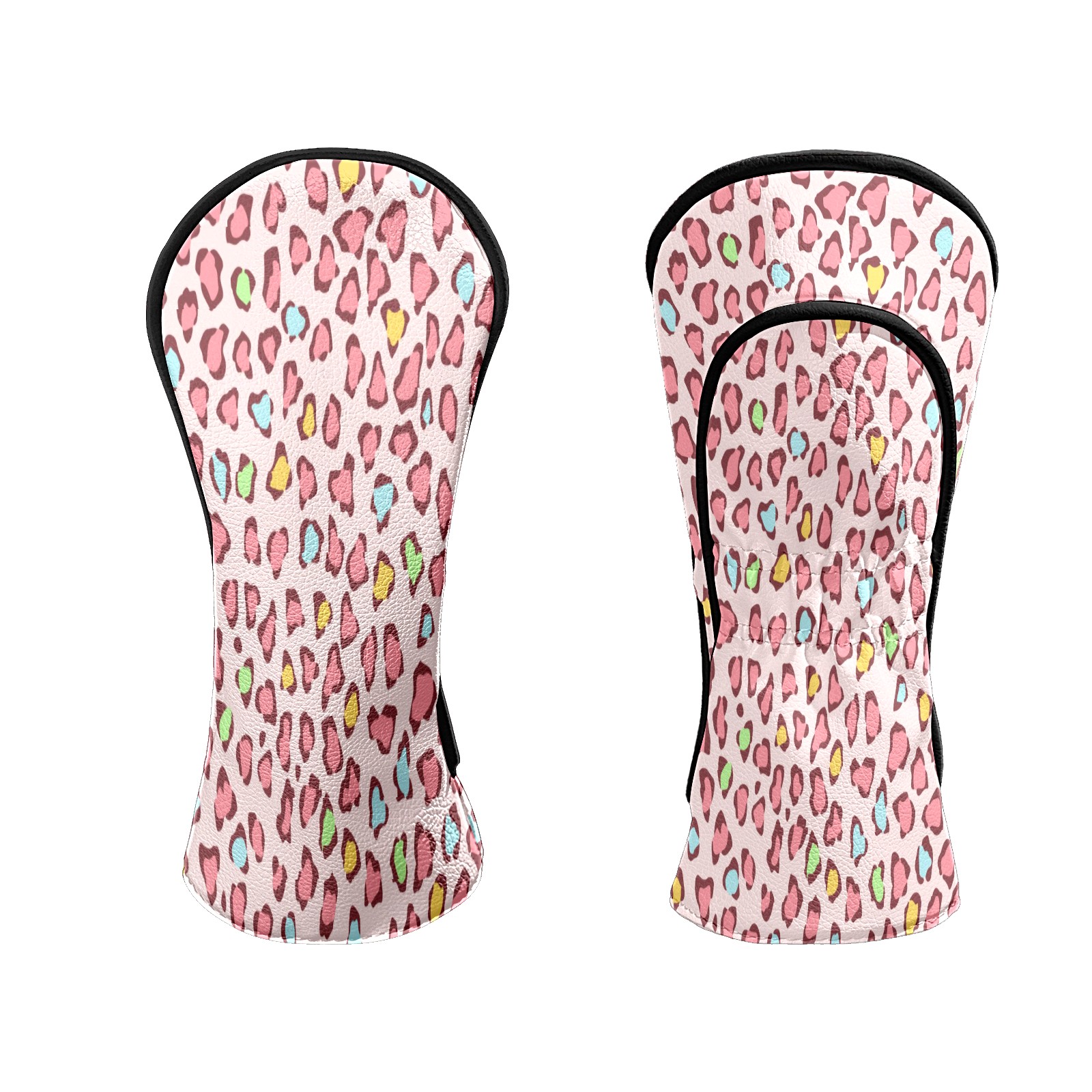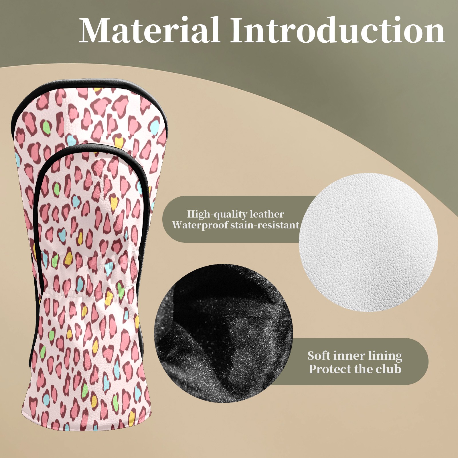 Golf Head Covers Leather Driver Head Cover, Premium Golf Club Covers with Soft Lining Fits Driver Hybrid Fairway 3/5 Wood Cover for Women Men Boys Girls (ヒョウ柄 ピンク)