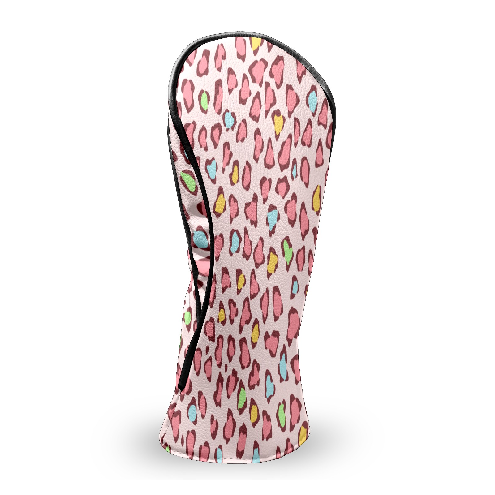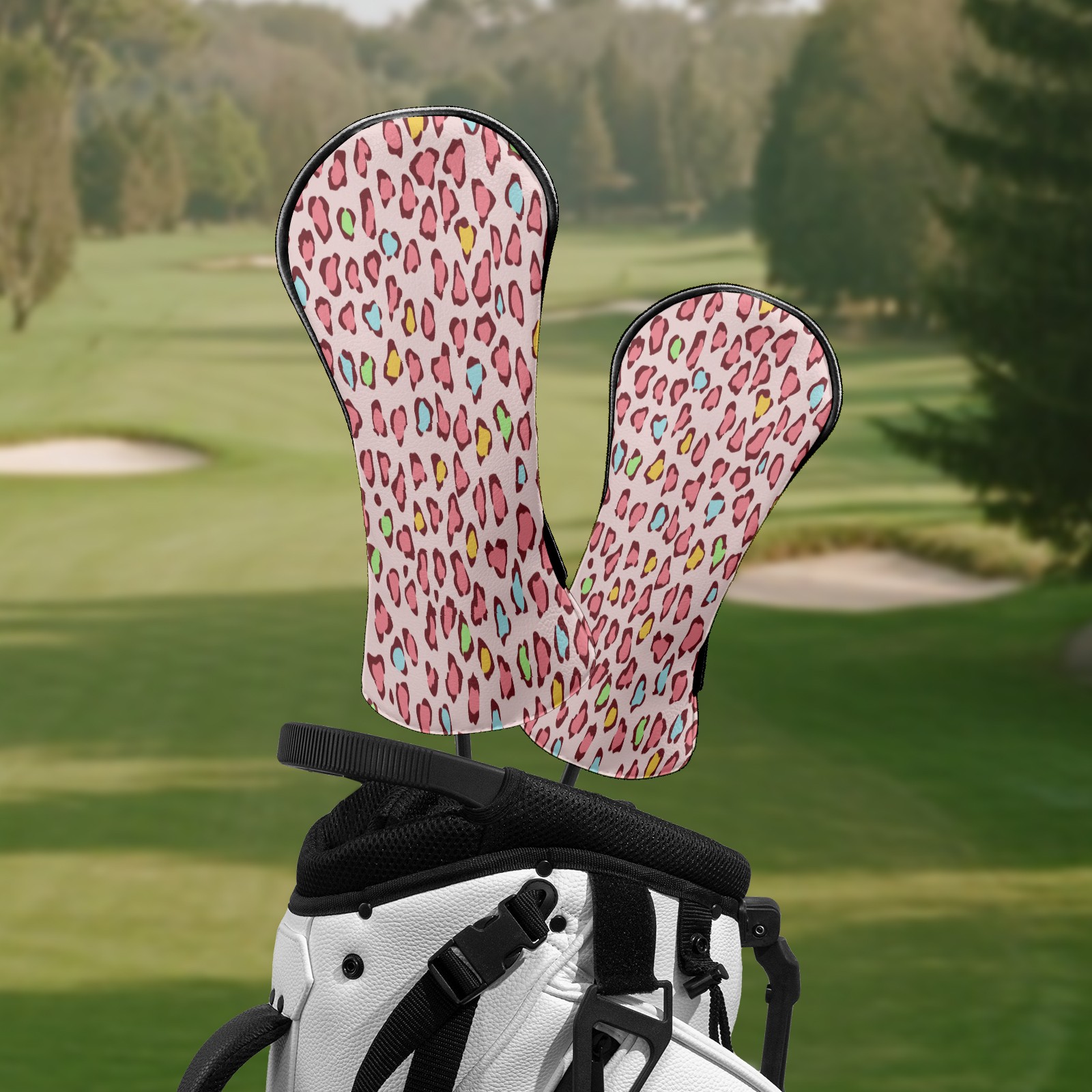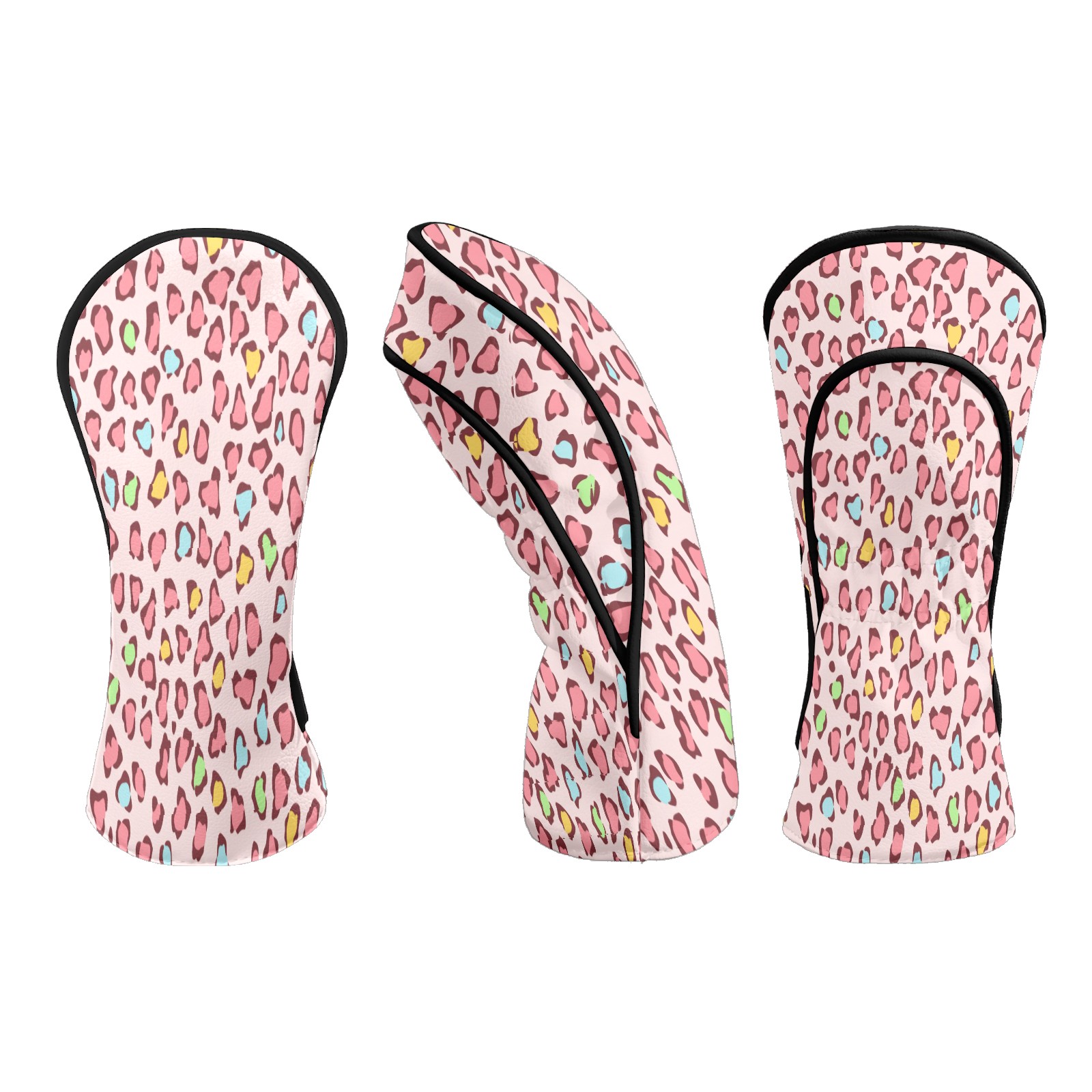 Golf Head Covers Leather Driver Head Cover, Premium Golf Club Covers with Soft Lining Fits Driver Hybrid Fairway 3/5 Wood Cover for Women Men Boys Girls (ヒョウ柄 ピンク)