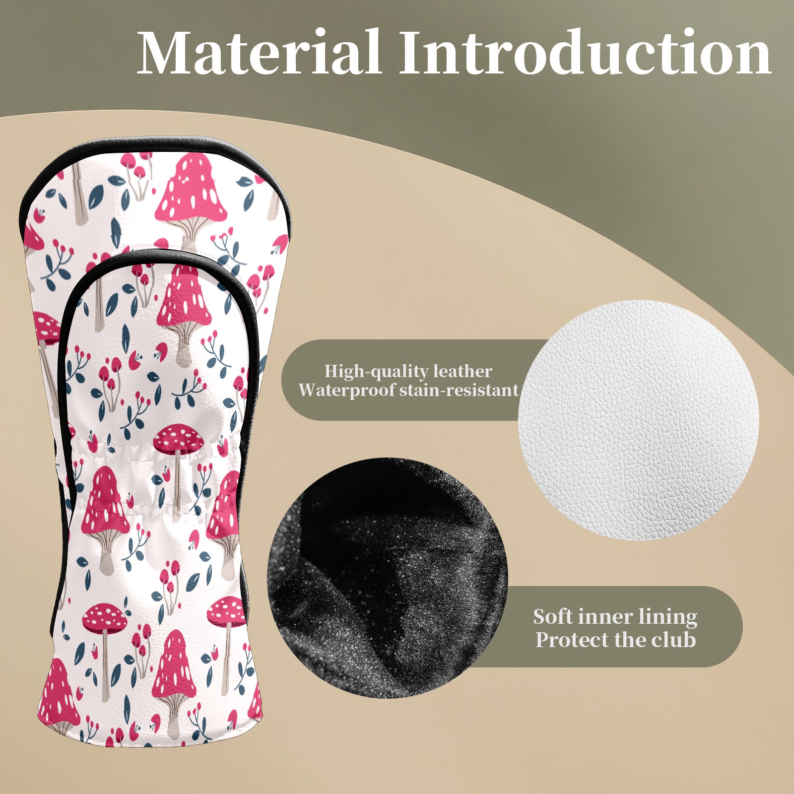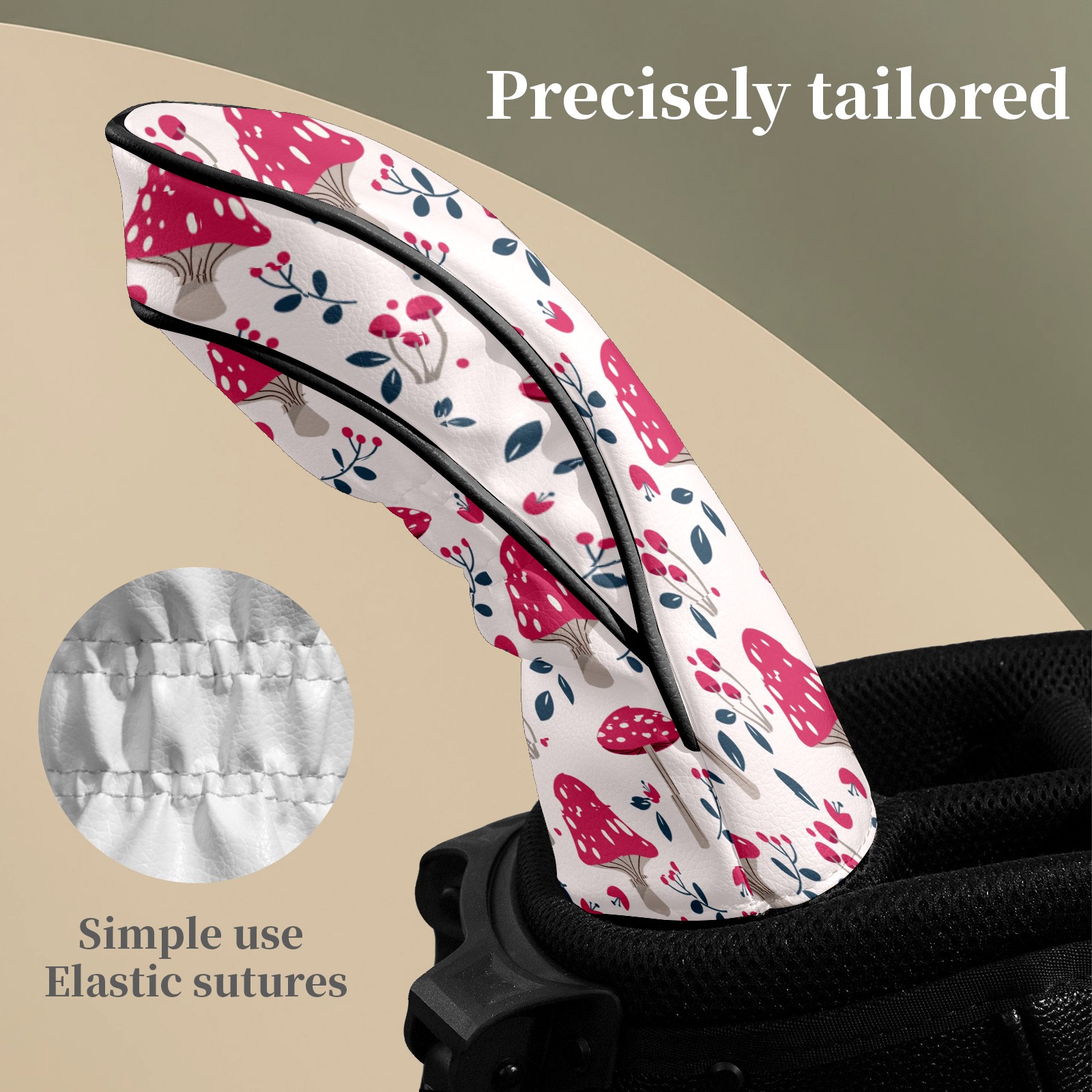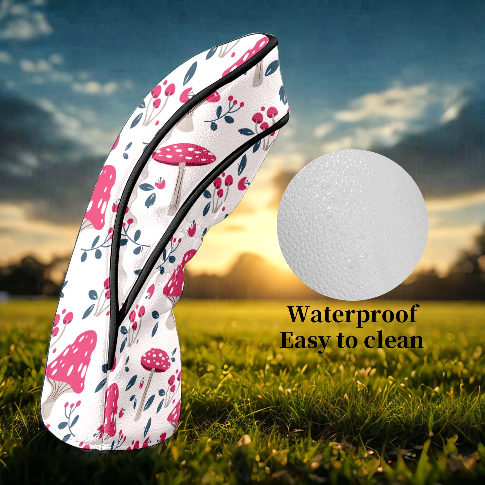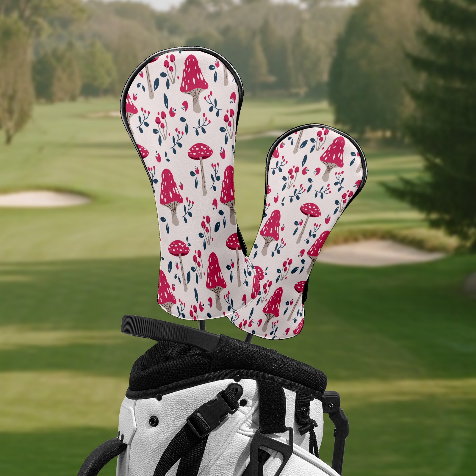 Golf Head Covers Leather Driver Head Cover, Premium Golf Club Covers with Soft Lining Fits Driver Hybrid Fairway 3/5 Wood Cover for Women Men Boys Girls (Colorful Mushroom (4))