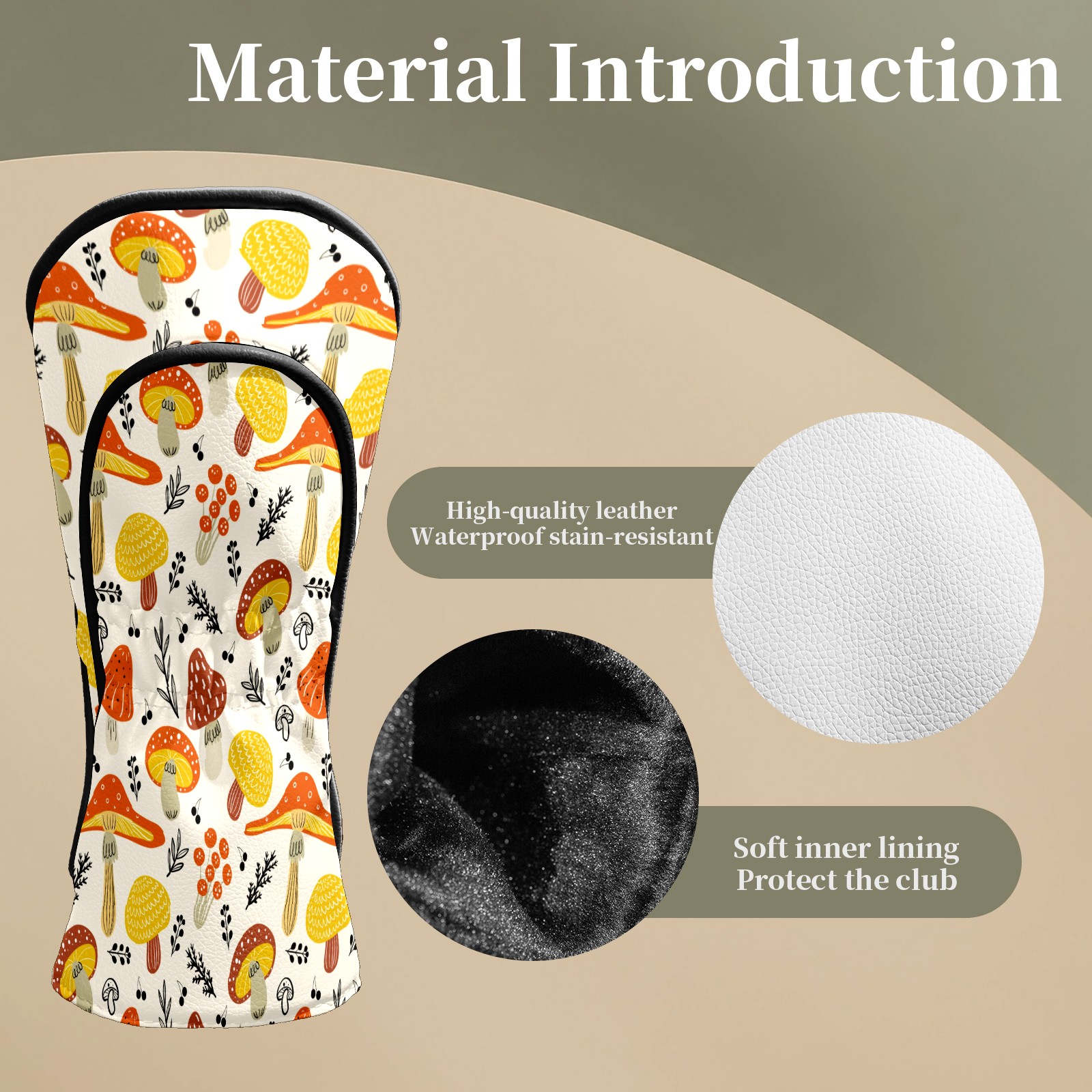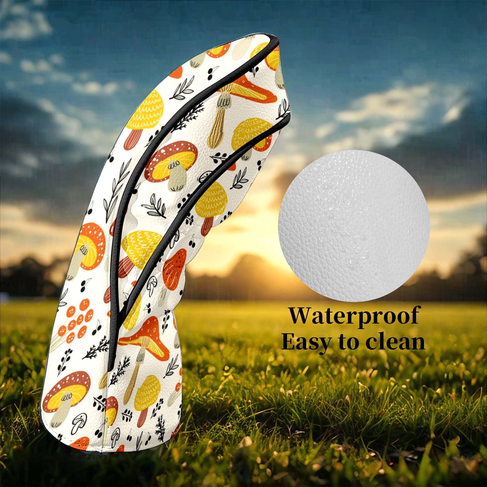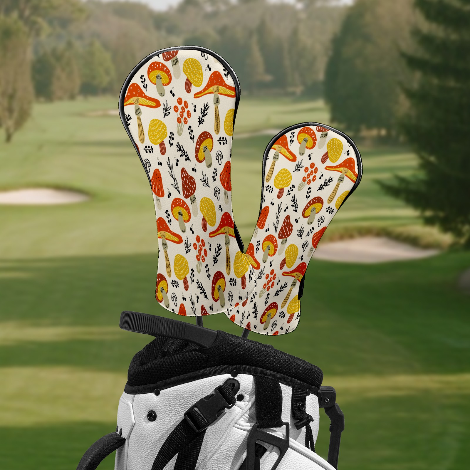 Golf Head Covers Leather Driver Head Cover, Premium Golf Club Covers with Soft Lining Fits Driver Hybrid Fairway 3/5 Wood Cover for Women Men Boys Girls (Colorful Mushroom (1))