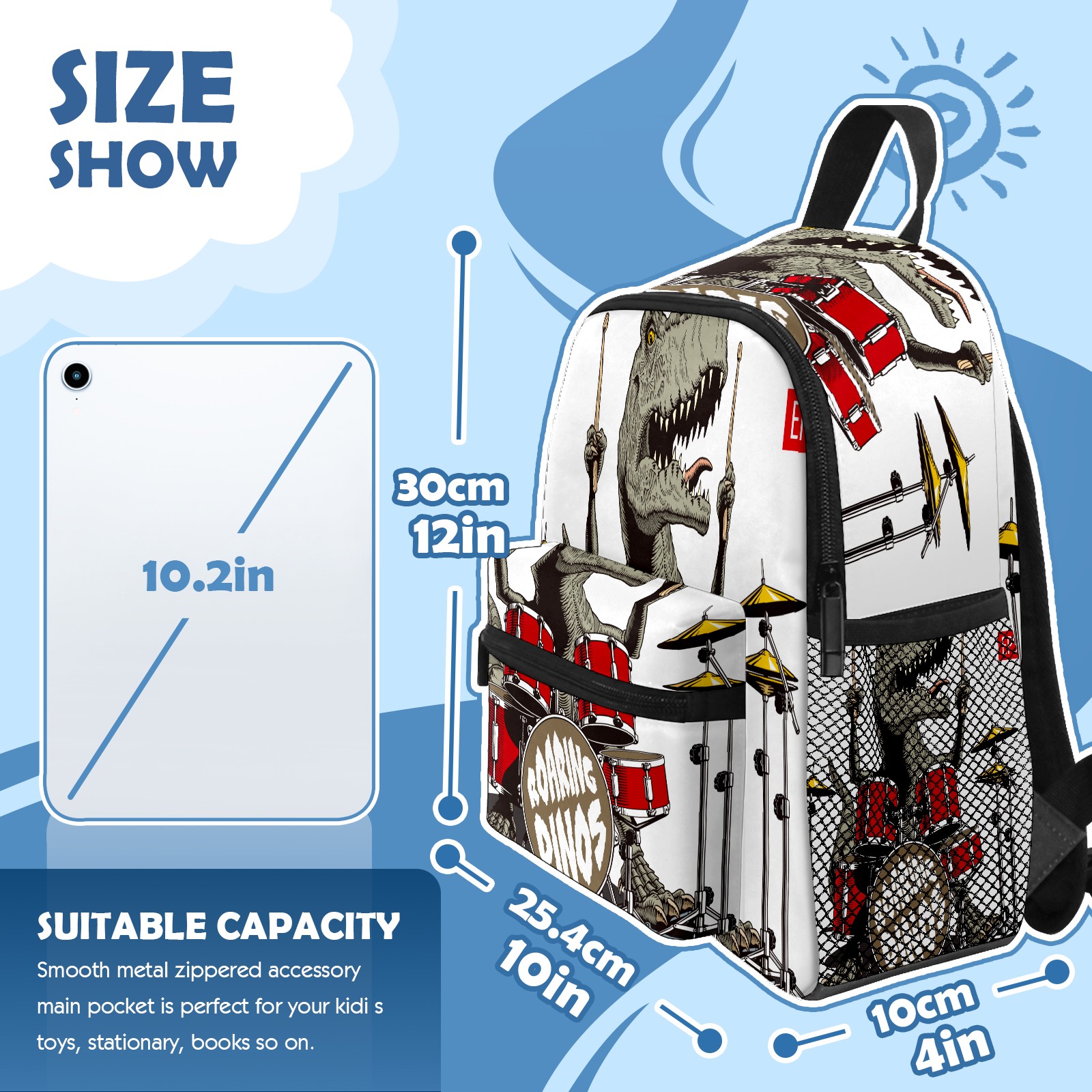 <p><b>About FCZ backpack</b></p><p>Cute and fun accessory to keep your child happy all day, suitable for your littler 3+ Years old kids. For pre-school, kindergarten or lower grade little kids or an over night trip to granny's OR just to carry toys or books to a friends house or the park. Can be use as diaper bag, toy bag, suitcase, snack bag, travel bag. The adjustable padded shoulder straps offer support and comfort while the adjustable chest strap stabilizes the load throughout the day's activities. This toddler backpack is a perfect gift for the lovely children.</p><p><b>Product Features:</b></p><ul> <li>*Age Range: 3+ years old boys and girls</li> <li>*Durable Material: Environment-friendly lightweight 600 Denier Polyester, Polypropylene plastic insert, PE foam insulation, PEVA lining</li> <li>*Size: 10 x 12 x 4 inches</li> <li>*Smooth Metal Zippers</li> <li>*Adjustable mesh bottle pocket</li> <li>*Occasion: school, work, sports, traveling, excursions, shopping, camping, hiking etc.</li> <li>*Phthalate-free</li> <li>*Care Instructions: Easy-to-clean lining, spot clean only</li> <li>*Any quality problems with your bag, please do not hesitage to contact us, we will reach you within 12 hours.</li></ul>