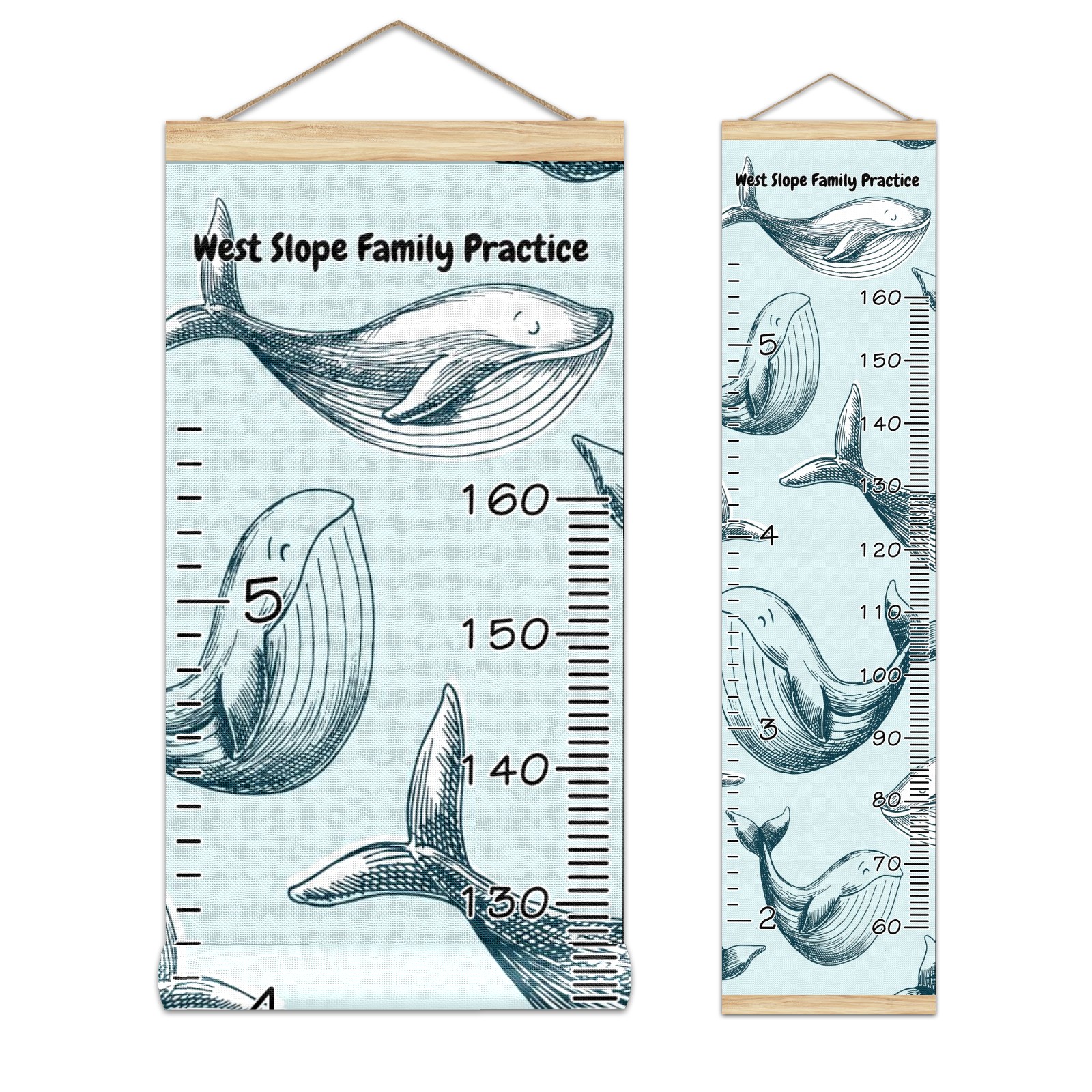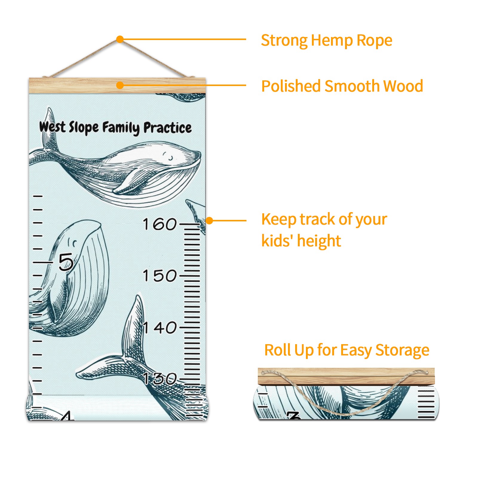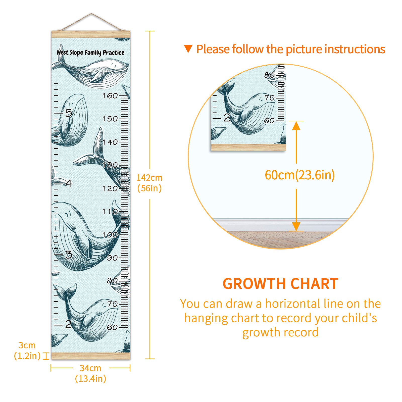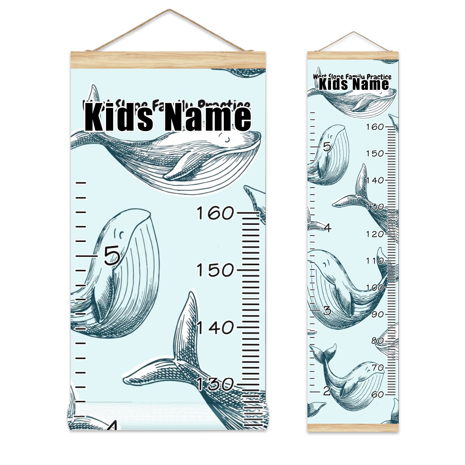Personalized Kids Name Growth Chart Ruler for Wall Wood Frame Canvas Height Measure Chart 13.4x56 in Hanging Growth Chart Ocean Dolphin Fish2.24 Boys Girls Room Decor