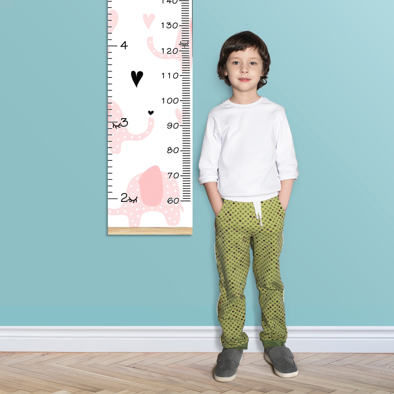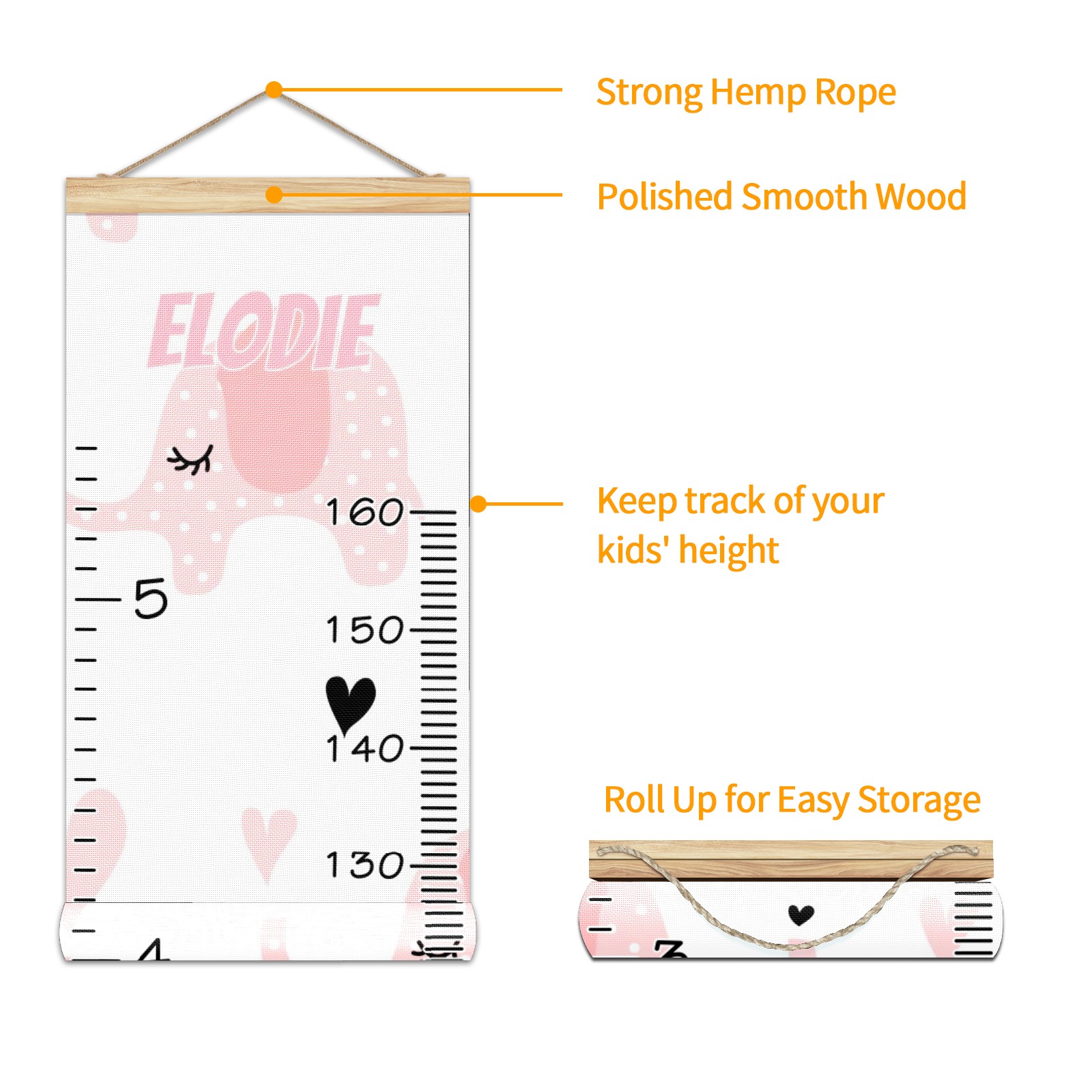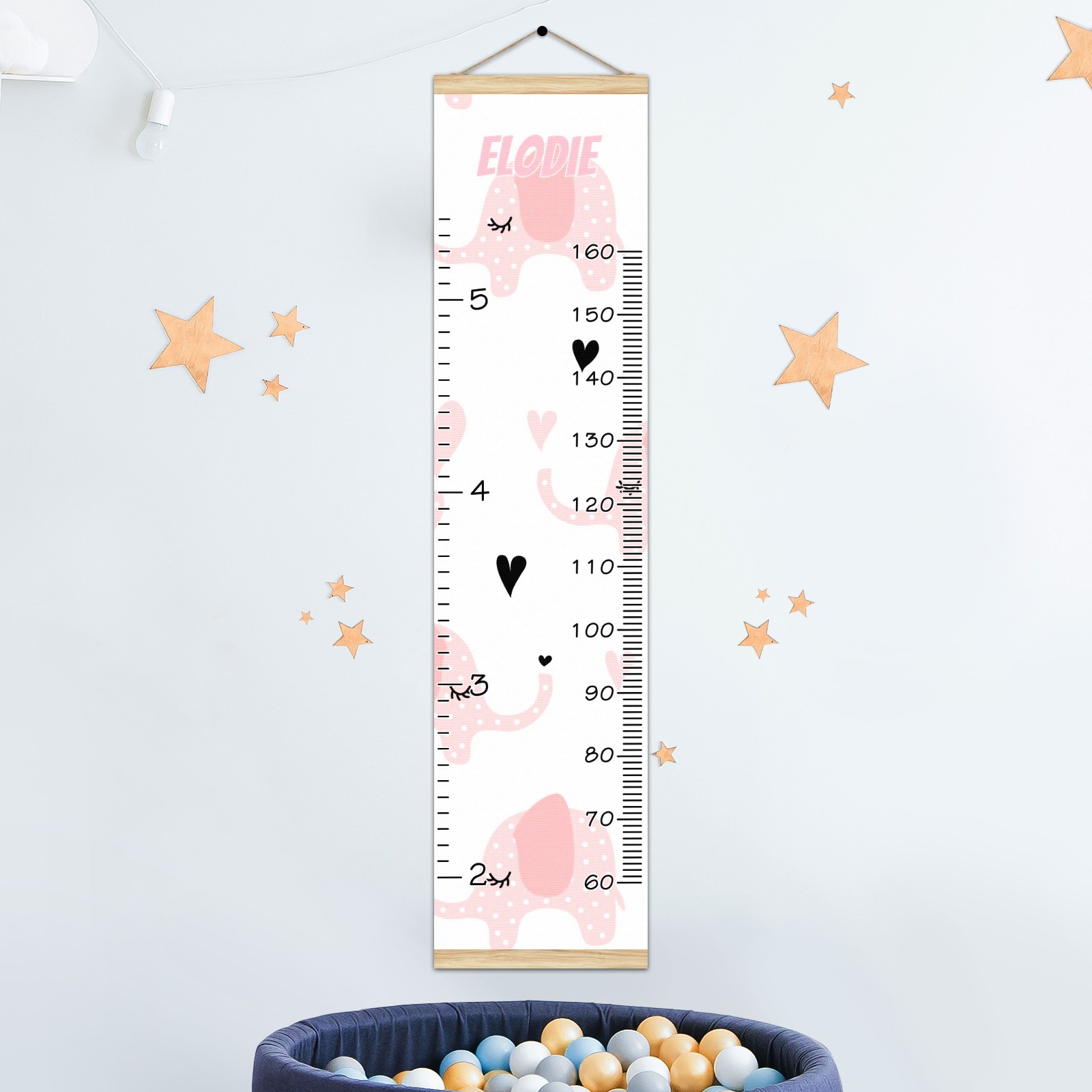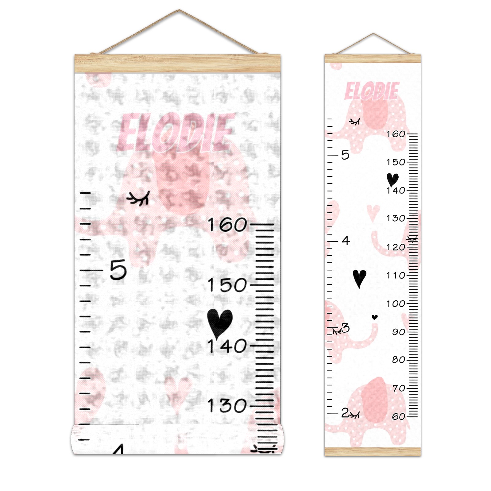 Personalized Kids Name Growth Chart Ruler for Wall Wood Frame Canvas Height Measure Chart 13.4x56 in Hanging Growth Chart Pink Elephant2.24 Boys Girls Room Decor
