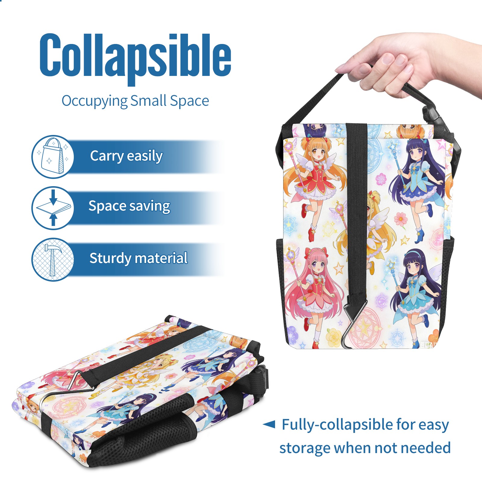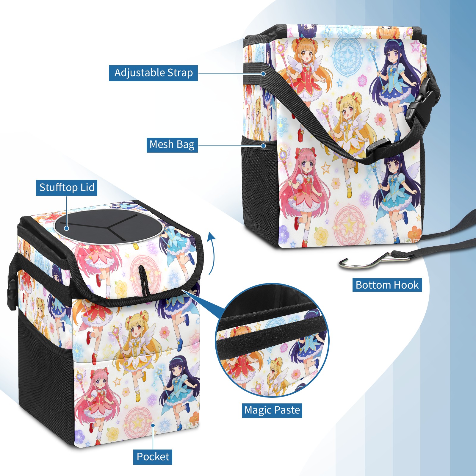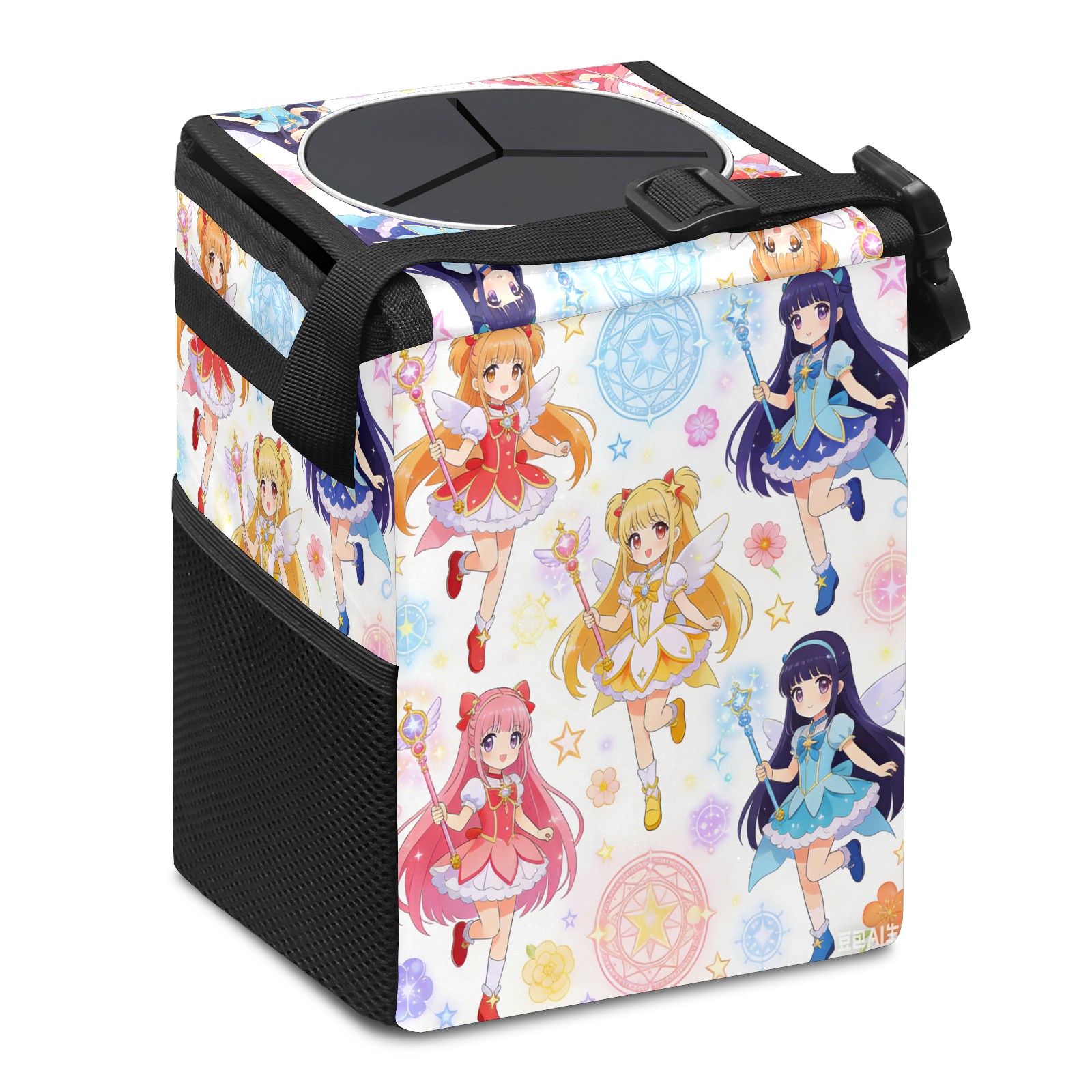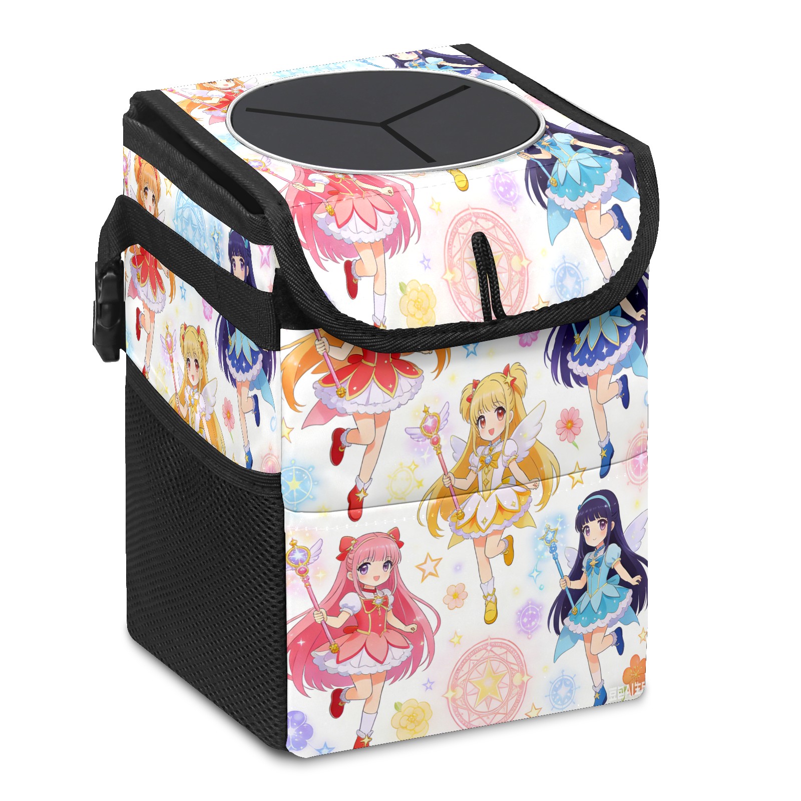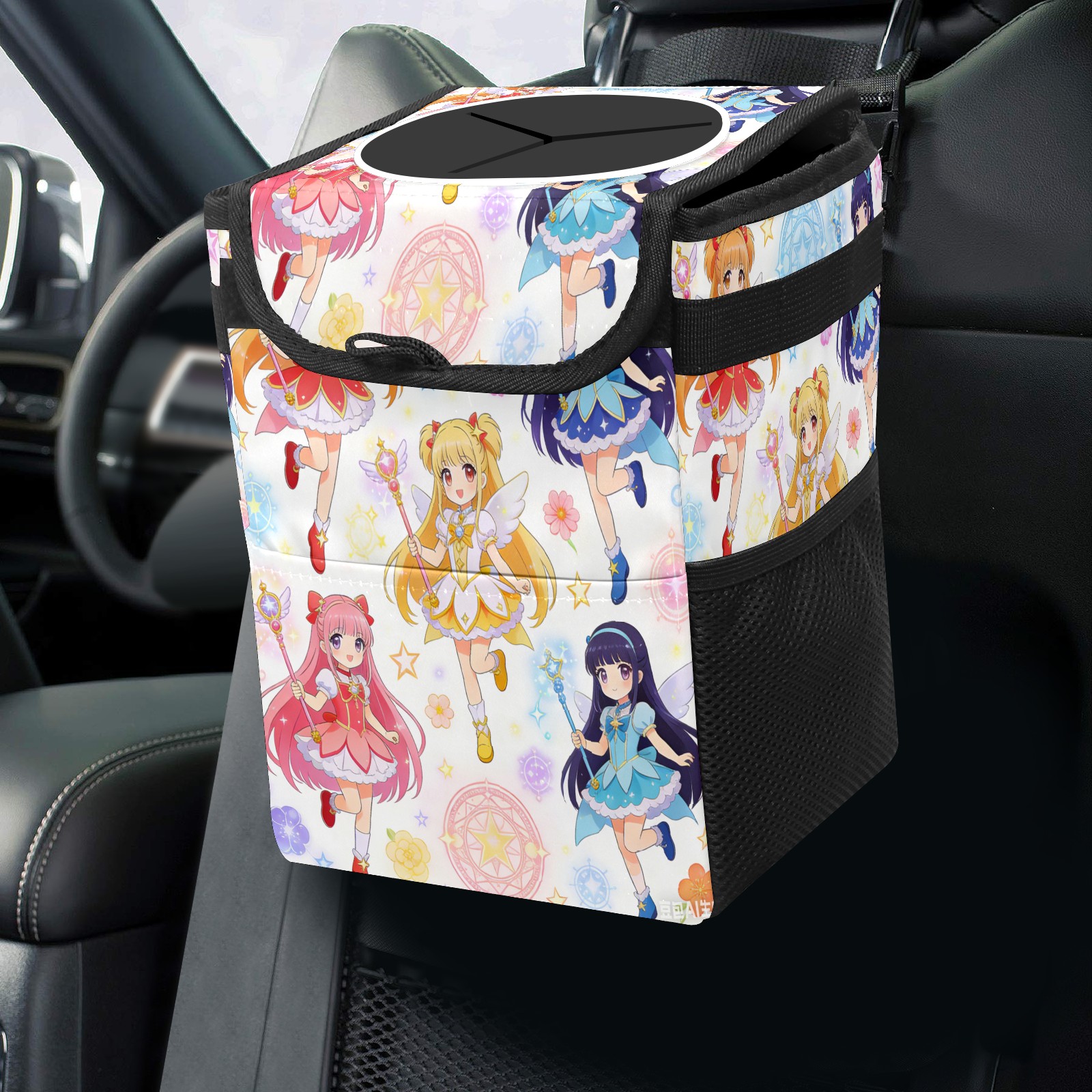 • Эта многофункциональная автомобильная мусорная корзина отличается стильным принтом, сочетающим в себе практичность и эстетику. Изготовленная из высококачественной саржевой ткани с плетеными ремнями, она прочная, долговечная и износостойкая. Размеры корзины составляют 24×17×16 см (9,5×6,7×6,3 дюйма). Верхнее отверстие имеет прорезиненное покрытие для удобной утилизации мусора; боковые сетчатые карманы и передний карман обеспечивают удобное хранение закусок, телефонов и других мелких предметов.