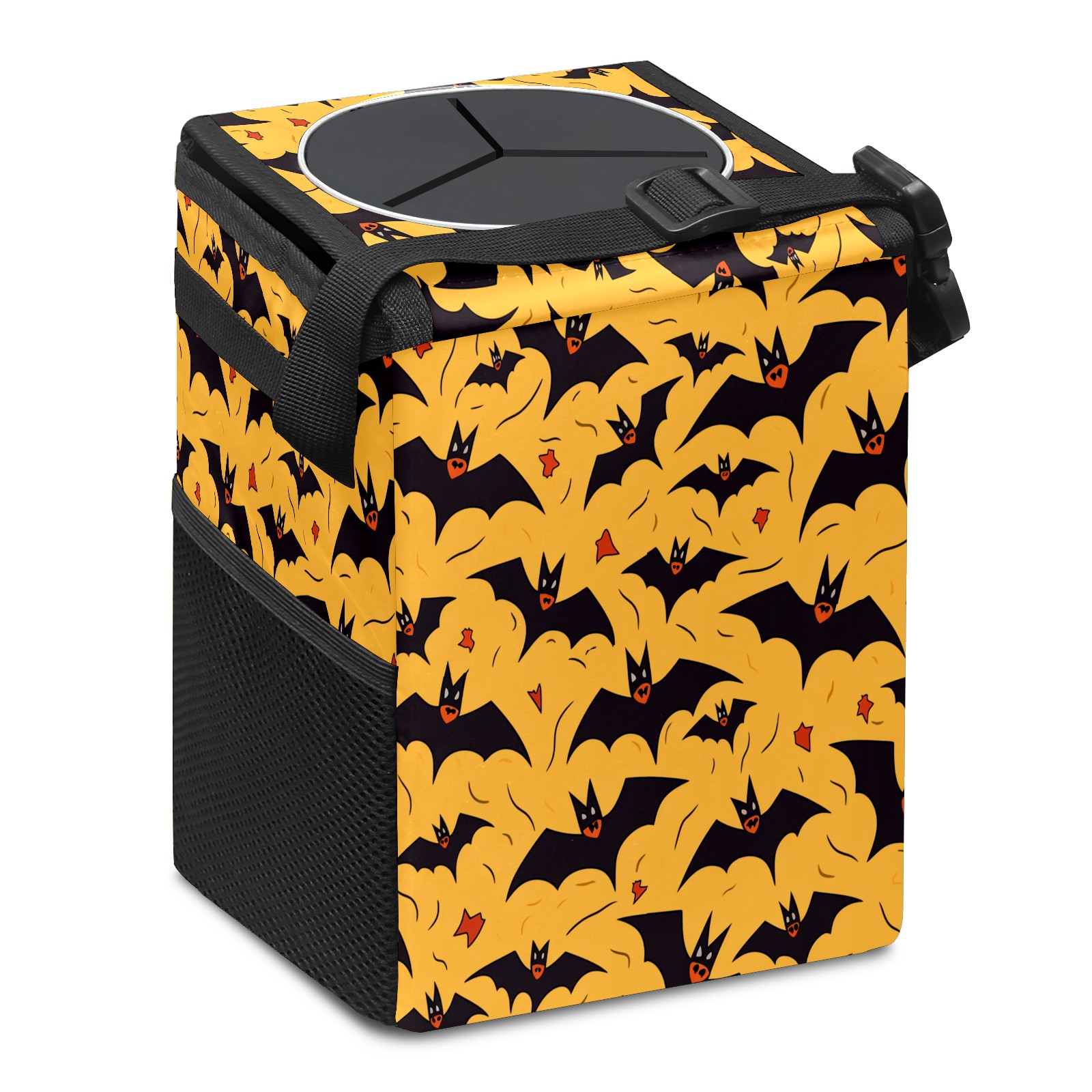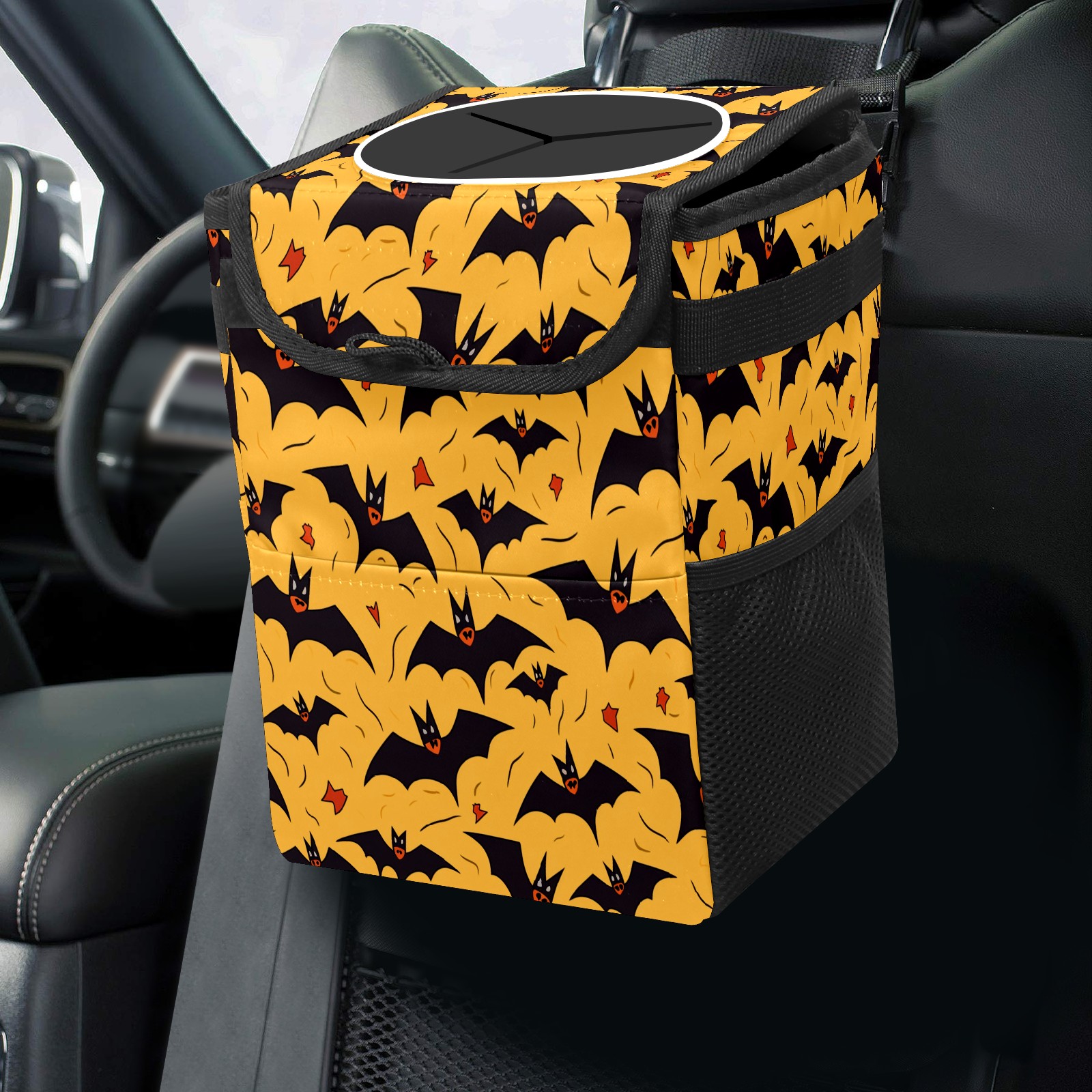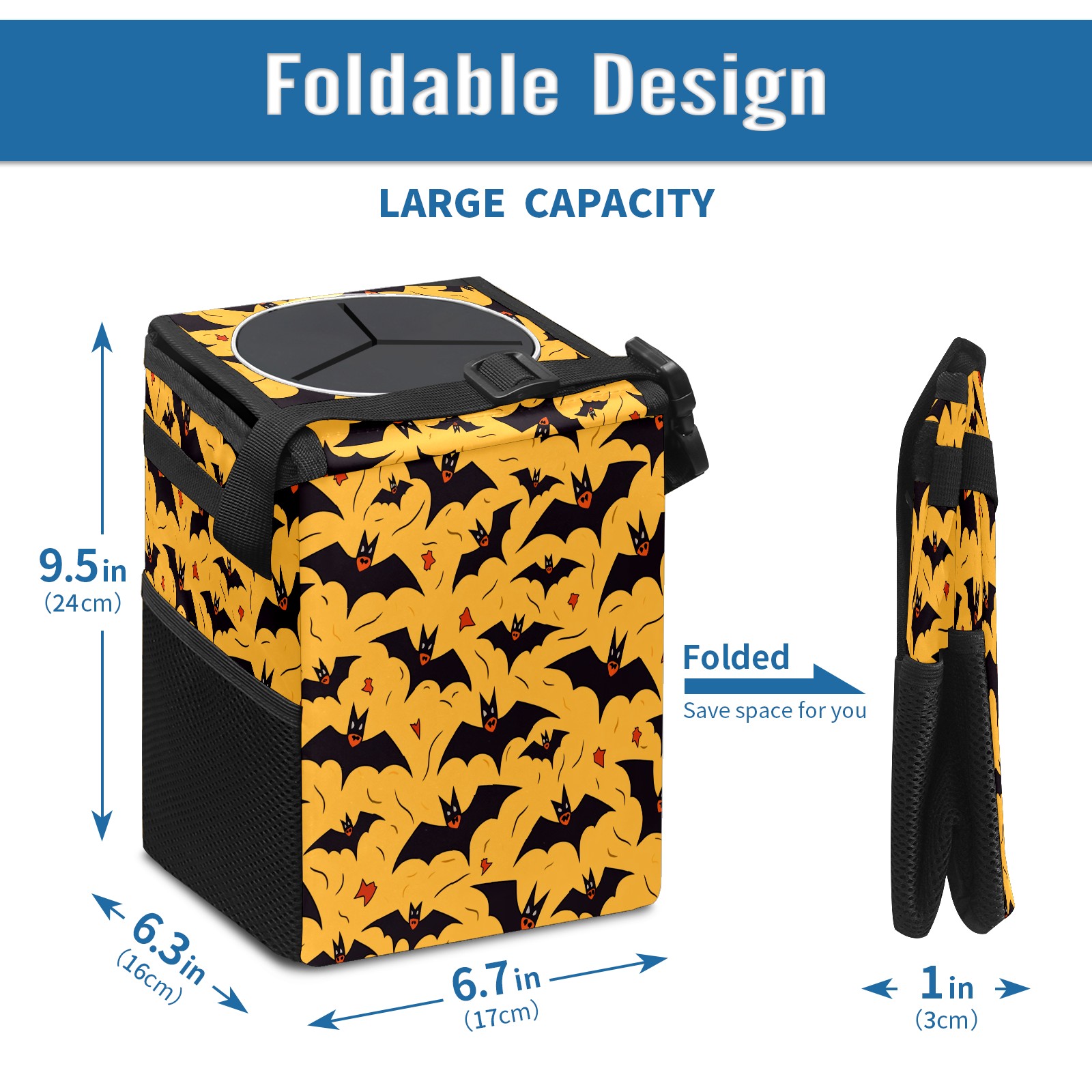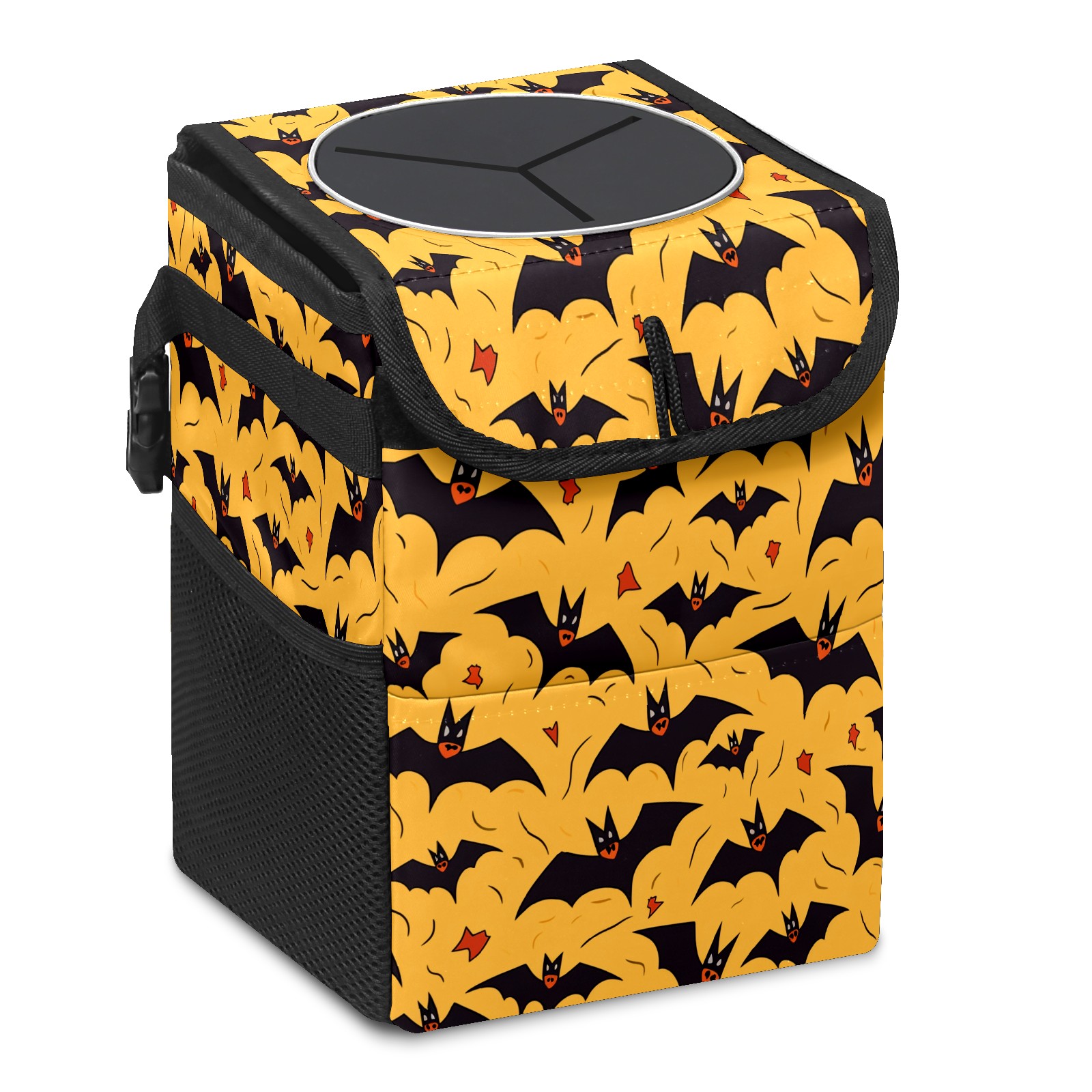 • Эта многофункциональная автомобильная мусорная корзина отличается стильным принтом, сочетающим в себе практичность и эстетику. Изготовленная из высококачественной саржевой ткани с плетеными ремнями, она прочная, долговечная и износостойкая. Размеры корзины составляют 24×17×16 см (9,5×6,7×6,3 дюйма). Верхнее отверстие имеет прорезиненное покрытие для удобной утилизации мусора; боковые сетчатые карманы и передний карман обеспечивают удобное хранение закусок, телефонов и других мелких предметов.