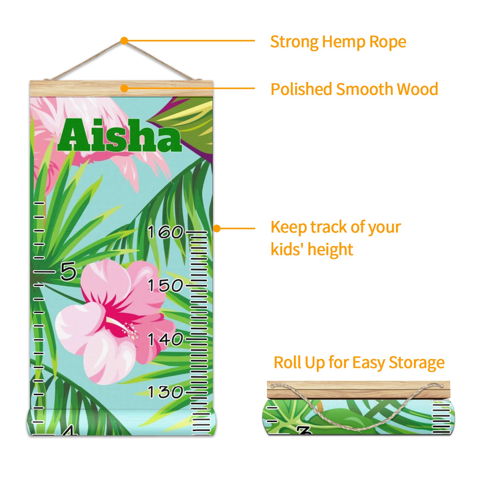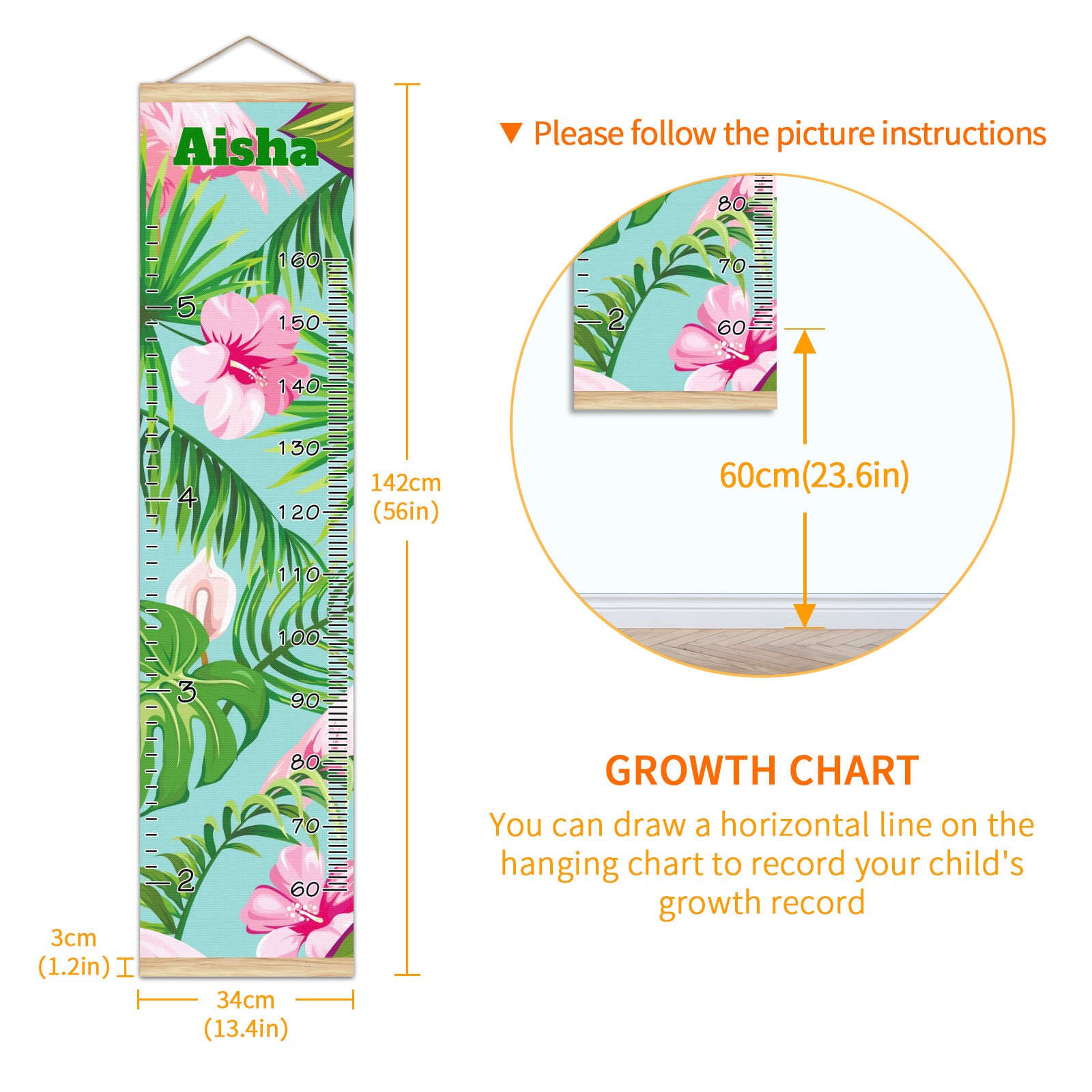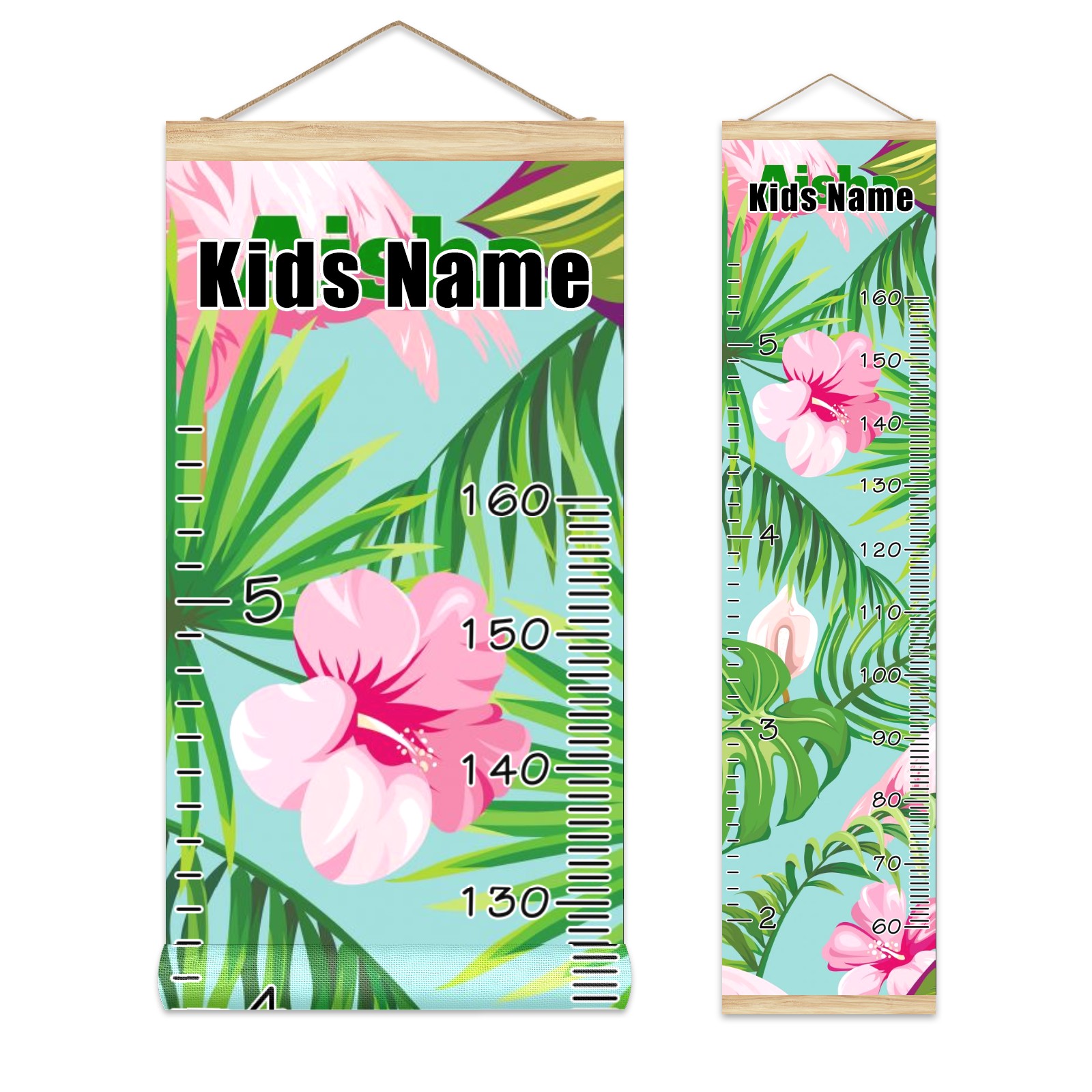 Personalized Kids Name Growth Chart Ruler for Wall Wood Frame Canvas Height Measure Chart 13.4x56 in Hanging Growth Chart Flowers2.24 Boys Girls Room Decor