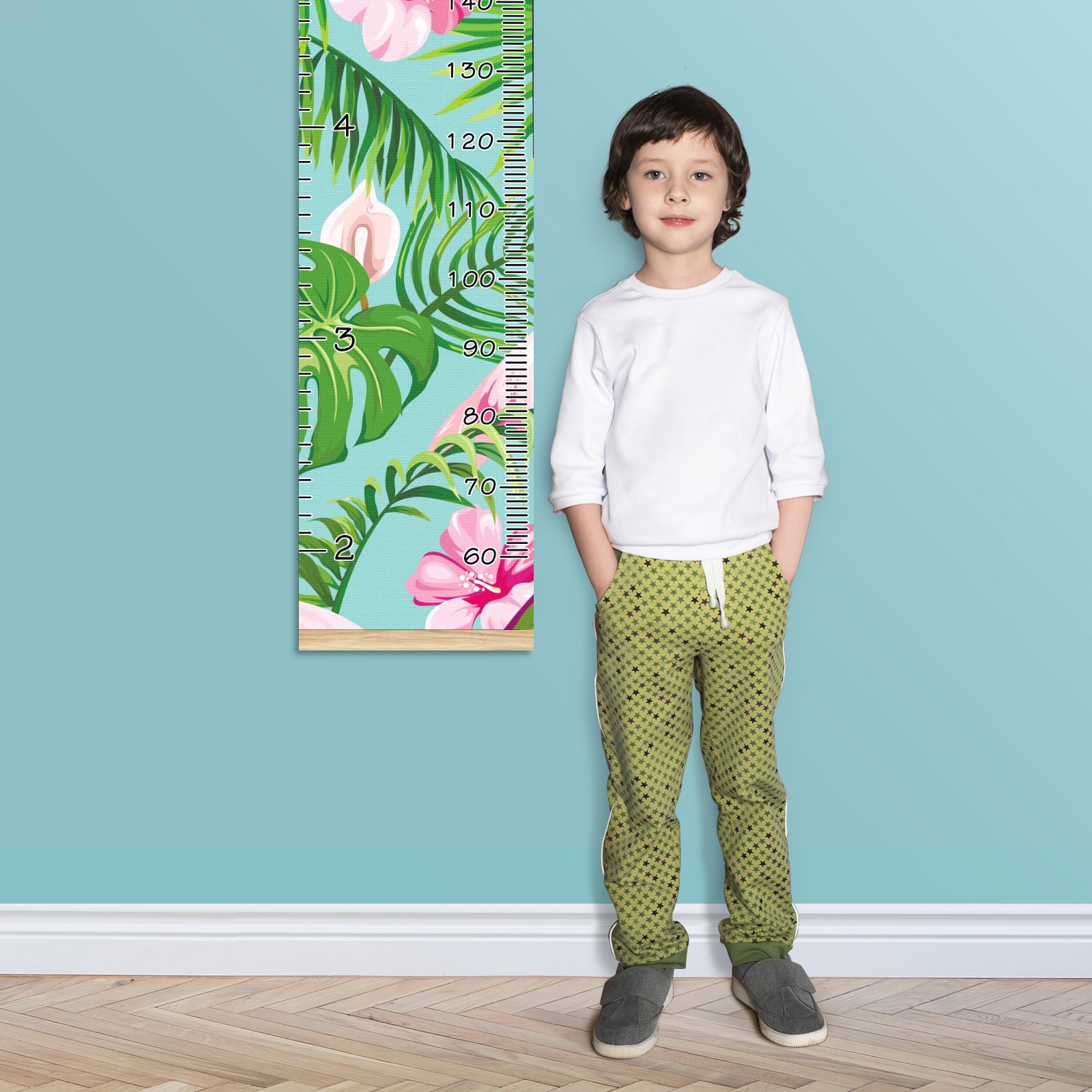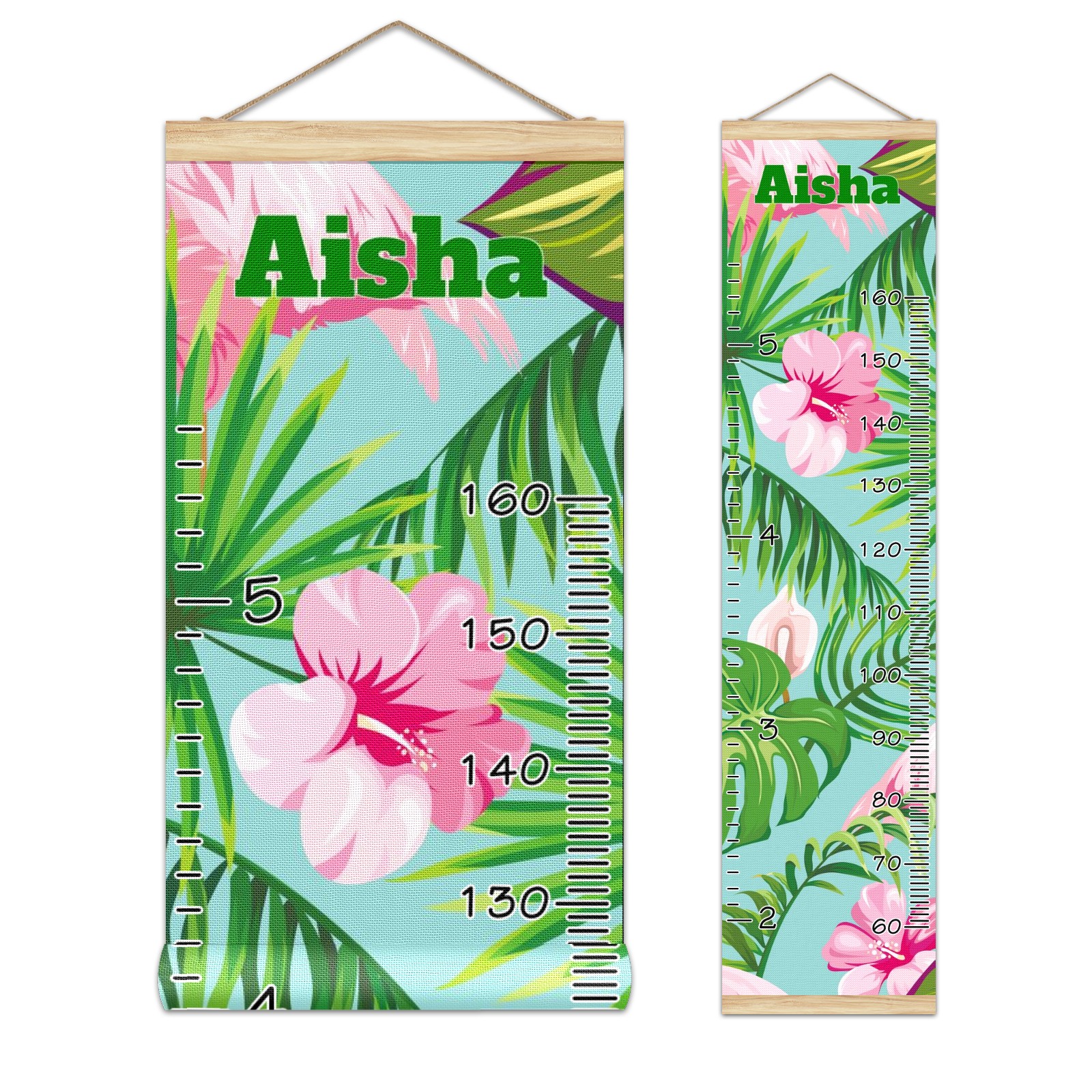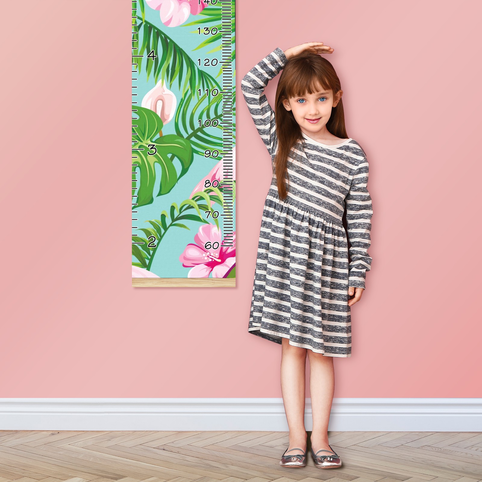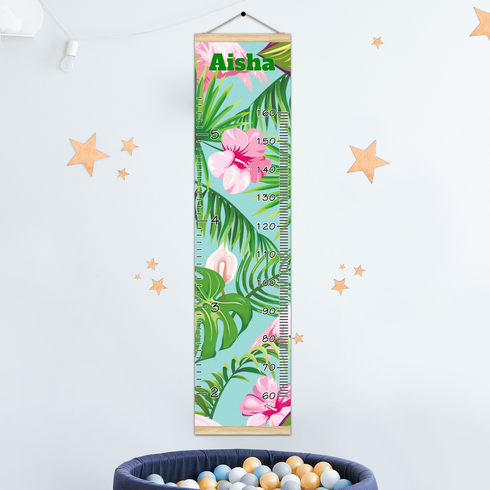 Personalized Kids Name Growth Chart Ruler for Wall Wood Frame Canvas Height Measure Chart 13.4x56 in Hanging Growth Chart Flowers2.24 Boys Girls Room Decor