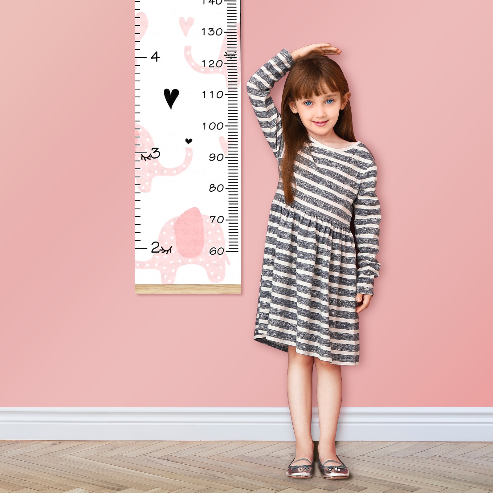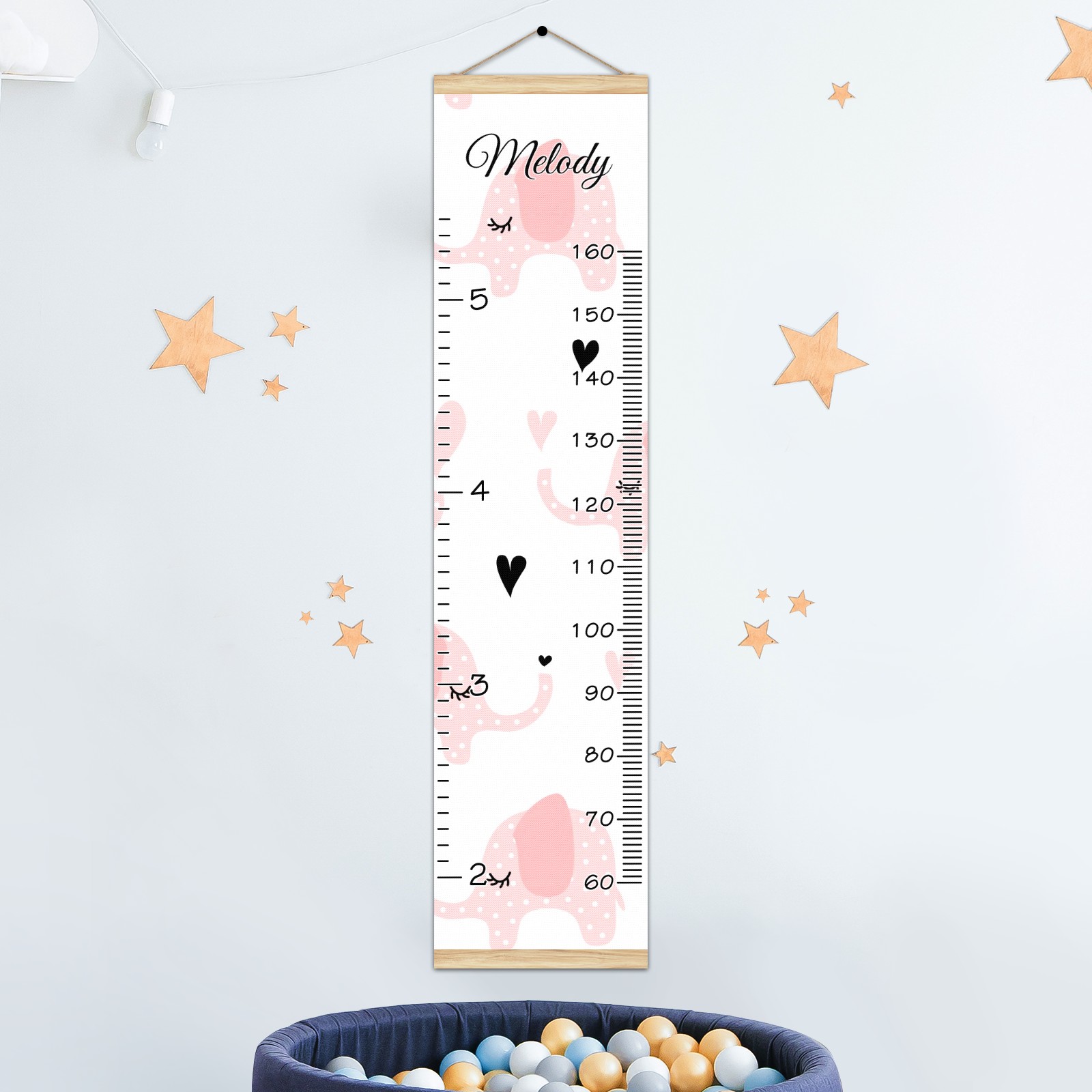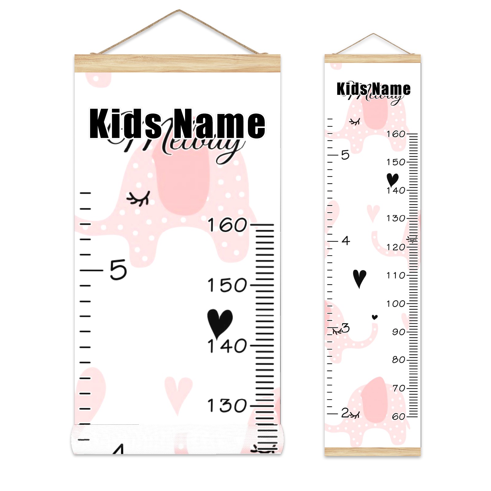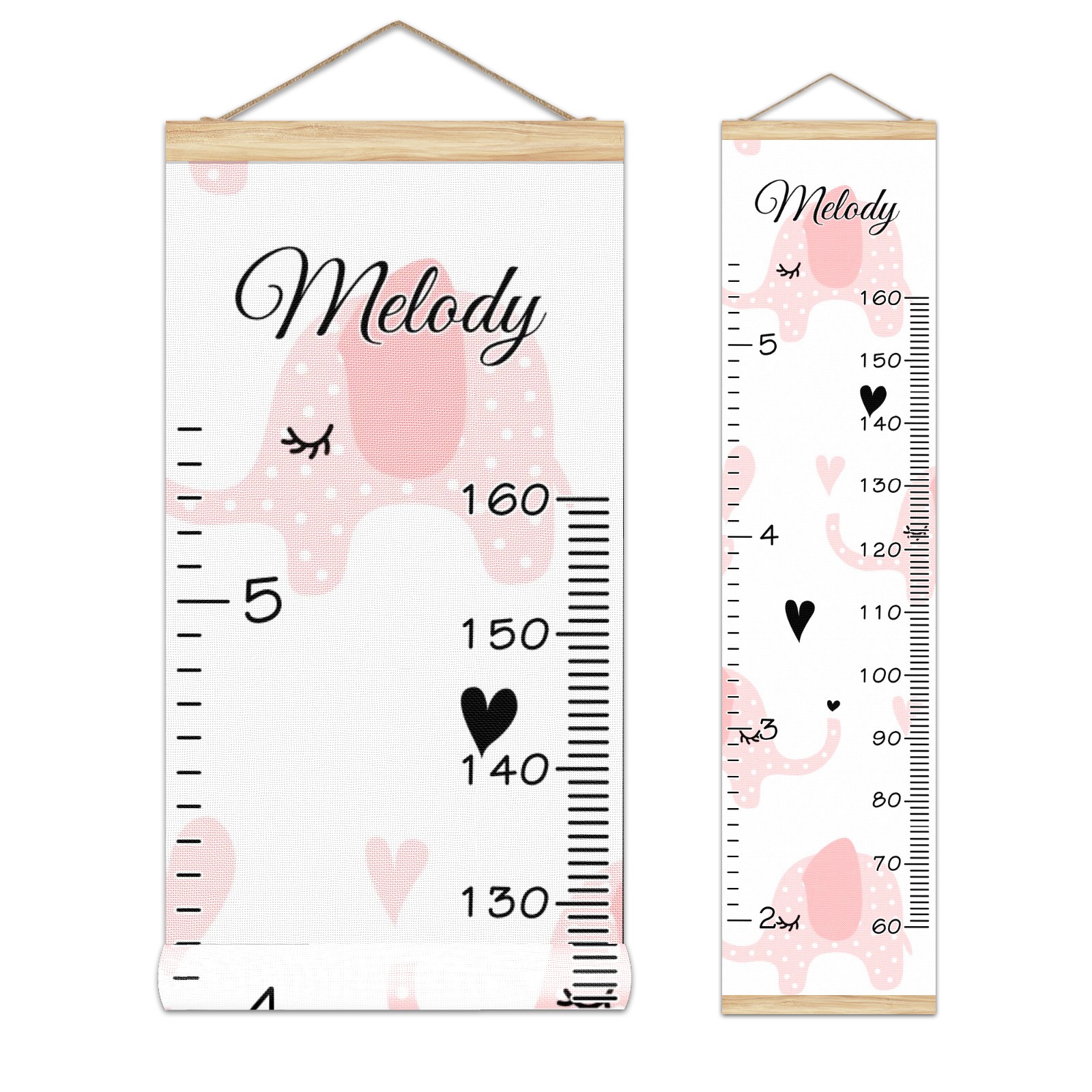 Personalized Kids Name Growth Chart Ruler for Wall Wood Frame Canvas Height Measure Chart 13.4x56 in Hanging Growth Chart Pink Elephant2.24-1 Boys Girls Room Decor