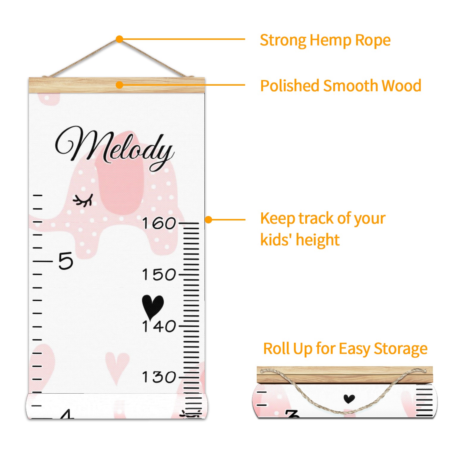 • <p><b>Features:</b></p> <p>Rope for Hanging</p> <p>Material: Linen + Wood</p> <p>Dimensions: 13.4x56 inches</p> <p>Package Included: 1 * Baby Growth Chart</p> <p><b>Baby height growth chart can be used anywhere</b></p> <p>Ideal for kids nursery decoration, kids bedroom, interior walls or windows, playroom, living room, homedecoration.Add name and make the growth chart special!</p> <p><b>Easy to fold and carry</b></p> <p>With rope at the top of the growth chart, it is easy to install and remove.You can fold it and unfold any time any where.</p> <p><b>Perfect Gift Idea for Kids</b></p> <p>Environmental and non-toxic for kids use, it must be a perfect gift for baby, kids, girls, and boys.This is a best choice for your friend who have kids or baby as a popular gift.</p> <p><b>Easy to read</b></p> <p>Measurement accrate with 2 scales, Centimeters and feet. The letters are big enough, very easy to read.</p> <p><b>60cm(23.6inch) Over Ground Design</b></p> <p>Not only can protect from dust and other damage, but also will not interfere in floor cleaning.</p>