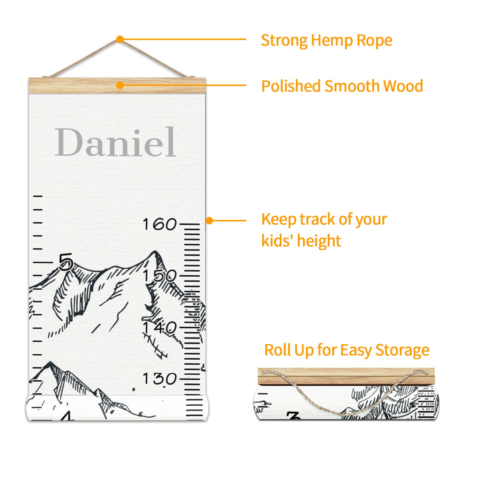 Personalized Kids Name Growth Chart Ruler for Wall Wood Frame Canvas Height Measure Chart 13.4x56 in Hanging Growth Chart Winter Mountain2.25 Boys Girls Room Decor