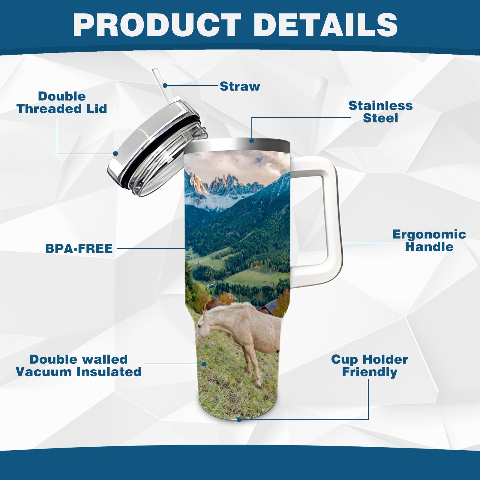<p>Наш персональный размер - это ваша мечта! Независимо от того, каким образом проходит ваш день, стакан 40 унций с ручкой держит вас освеженными с меньшим количеством пополнений. &nbsp; Двойная стенная вакуумная изоляция.означает, что напитки остаются холодными, ледяными или горячими в течение часов. &nbsp; С продвинутой конструкцией крышки, СЛОНА Открытие предназначено для сопротивления брызганиям с уплотнением, которое удерживает многоразовую соломку на месте, открытие для напитка и полную крышку для дополнительной устойчивости к утечке. CustomTumbler также включает в себя эргономическую, комфортную ручку, 40 унций чашку для тумблера шириной 2,9 " в нижней части и 3,7" в верхней части. &nbsp; &nbsp; Узкая основа подходит практически для любого держателя чашки автомобиля. &nbsp; Поэтому вы можете принести с собой чашку смути, чашку с ледом или дополнительное эспрессо для ежедневной поездки или выходных. </p>