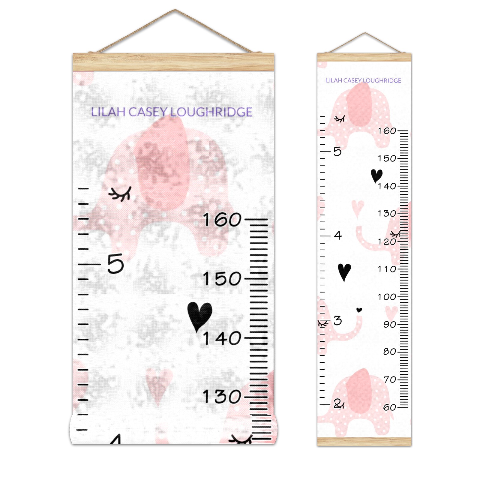 Personalized Kids Name Growth Chart Ruler for Wall Wood Frame Canvas Height Measure Chart 13.4x56 in Hanging Growth Chart Pink Elephant2.26 Boys Girls Room Decor