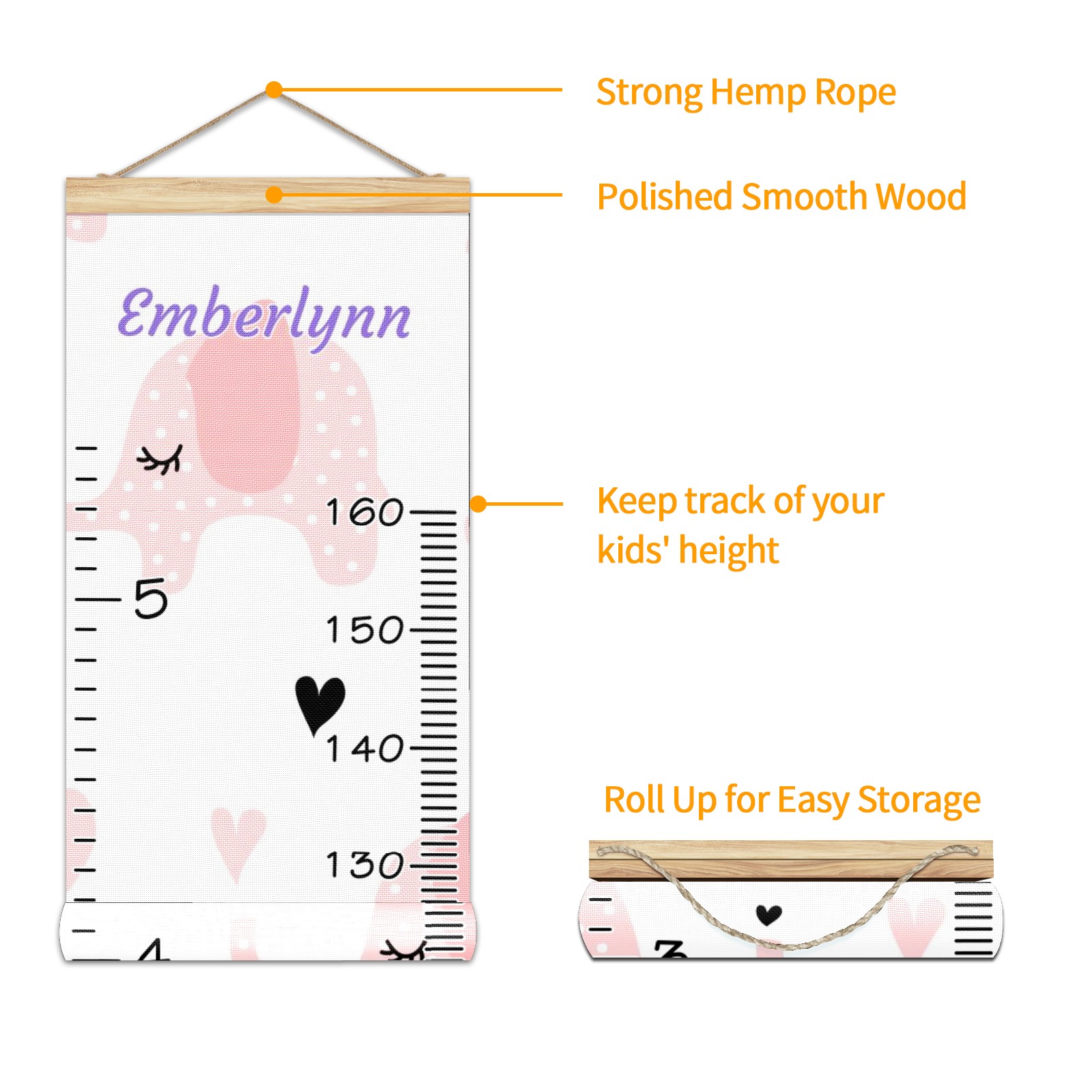 • <p><b>Features:</b></p> <p>Rope for Hanging</p> <p>Material: Linen + Wood</p> <p>Dimensions: 13.4x56 inches</p> <p>Package Included: 1 * Baby Growth Chart</p> <p><b>Baby height growth chart can be used anywhere</b></p> <p>Ideal for kids nursery decoration, kids bedroom, interior walls or windows, playroom, living room, homedecoration.Add name and make the growth chart special!</p> <p><b>Easy to fold and carry</b></p> <p>With rope at the top of the growth chart, it is easy to install and remove.You can fold it and unfold any time any where.</p> <p><b>Perfect Gift Idea for Kids</b></p> <p>Environmental and non-toxic for kids use, it must be a perfect gift for baby, kids, girls, and boys.This is a best choice for your friend who have kids or baby as a popular gift.</p> <p><b>Easy to read</b></p> <p>Measurement accrate with 2 scales, Centimeters and feet. The letters are big enough, very easy to read.</p> <p><b>60cm(23.6inch) Over Ground Design</b></p> <p>Not only can protect from dust and other damage, but also will not interfere in floor cleaning.</p>