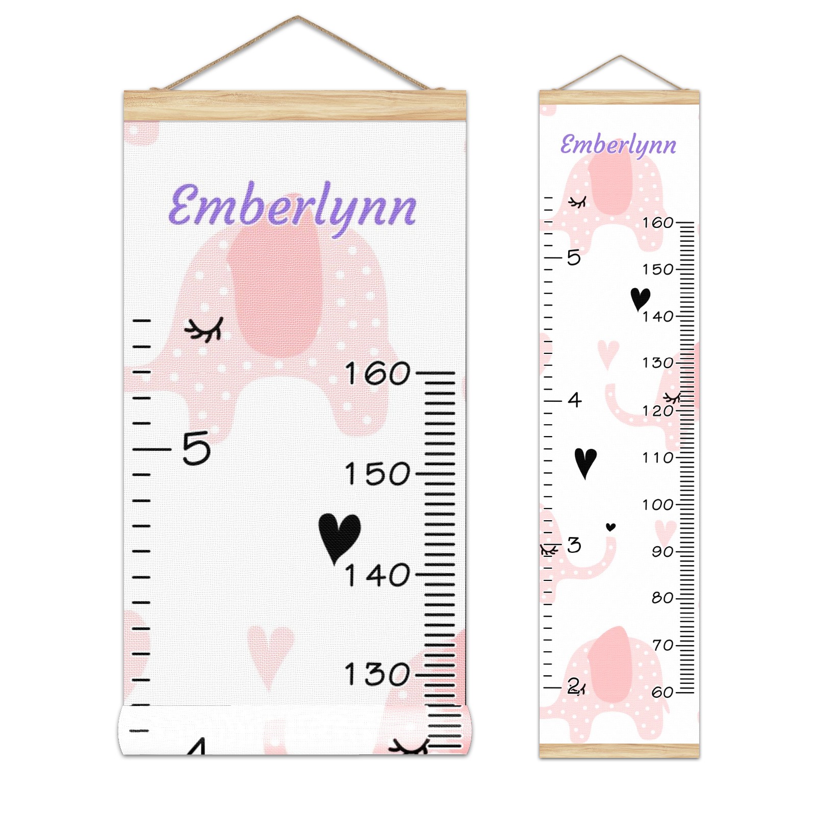Personalized Kids Name Growth Chart Ruler for Wall Wood Frame Canvas Height Measure Chart 13.4x56 in Hanging Growth Chart Pink Elephant2.26-1 Boys Girls Room Decor