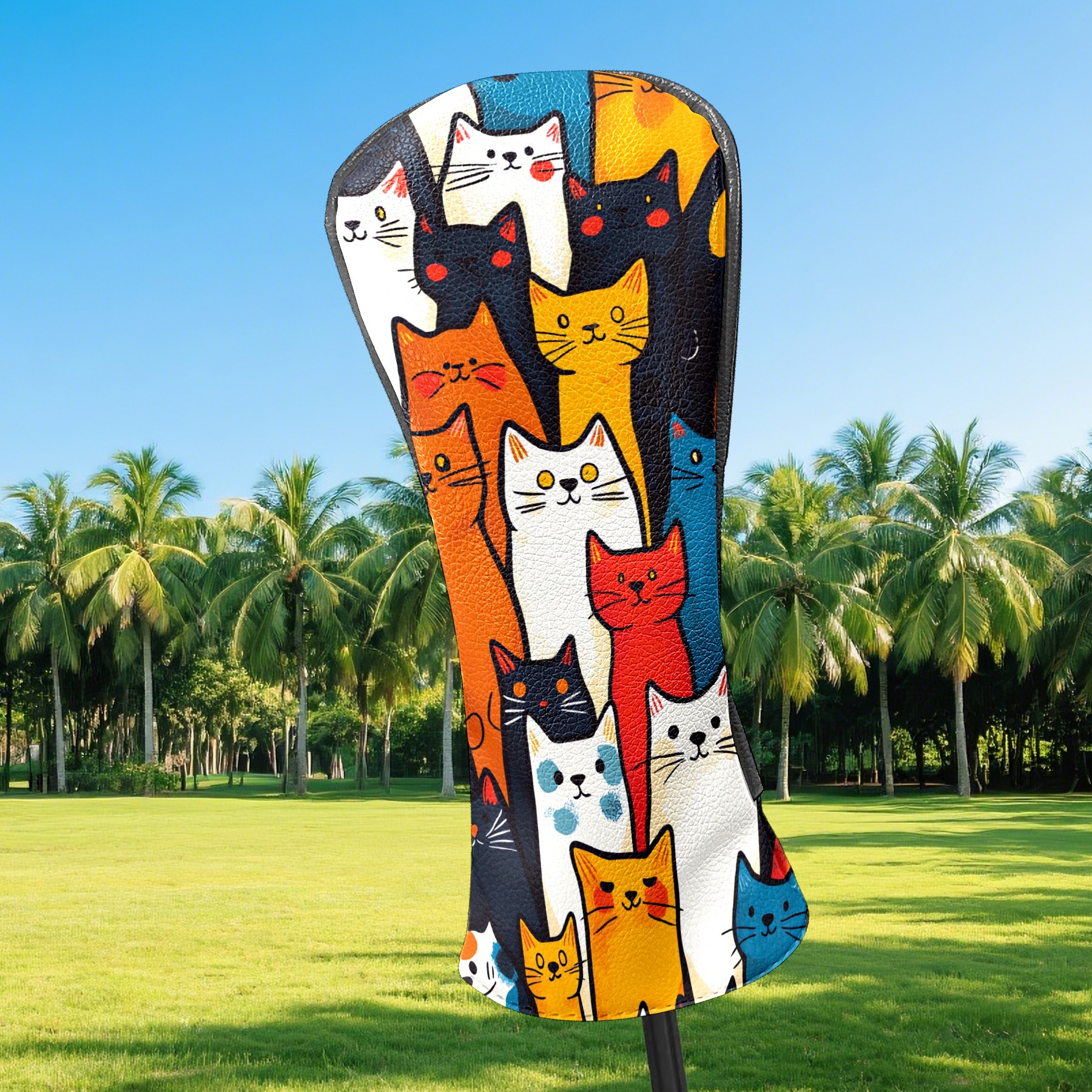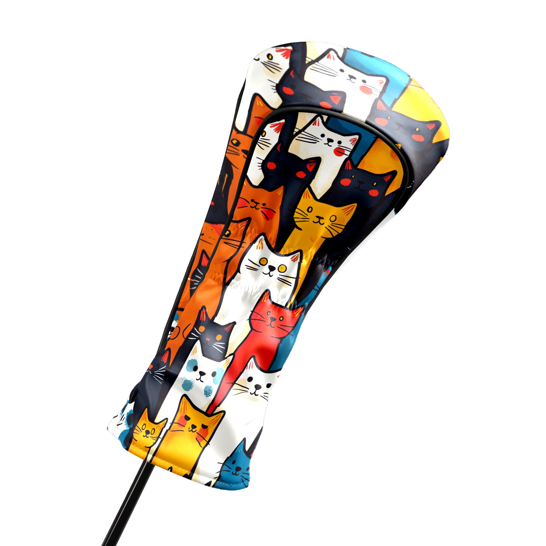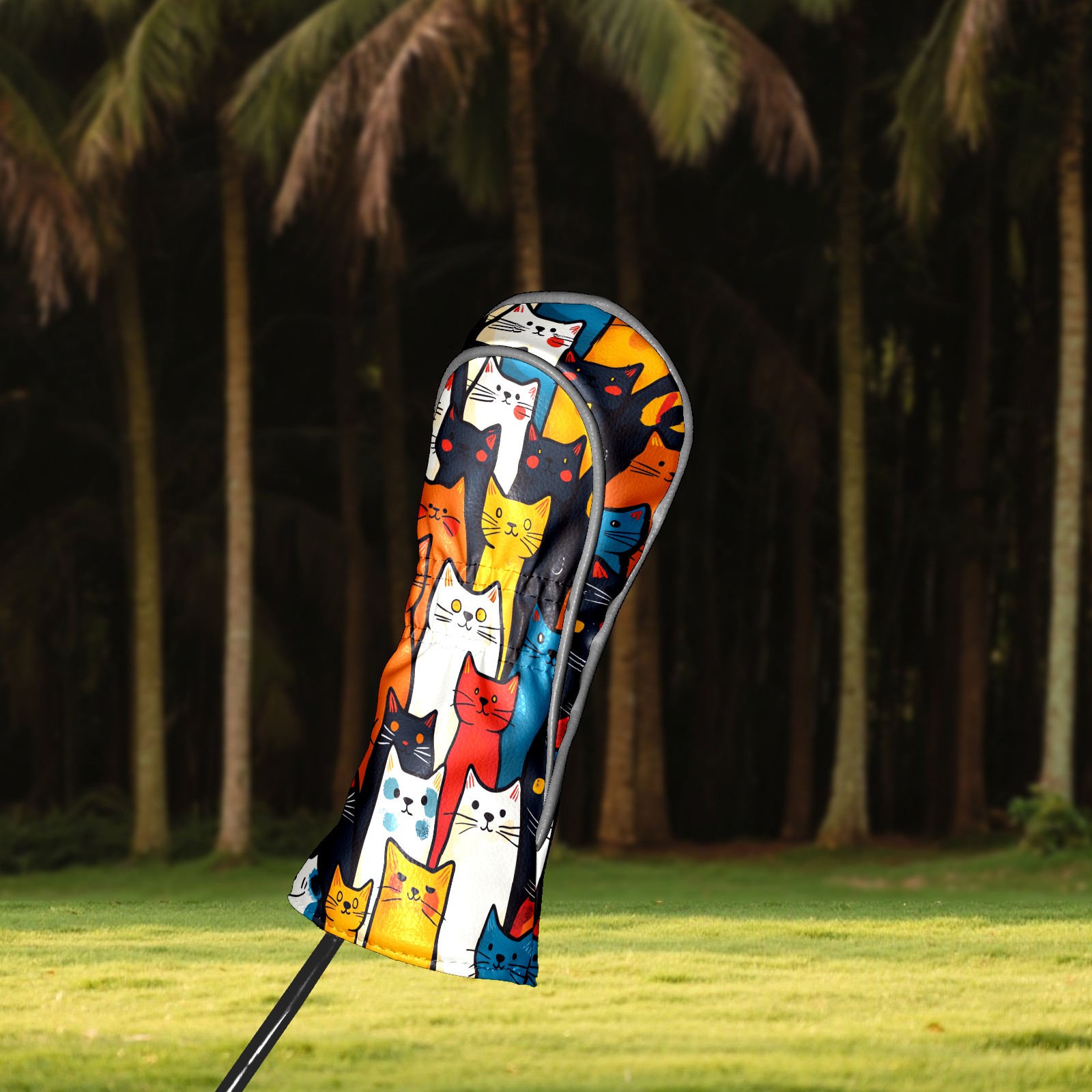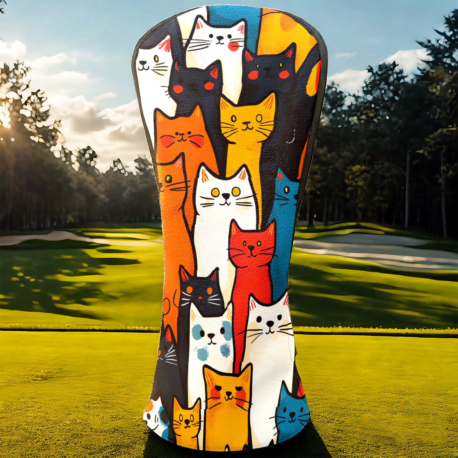 Golf Driver Headcover (Simple Line Cat (1)) Premium Leather Golf Club Head Cover for Woods and Driver, Club Covers Protection for Women & Men