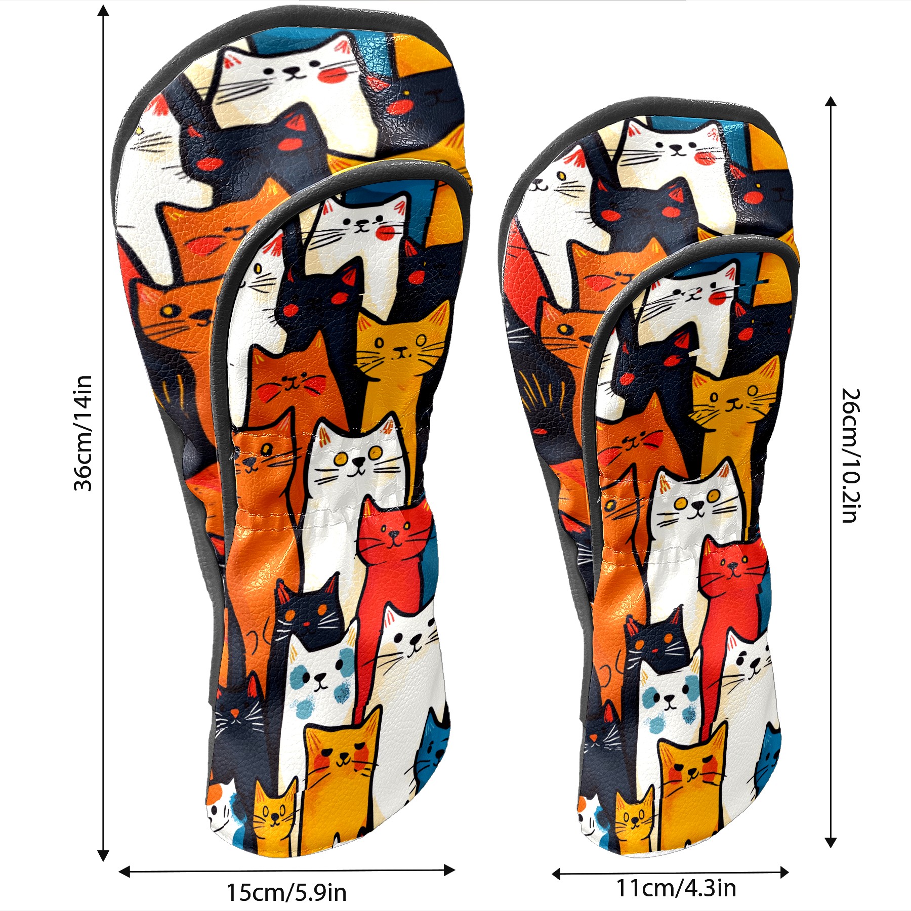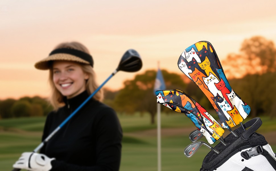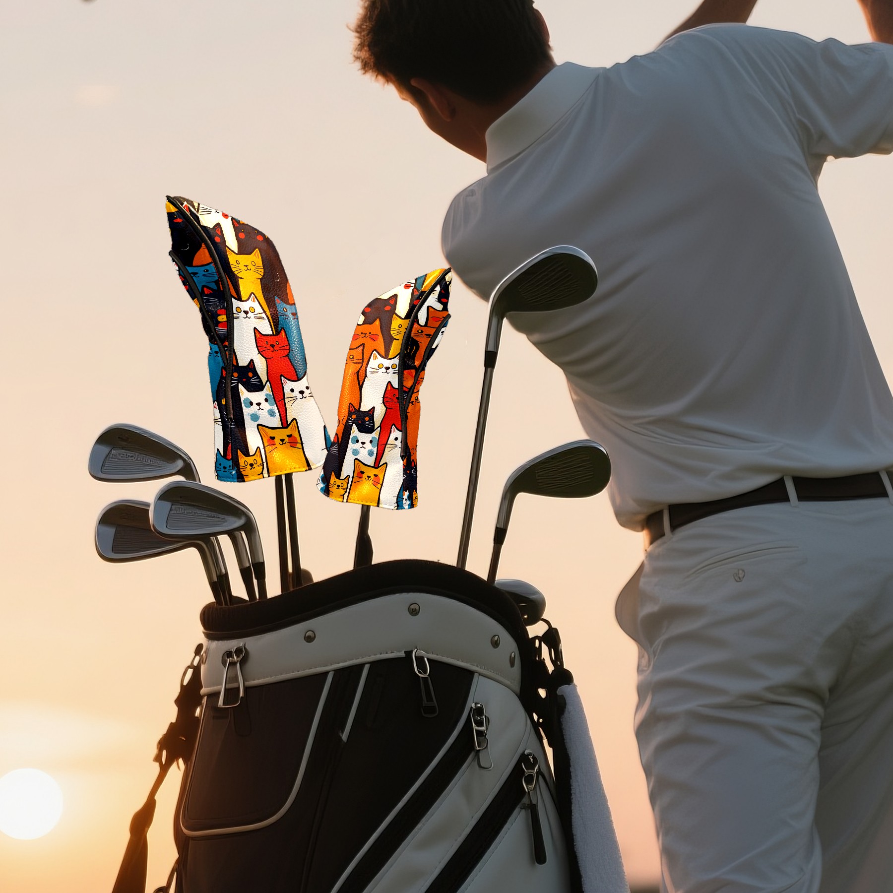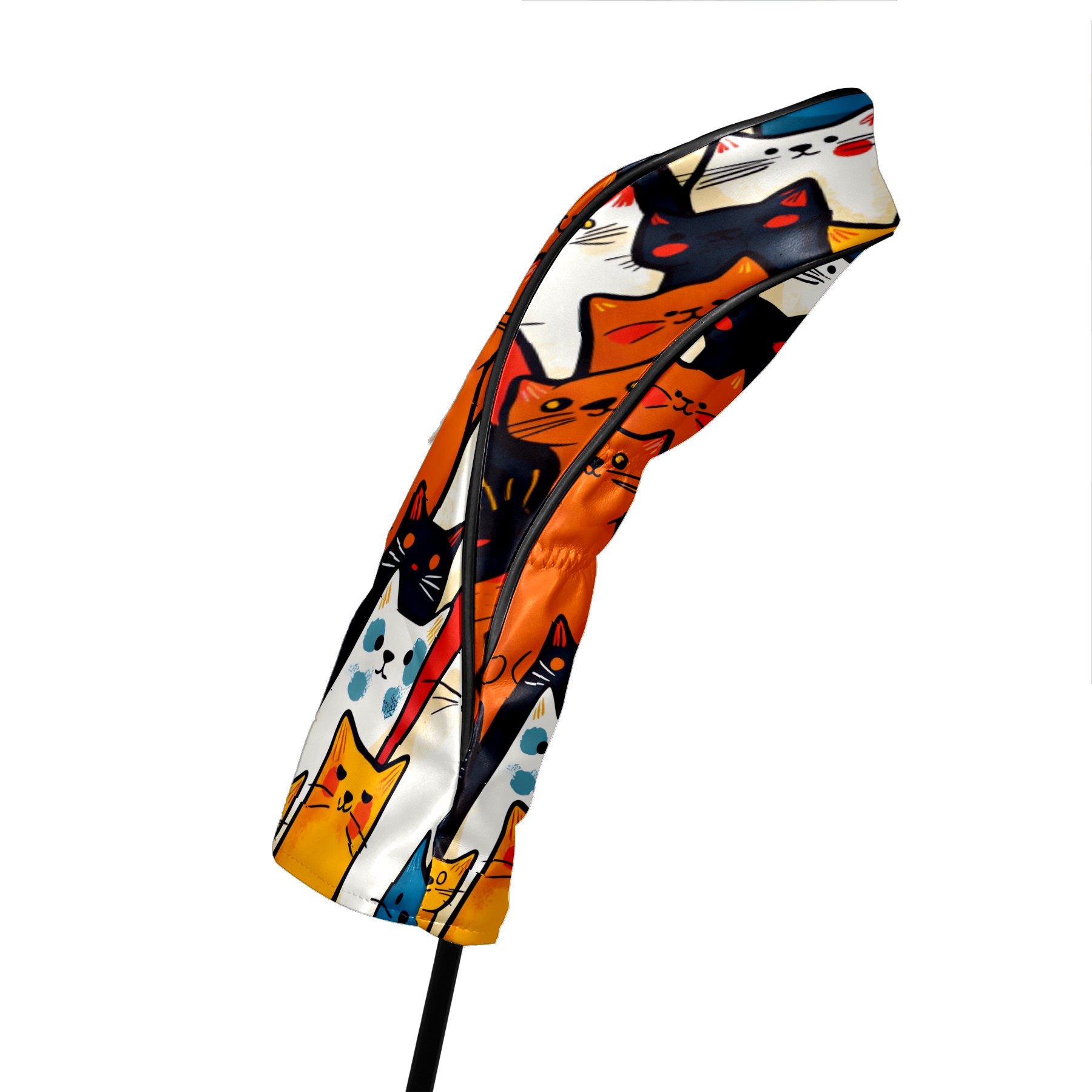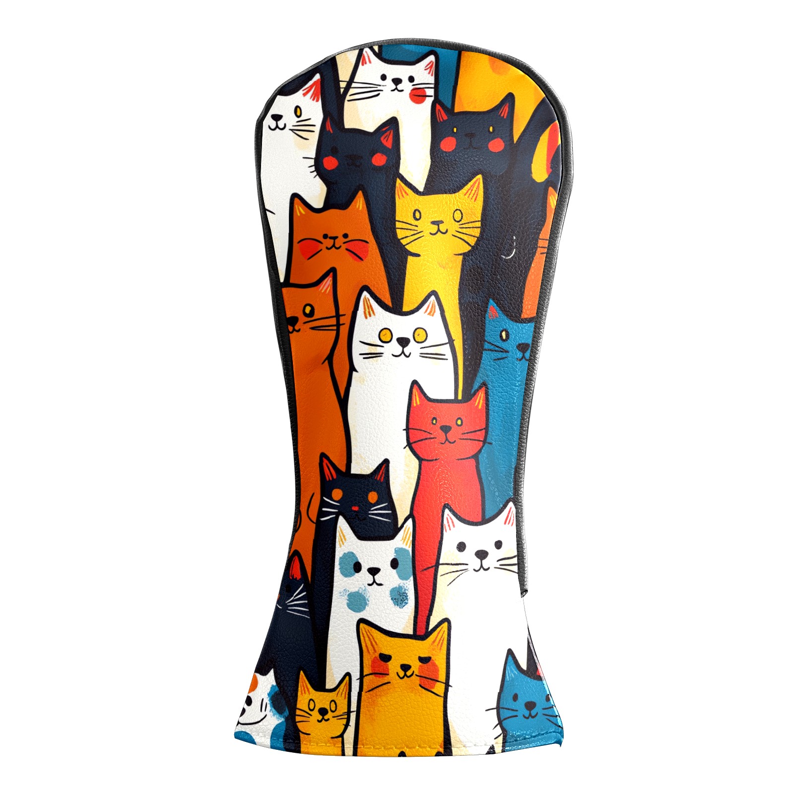 Golf Driver Headcover (Simple Line Cat (1)) Premium Leather Golf Club Head Cover for Woods and Driver, Club Covers Protection for Women & Men