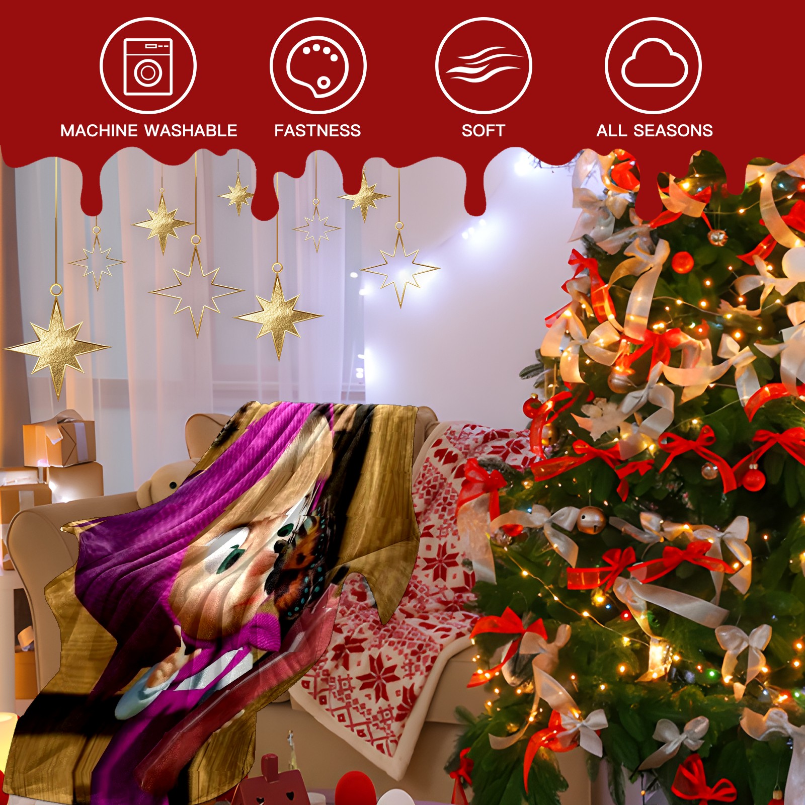 • Обернитесь в облако комфорта с нашей премиальной фланелевой одеялом — созданной, чтобы каждое мгновение отдыха превратилось в роскошный опыт! Изготовленная из высококачественной фланели, эта одеяло обладает бархатистой текстурой, которая ощущается невероятно мягкой на вашей коже. Кожа обеспечивает непревзойденное уютное ощущение, будь то отдых на диване, покой в постели или наслаждение приключениями на свежем воздухе. Спроектирован с учетом практичности, он имеет одностороннюю печать, которая добавляет стиль в любое пространство, а его исключительная производительность выделяет его: больше не беспокоит образование катышков или упрямые складки, гипоаллергенные свойства берегут чувствительную кожу Безопасно, и (пух) крепко держится на месте — без осыпания и ниток. Легкое, но тёплое, оно компактно складывается в вашу сумку или багаж, что делает его идеальным для походов в лагерь, вечеринок в кинотеатре или долгих путешествий.