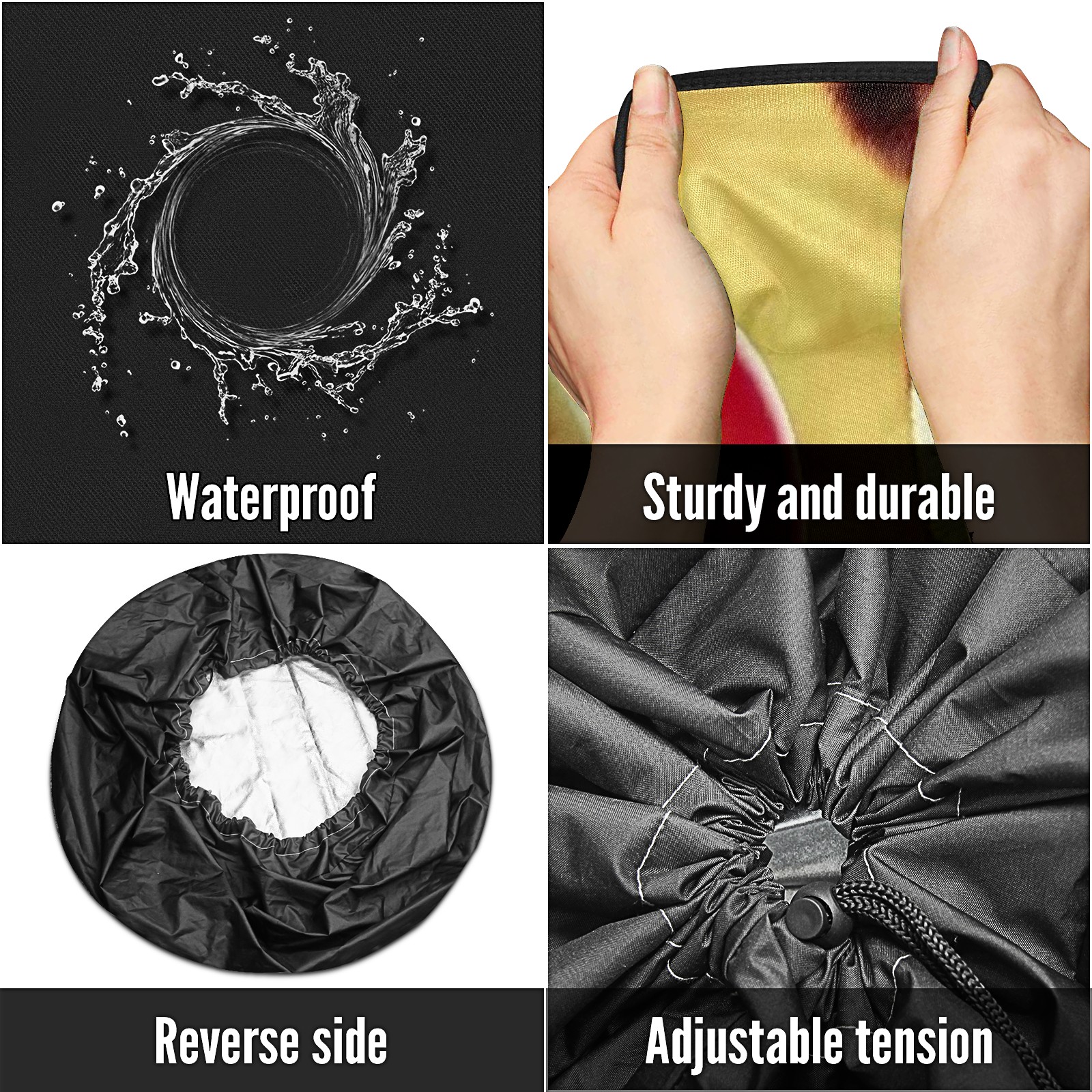• Улучшите внешний вид вашего автомобиля и защитите шины с помощью этих универсальных водонепроницаемых чехлов для шин. Изготовленные из прочного полиэстера, они имеют водоотталкивающее покрытие, которое сохраняет шины чистыми и сухими в любых погодных условиях. Регулируемый нейлоновый шнурок обеспечивает плотное прилегание на различных размерах колес, делая установку быстрой и легкой. Односторонняя печать добавляет стильный акцент, а черные боковые панели предлагают элегантный, универсальный дизайн, который подходит для любого автомобиля. Идеально подходит для автомобилей, джипов, RVs, SUVs и многое другое, эти чехлы идеальны как для повседневного использования, так и для хранения. Лёгкие и складные, они легко хранятся, когда не нужны. Держите запасные шины в отличном состоянии и улучшите внешний вид вашего автомобиля с этими практичными и стильными чехлами. защитные колпаки для колес.