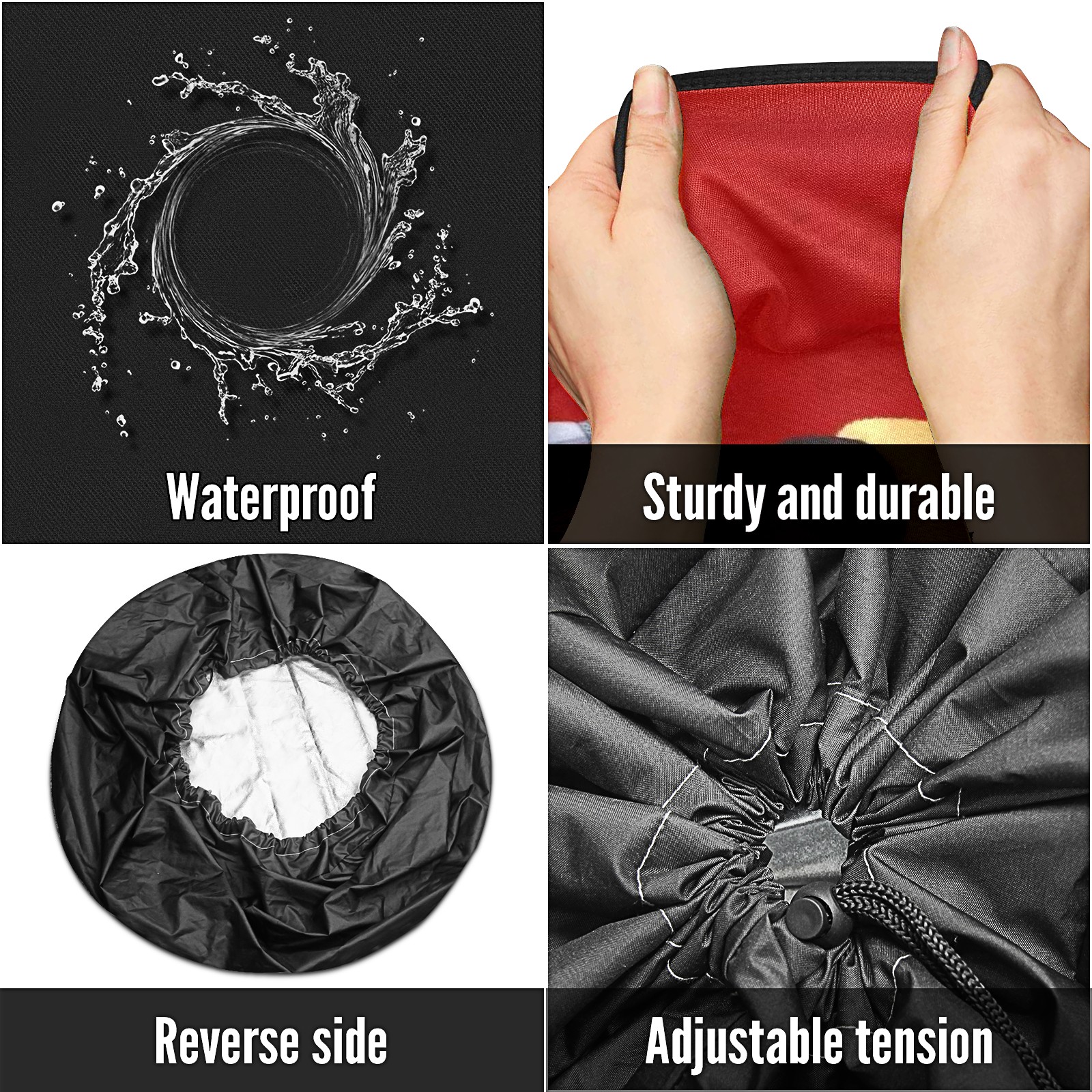 • Улучшите внешний вид вашего автомобиля и защитите шины с помощью этих универсальных водонепроницаемых чехлов для шин. Изготовленные из прочного полиэстера, они имеют водоотталкивающее покрытие, которое сохраняет шины чистыми и сухими в любых погодных условиях. Регулируемый нейлоновый шнурок обеспечивает плотное прилегание на различных размерах колес, делая установку быстрой и легкой. Односторонняя печать добавляет стильный акцент, а черные боковые панели предлагают элегантный, универсальный дизайн, который подходит для любого автомобиля. Идеально подходит для автомобилей, джипов, RVs, SUVs и многое другое, эти чехлы идеальны как для повседневного использования, так и для хранения. Лёгкие и складные, они легко хранятся, когда не нужны. Держите запасные шины в отличном состоянии и улучшите внешний вид вашего автомобиля с этими практичными и стильными чехлами. защитные колпаки для колес.