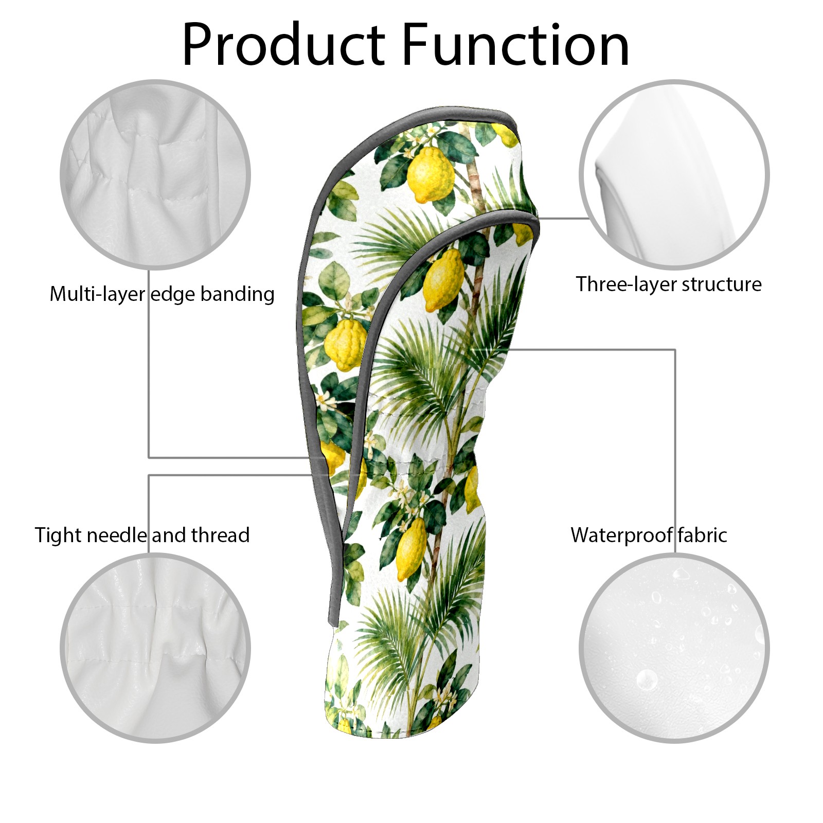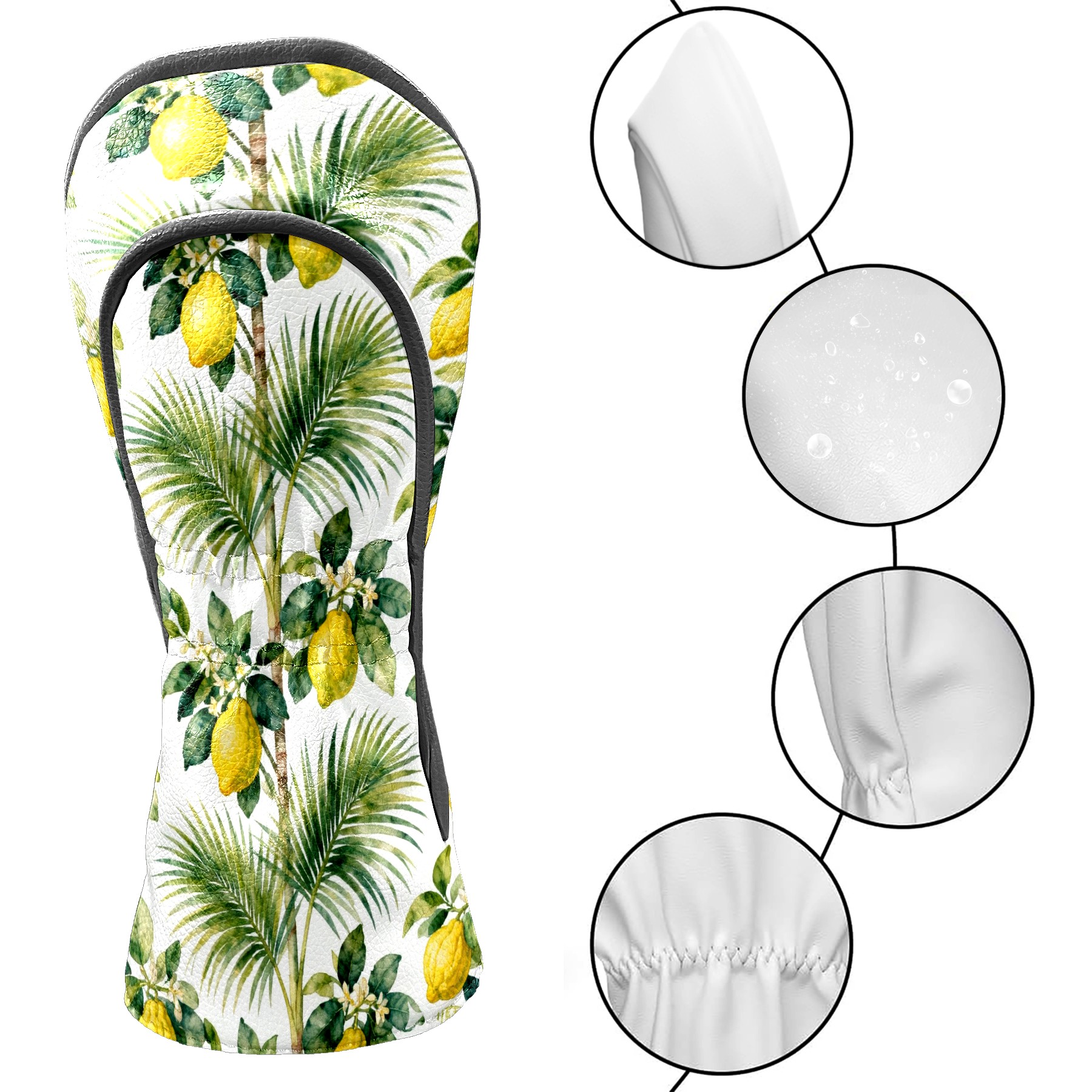 Golf Driver Headcover (Jimeng-2026-02-26-8890-pattern, Seamless, Leaves, Yellow Fruits...) Premium Leather Golf Club Head Cover for Woods and Driver, Club Covers Protection for Women & Men