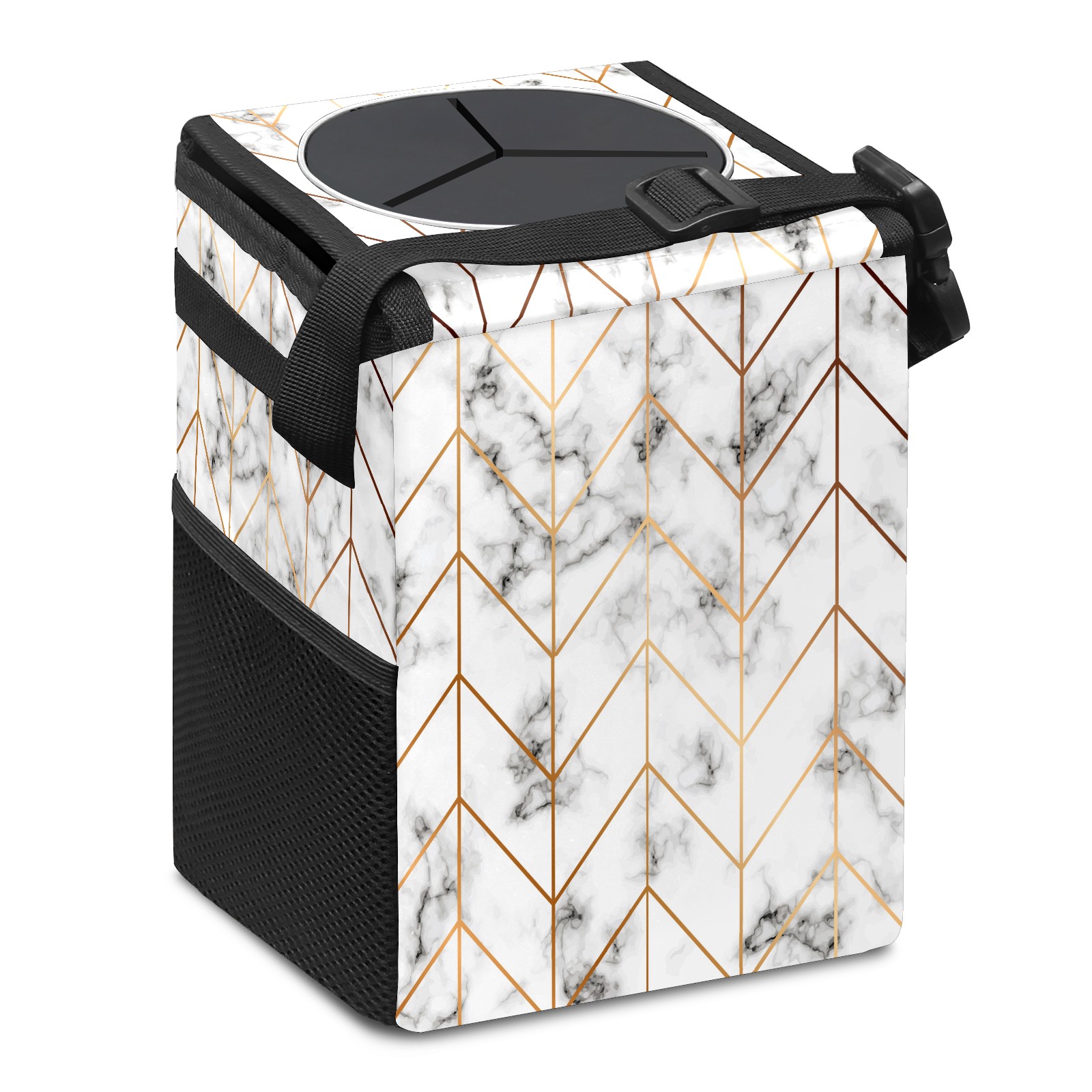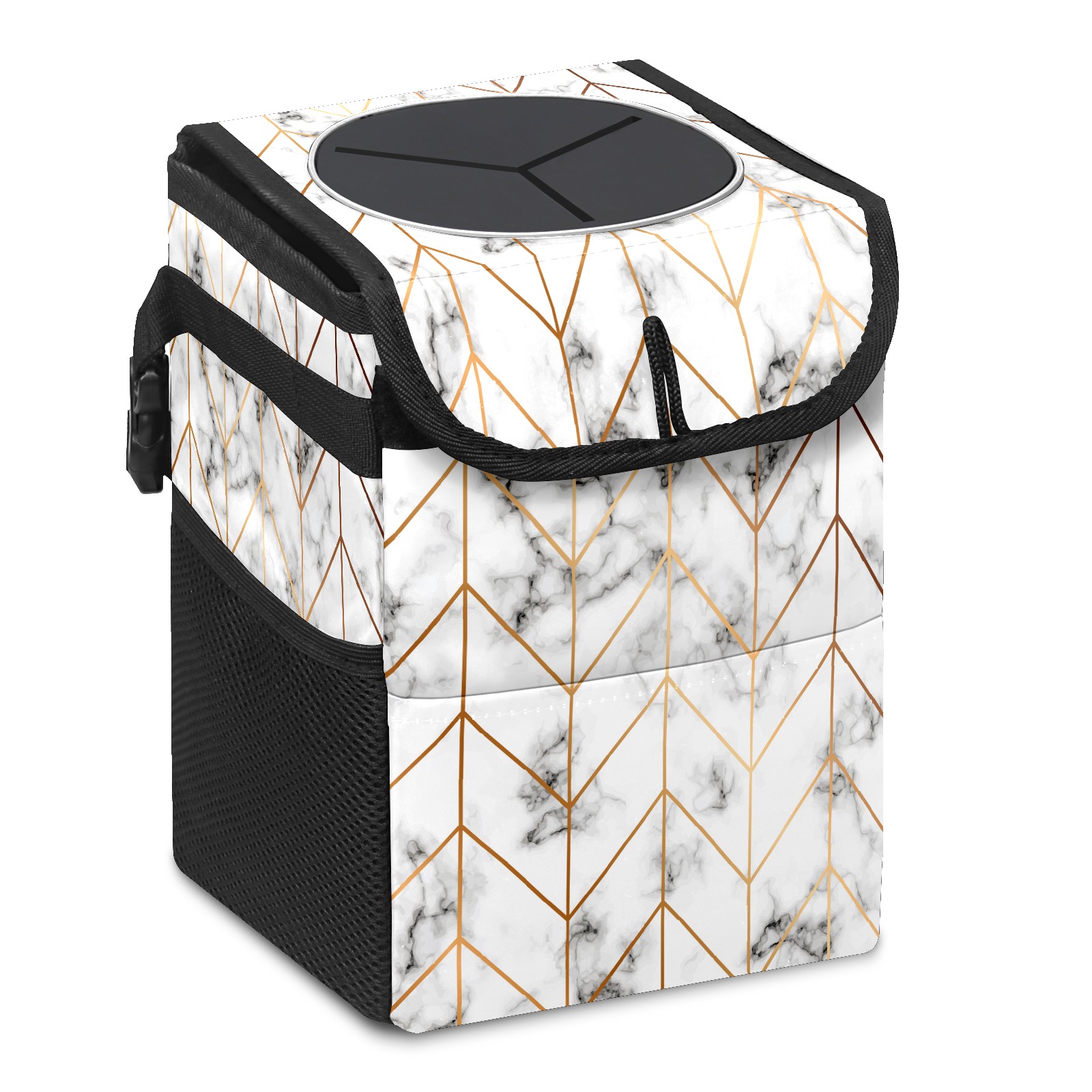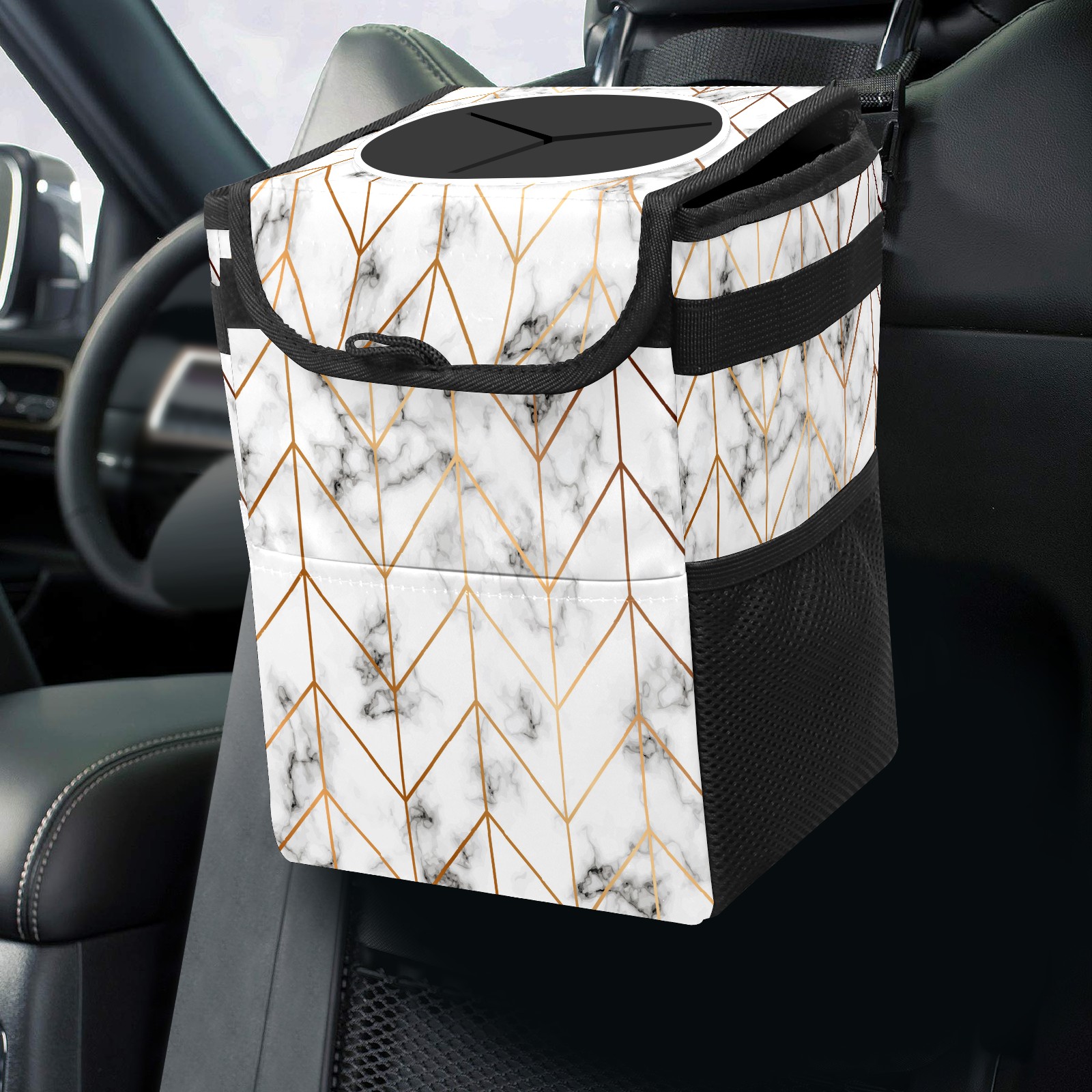 MSINMKOK Car Trash Bin with Lid Auto Garbage Bag Hanging for Back Seat - Leakproof Trash Can for Cars SUVs Trucks Vehicle Car Accessories (Geometric Line Arrow Pattern)