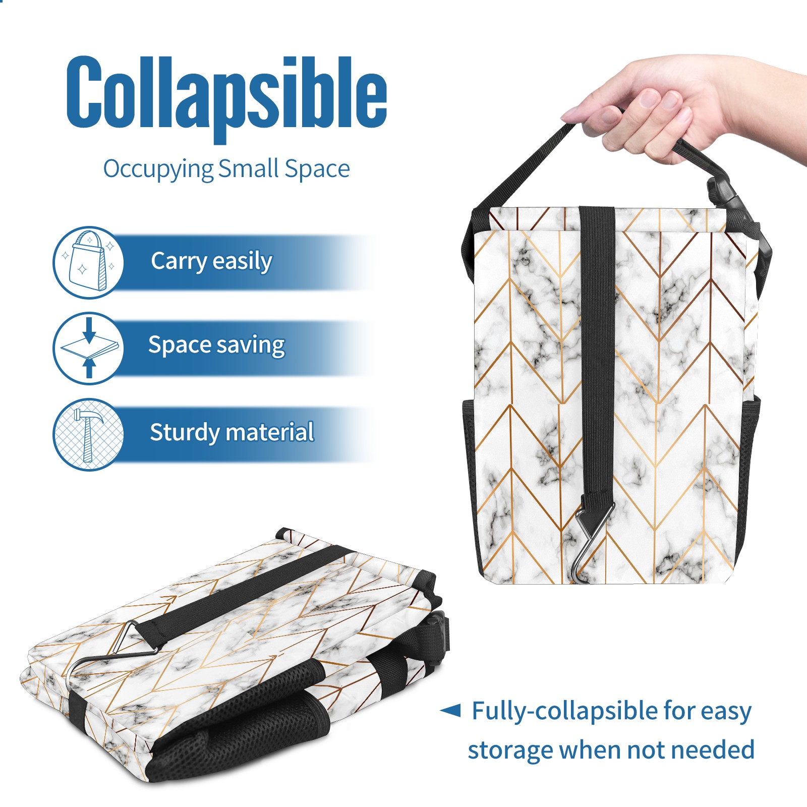 • <p>【FOLDABLE &amp; SPACE-SAVING】</p> <p>✔ Compact 9.5"×6.7"×6.3" size fits perfectly in any vehicle space.</p> <p>✔ Instantly folds flat when not in use - stores effortlessly under seats or in door pockets.</p> <p>【MULTI-FUNCTION ORGANIZER】</p> <p>✔ Large main compartment holds bottles, wrappers and tissues.</p> <p>✔ Additional pockets for wet wipes, masks or small accessories.</p> <p>【WATERPROOF &amp; LEAKPROOF】</p> <p>✔ Made with premium leak-proof polyester material.</p> <p>✔ Contains messy spills from drinks, snacks, and food. </p> <p>✔ Wipe-clean surface resists stains and eliminates odors.</p> <p>Package Includes:</p> <p>1× Car Trash Can</p>