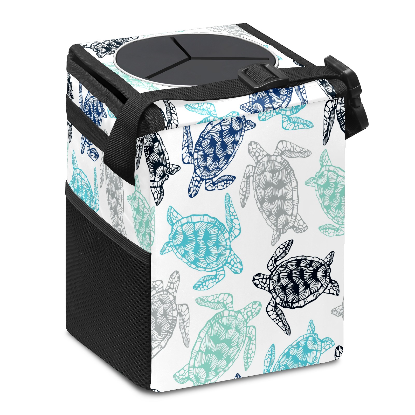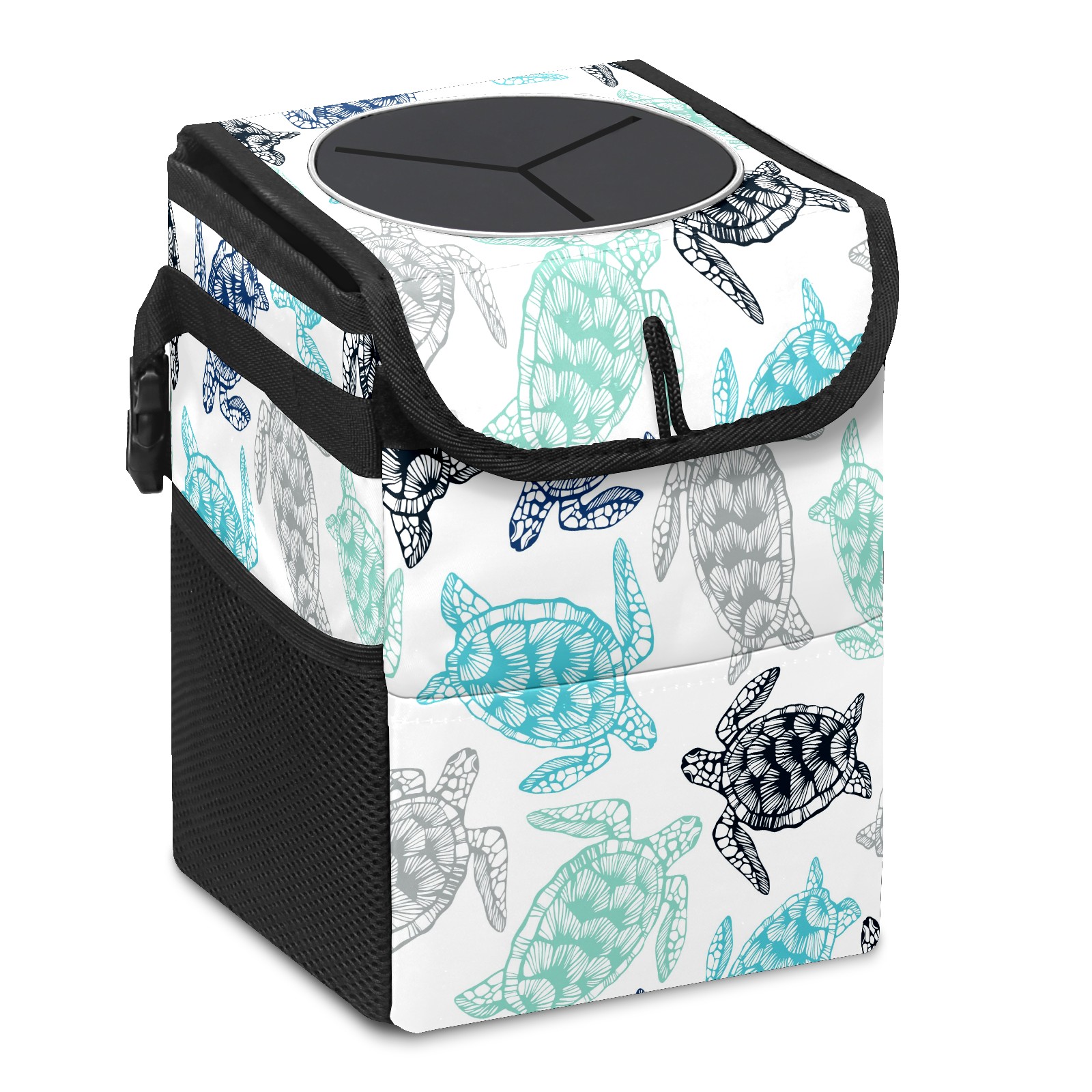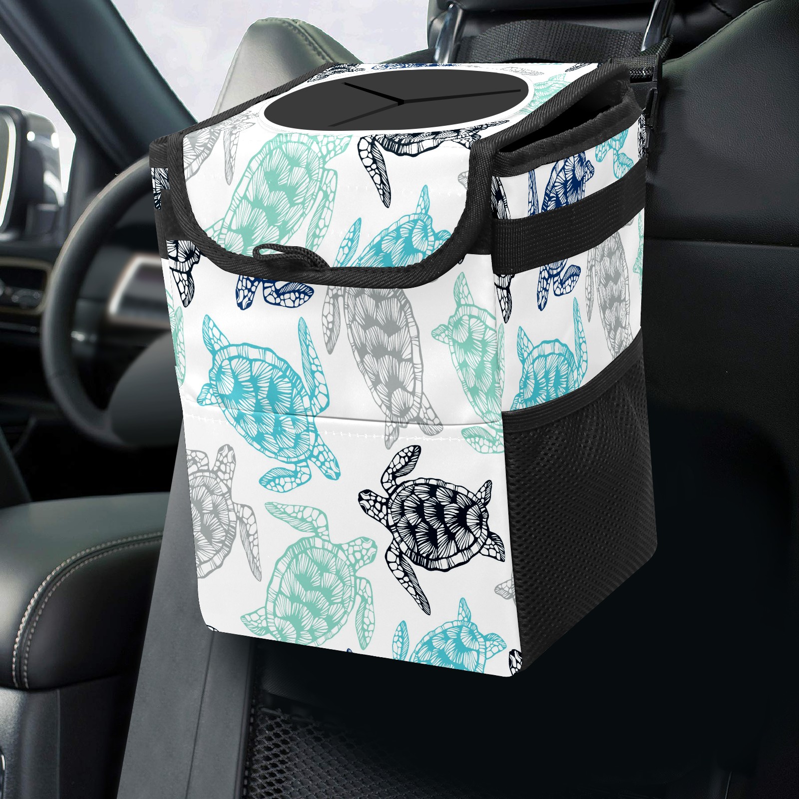 MSINMKOK Car Trash Bin with Lid Auto Garbage Bag Hanging for Back Seat - Leakproof Trash Can for Cars SUVs Trucks Vehicle Car Accessories (Boho Sea Turtle Tortoise)