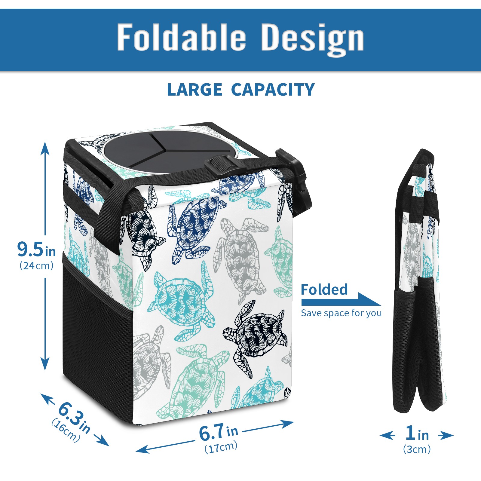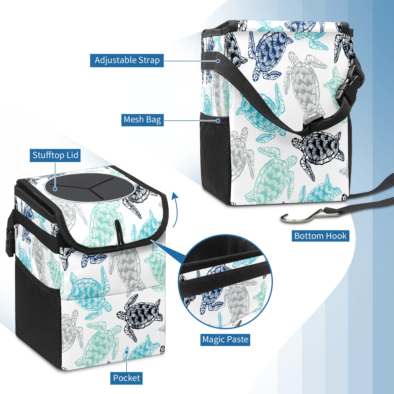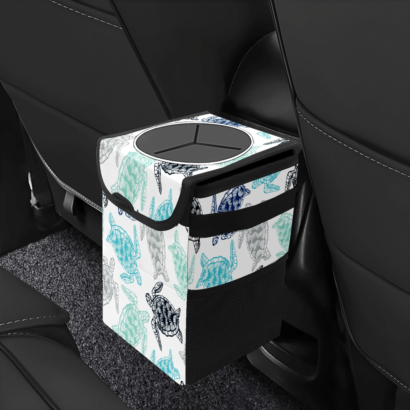 MSINMKOK Car Trash Bin with Lid Auto Garbage Bag Hanging for Back Seat - Leakproof Trash Can for Cars SUVs Trucks Vehicle Car Accessories (Boho Sea Turtle Tortoise)