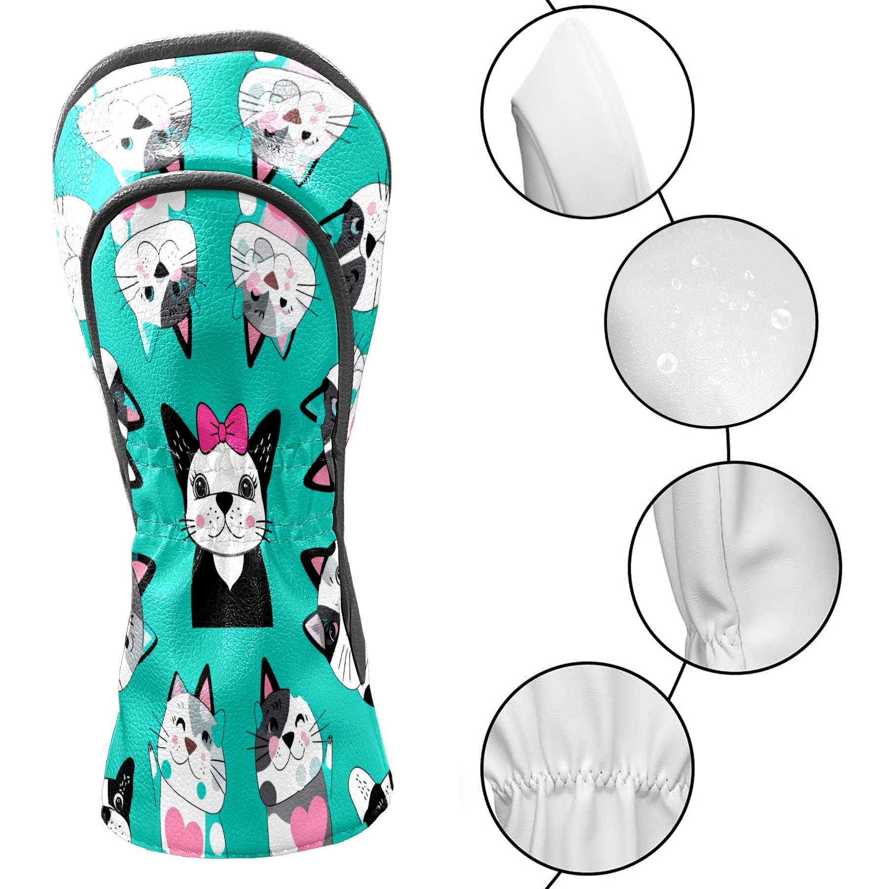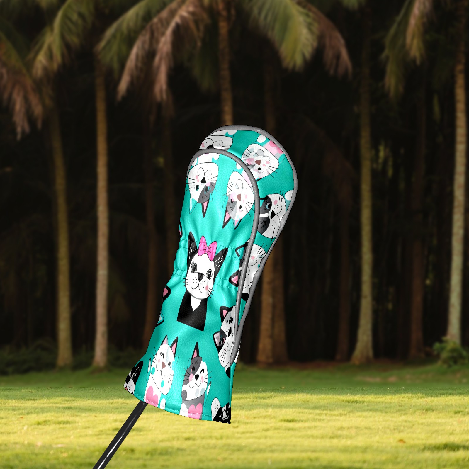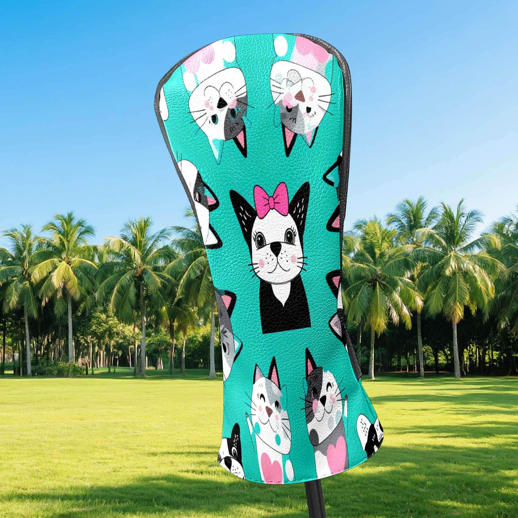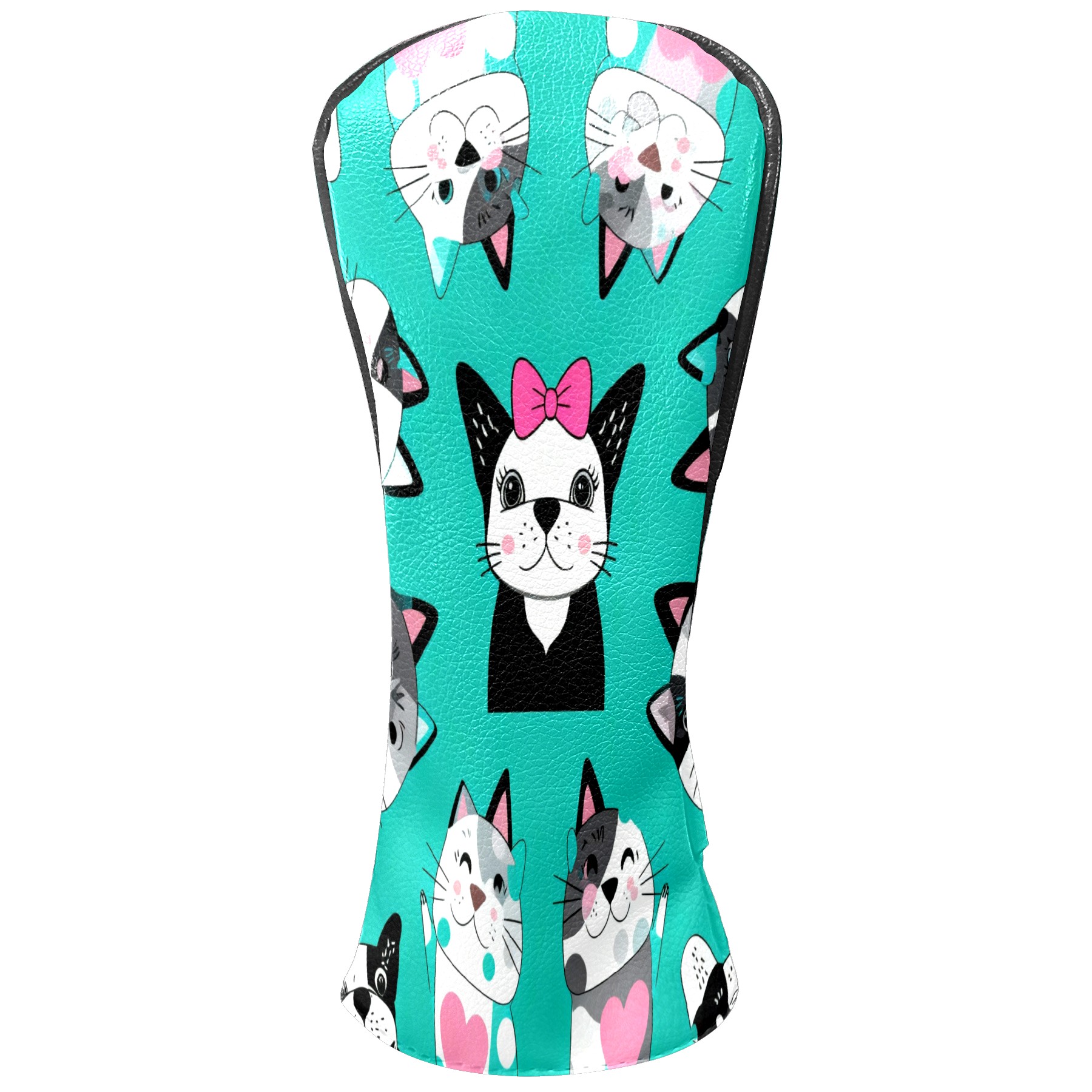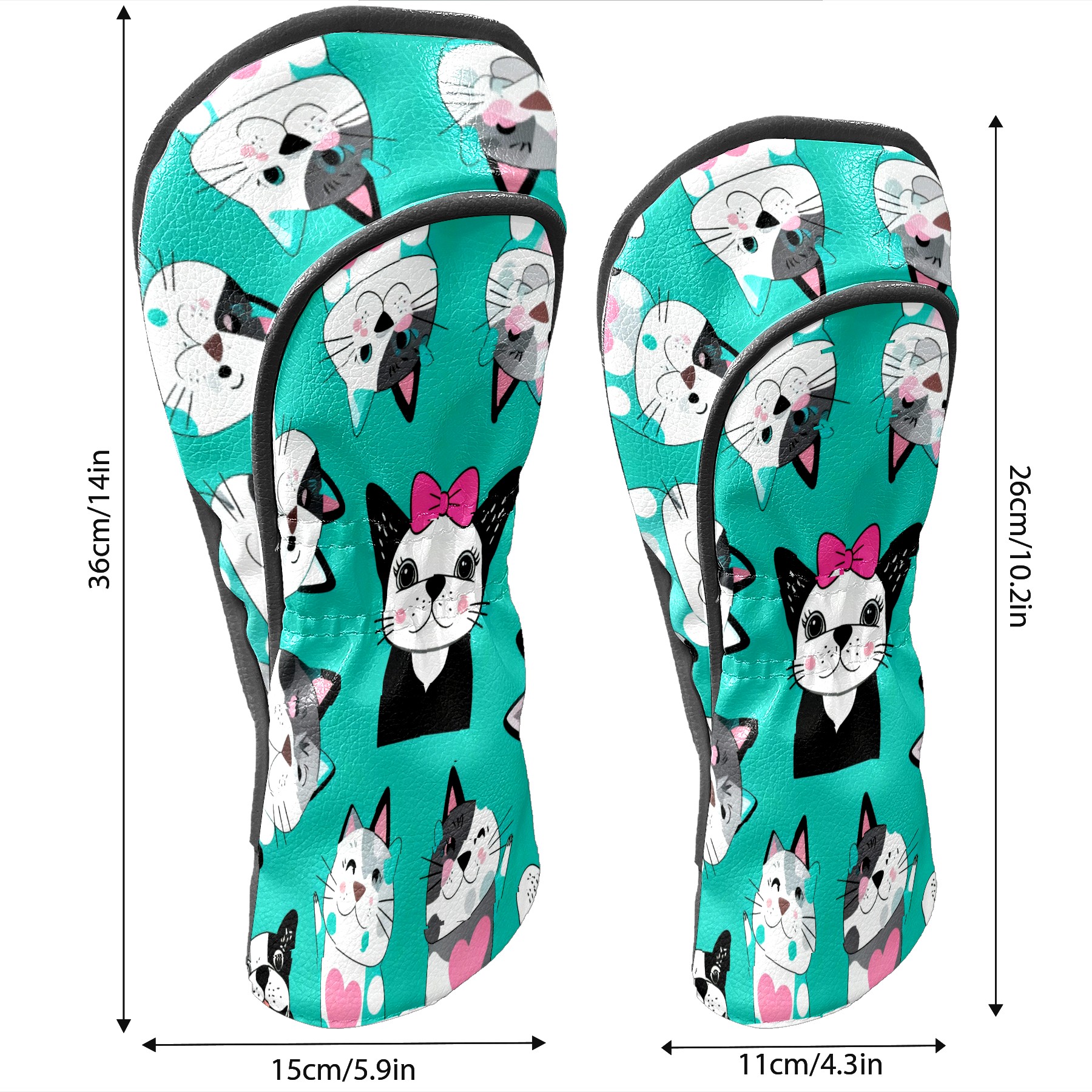 Golf Club Covers Premium Leather Driver Headcover, Golf Head Covers for Woods and Driver Waterproof Golf Headcovers with Anti-Scratch Lining for Women Men (Funny Cats Sage Green)