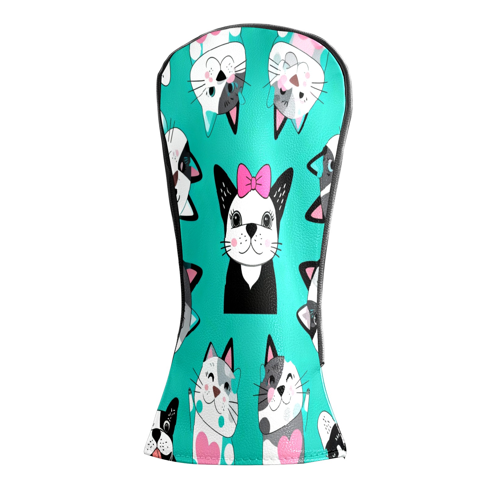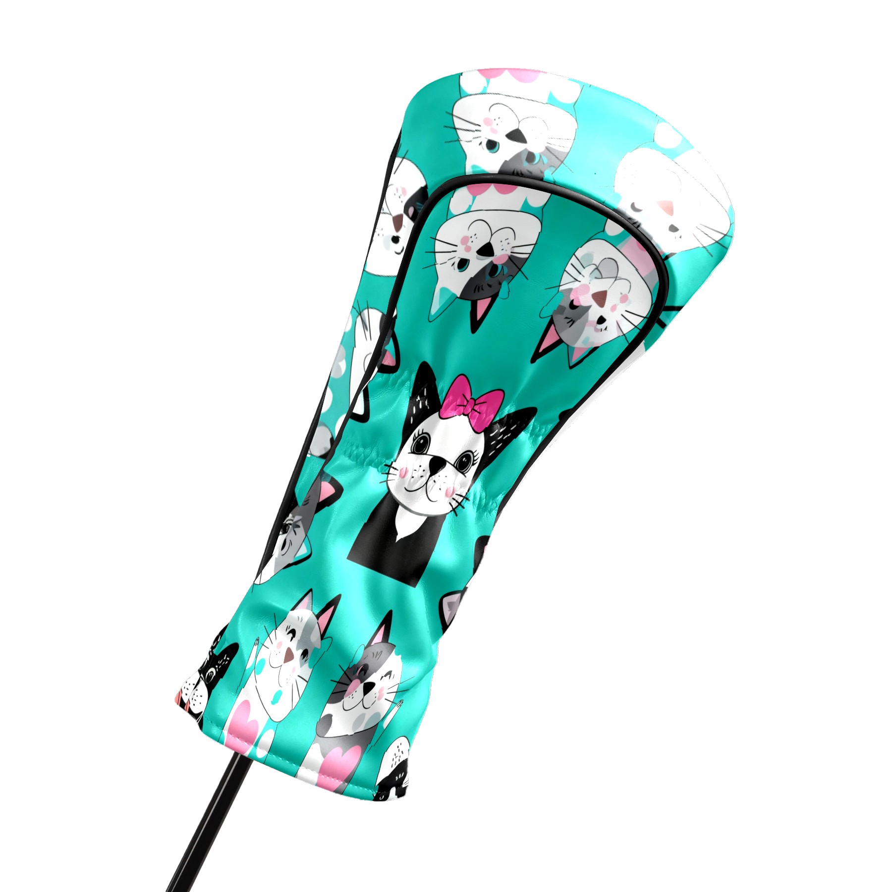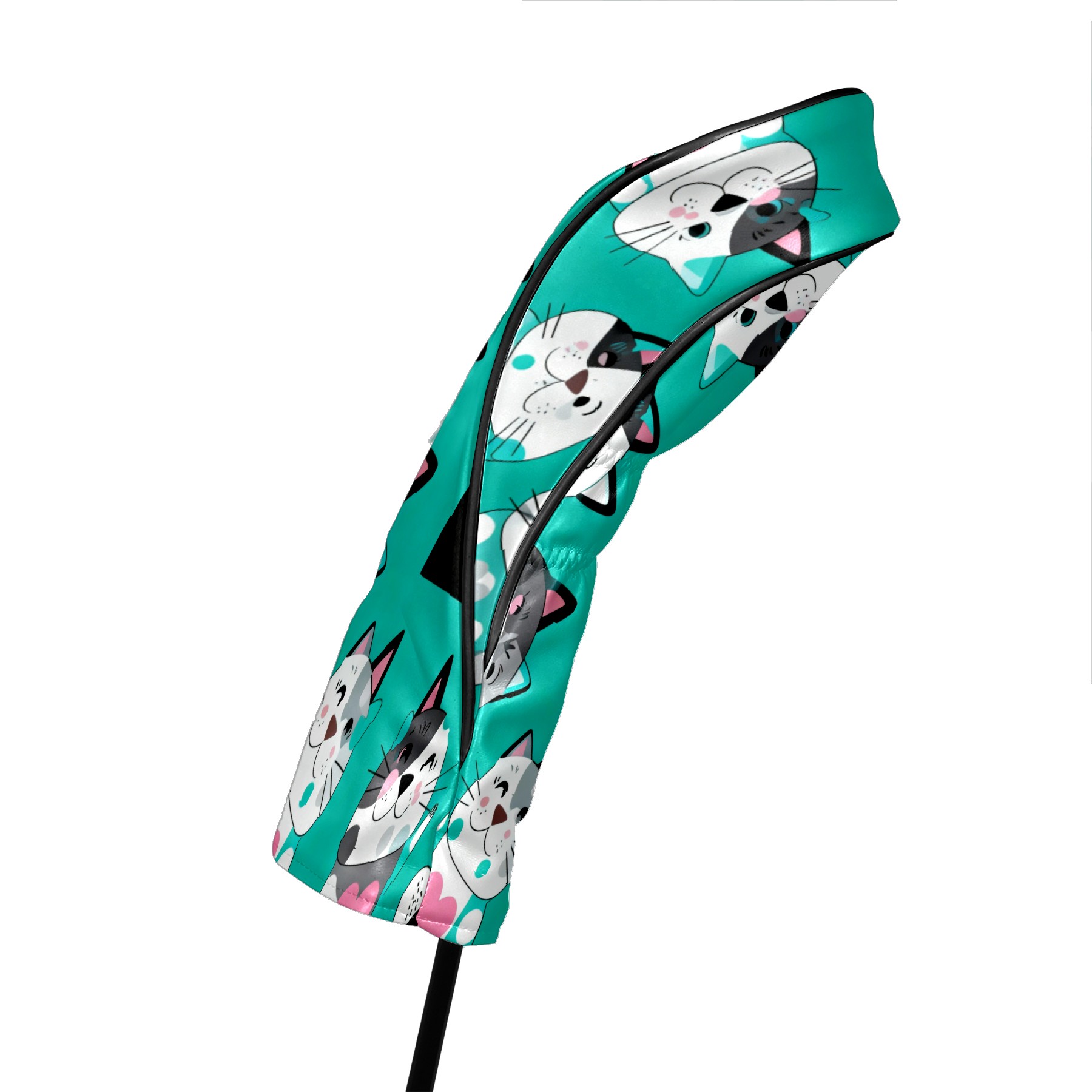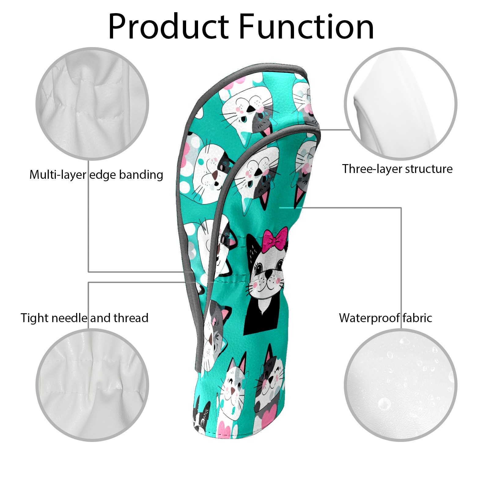 Golf Club Covers Premium Leather Driver Headcover, Golf Head Covers for Woods and Driver Waterproof Golf Headcovers with Anti-Scratch Lining for Women Men (Funny Cats Sage Green)