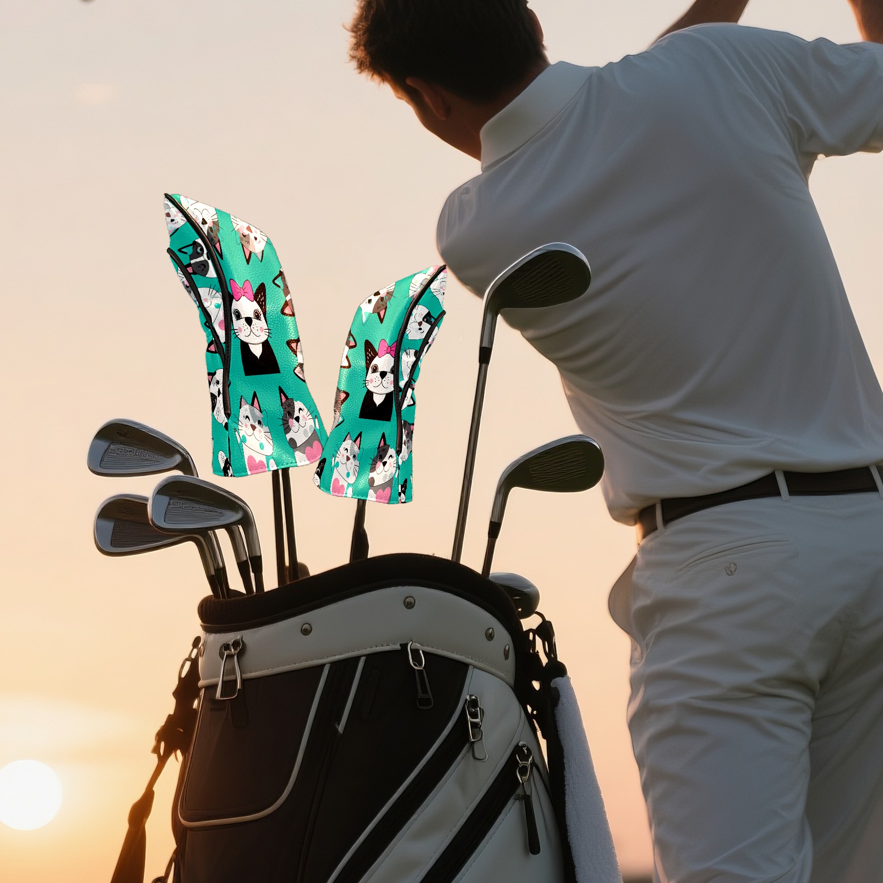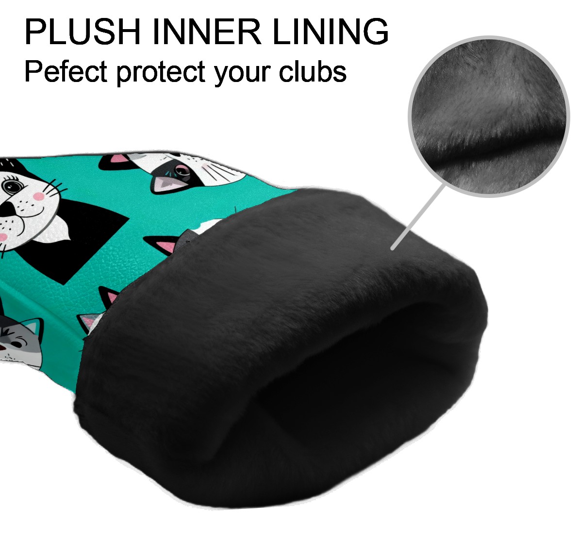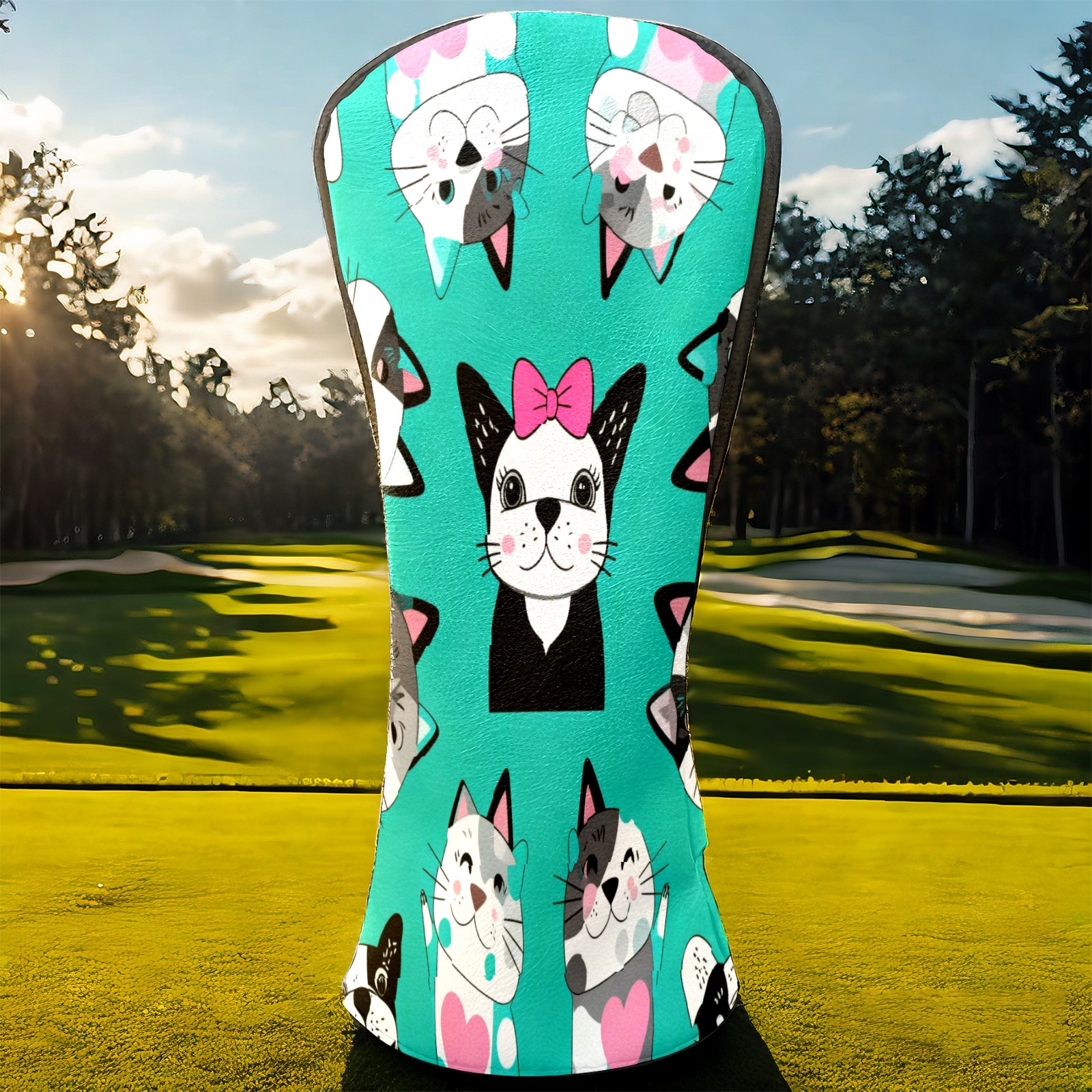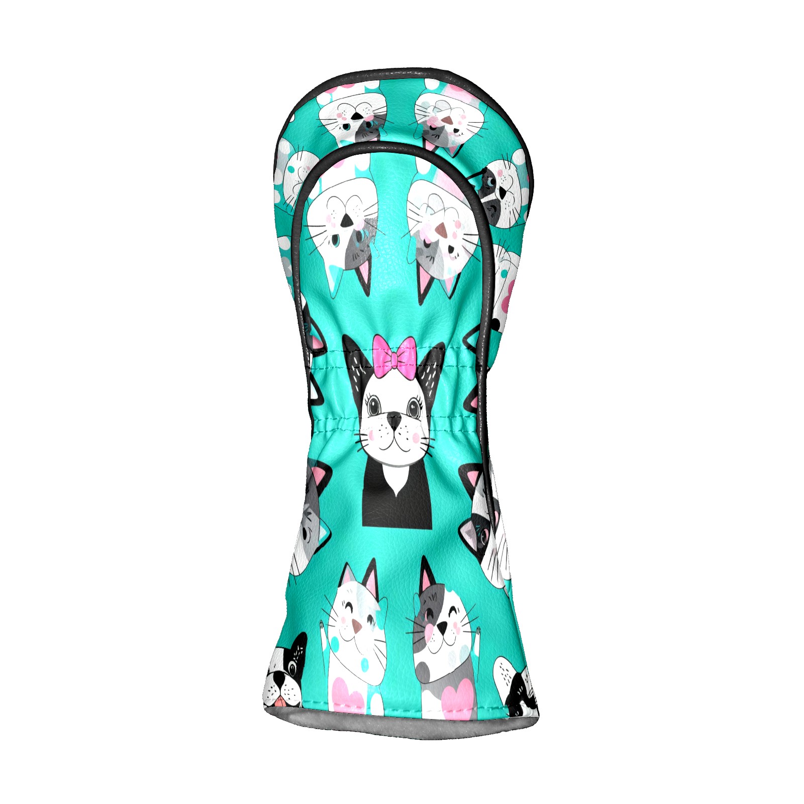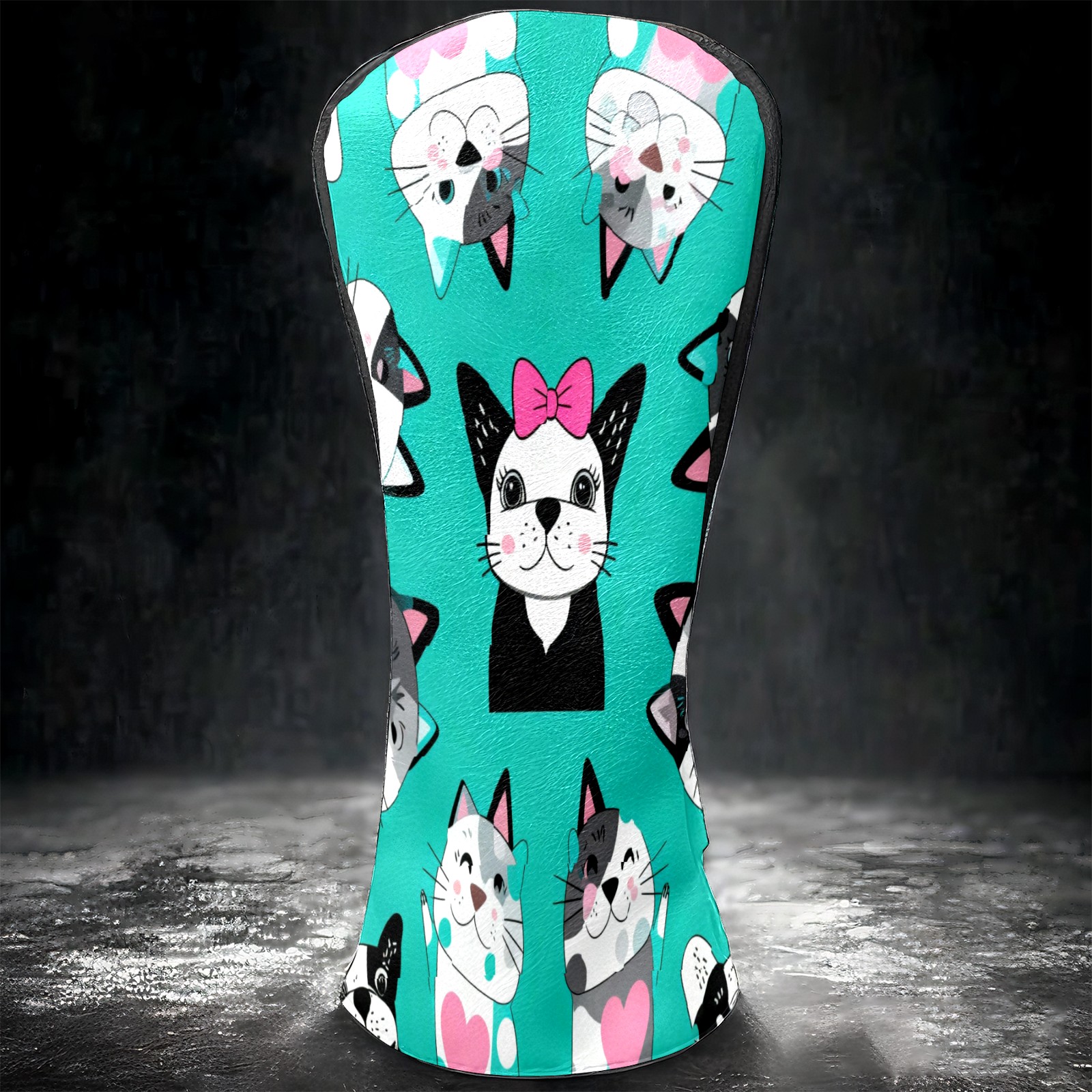 Golf Club Covers Premium Leather Driver Headcover, Golf Head Covers for Woods and Driver Waterproof Golf Headcovers with Anti-Scratch Lining for Women Men (Funny Cats Sage Green)