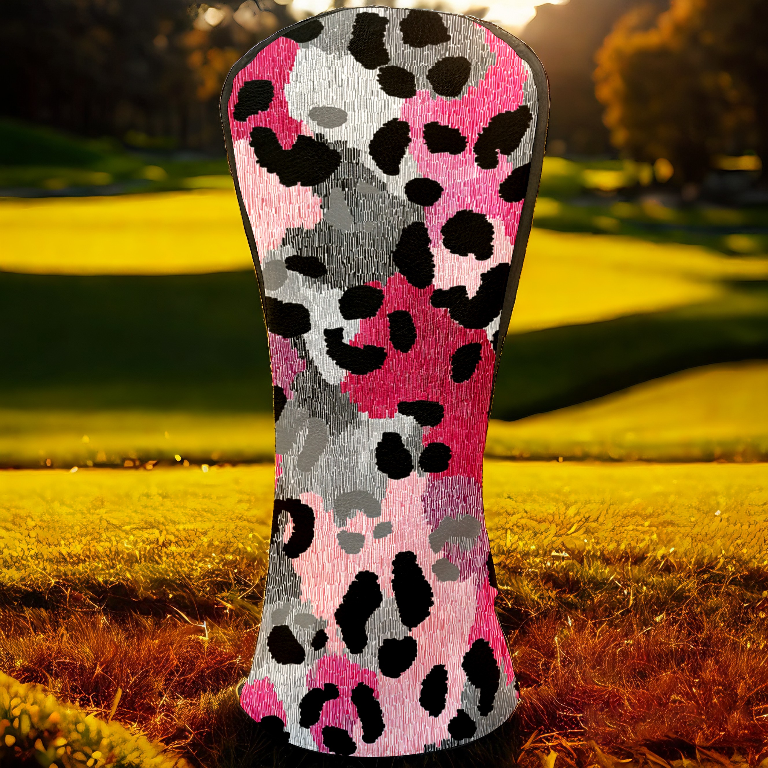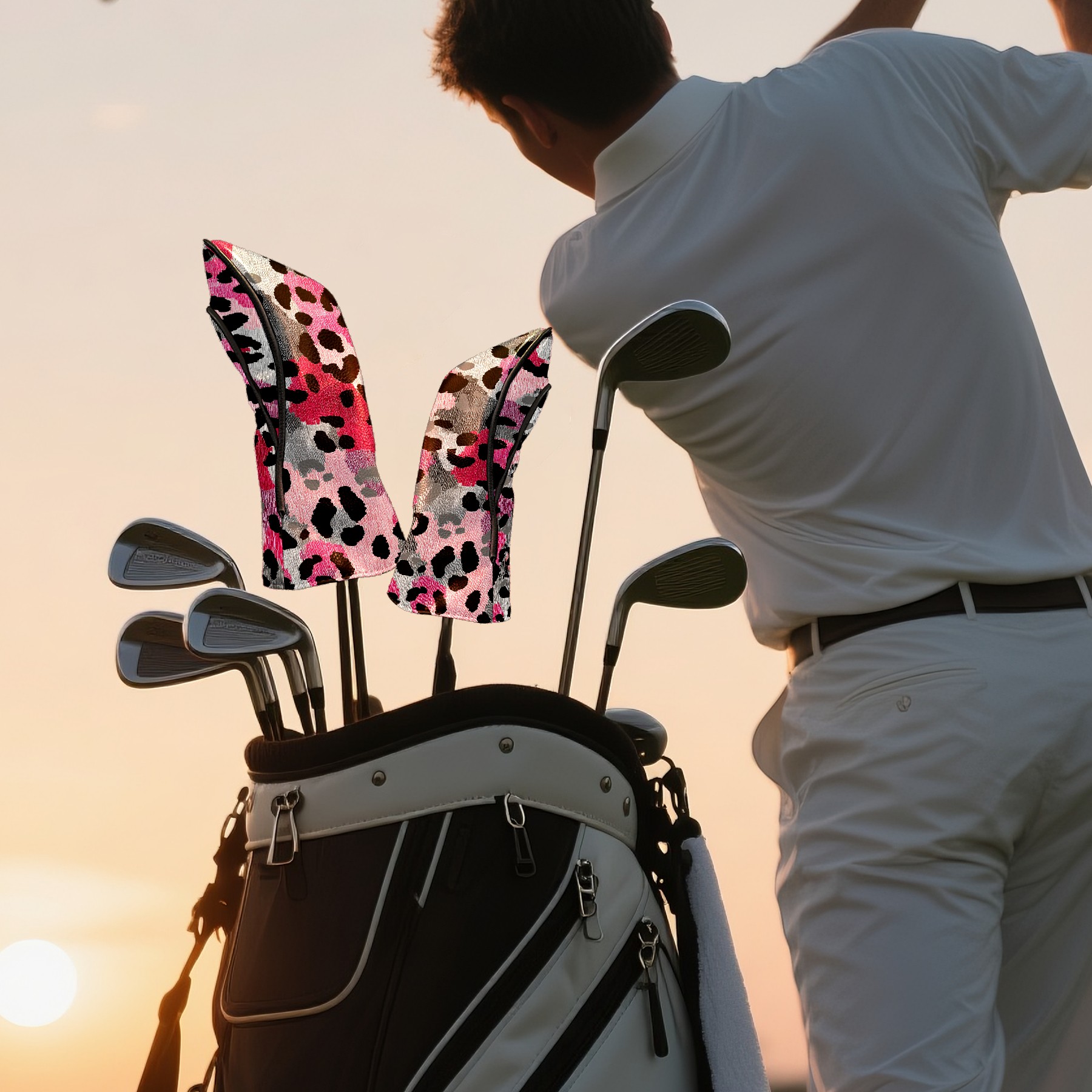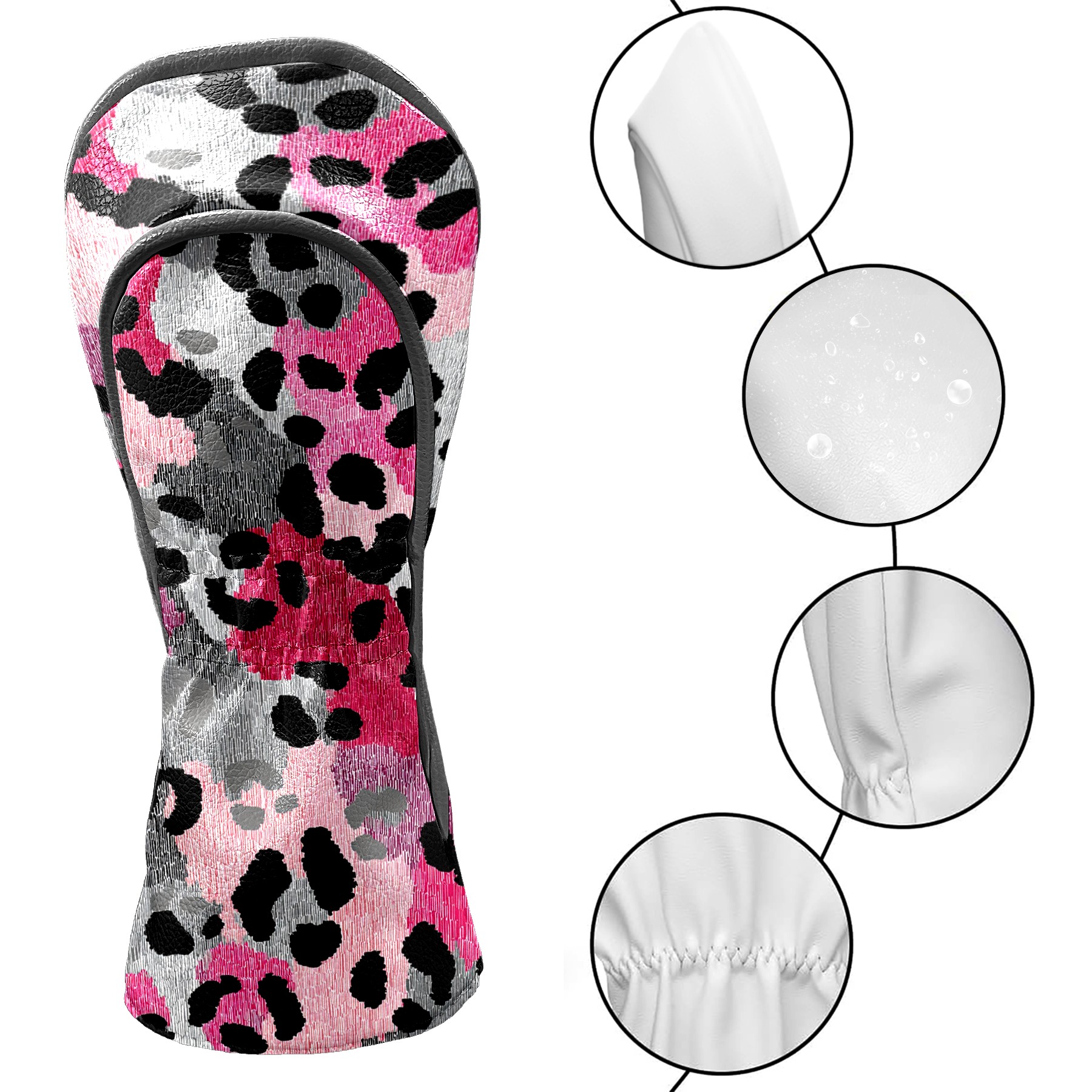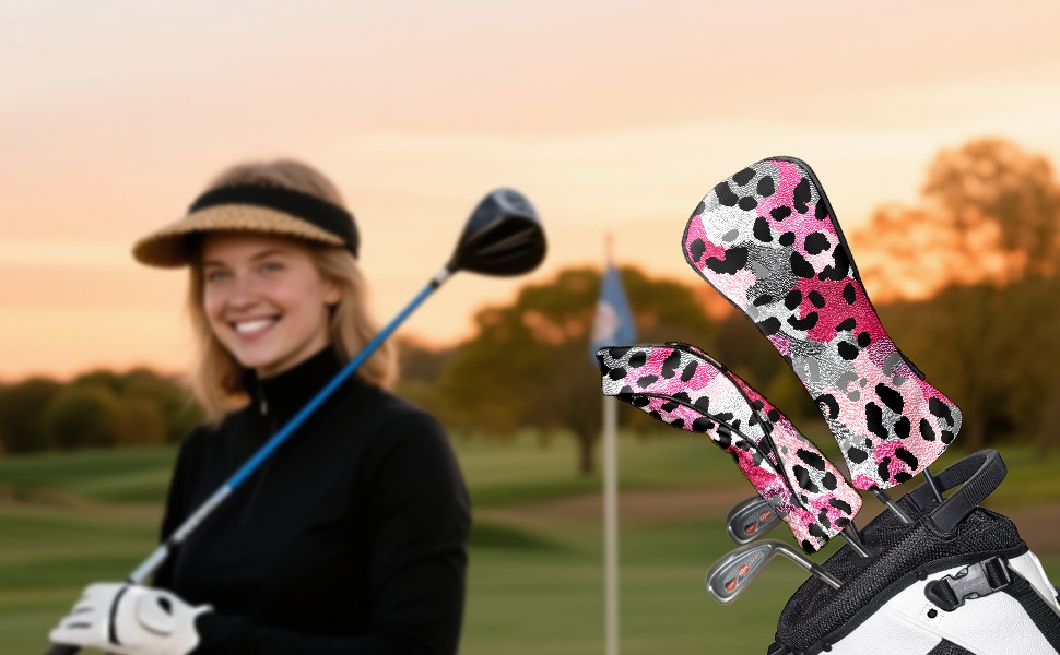 Golf Driver Head Covers Fairway Wood Headcovers, Premium Leather Golf Club Covers with Anti-Scratch Lining 1/3/5 Wood Cover for golf clubs for Women Men (Leopard Print BlackPink)