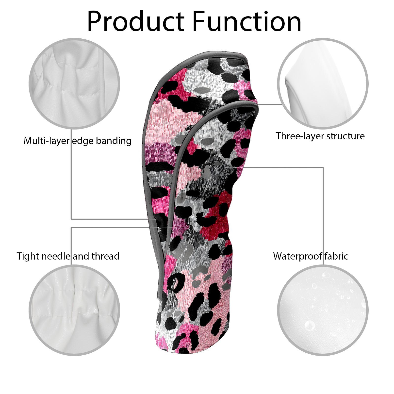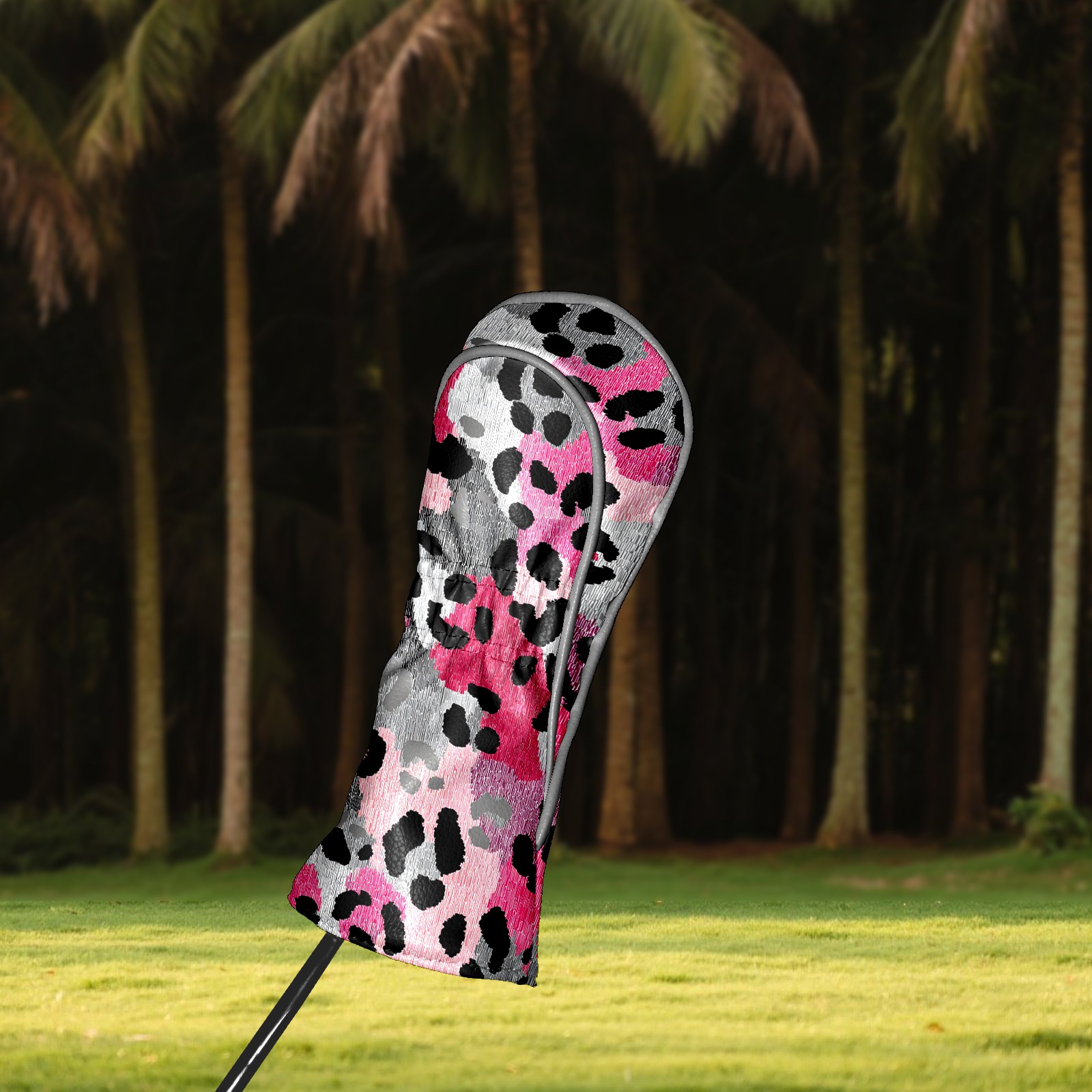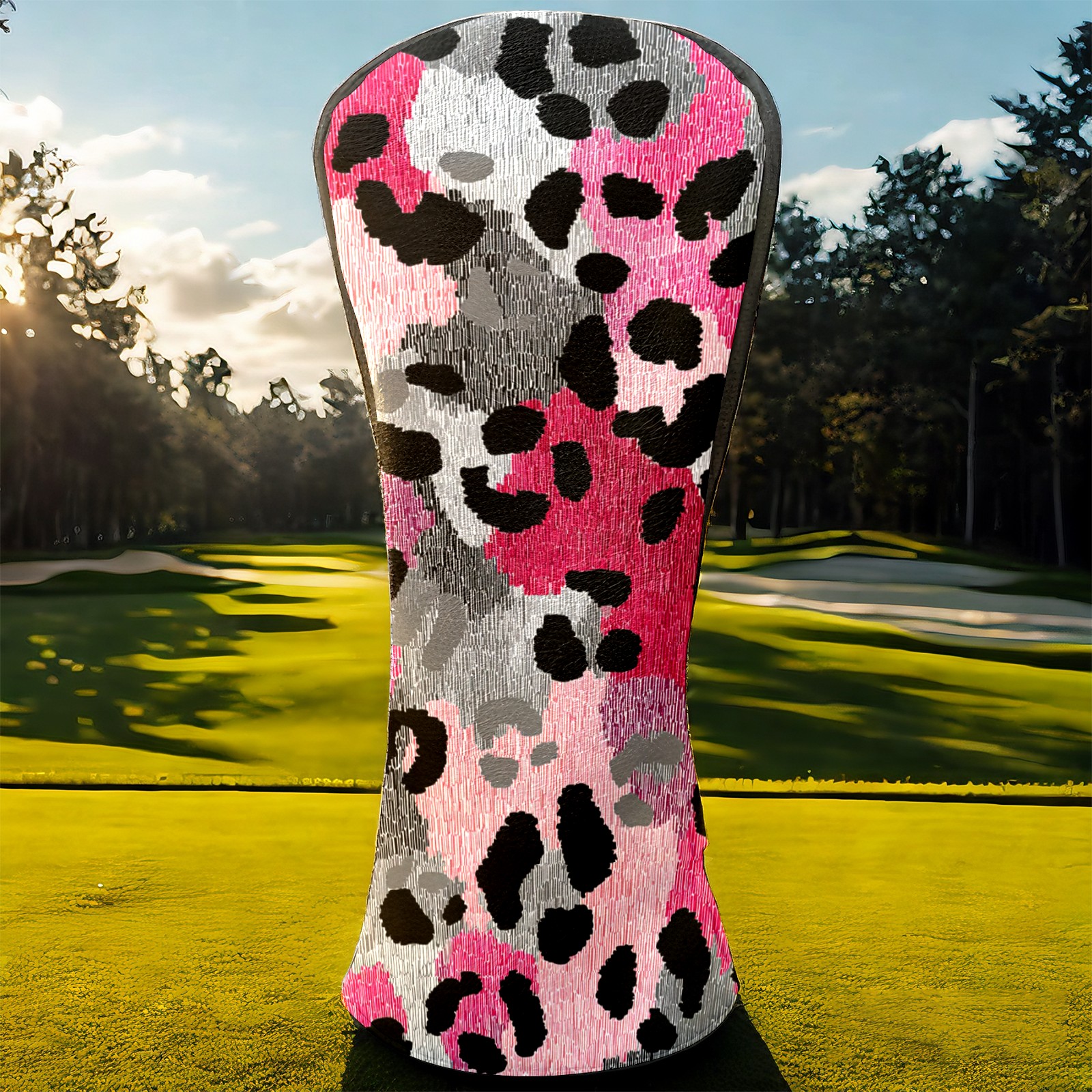 Golf Driver Head Covers Fairway Wood Headcovers, Premium Leather Golf Club Covers with Anti-Scratch Lining 1/3/5 Wood Cover for golf clubs for Women Men (Leopard Print BlackPink)
