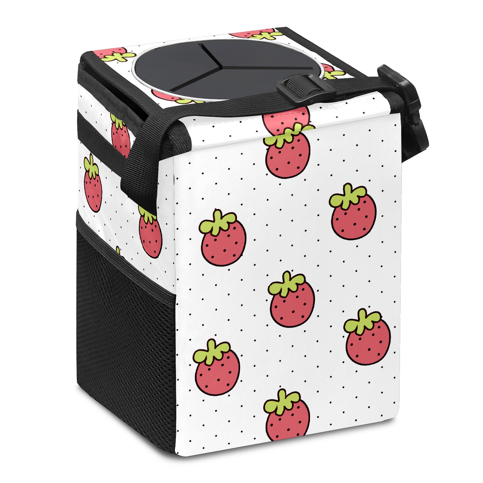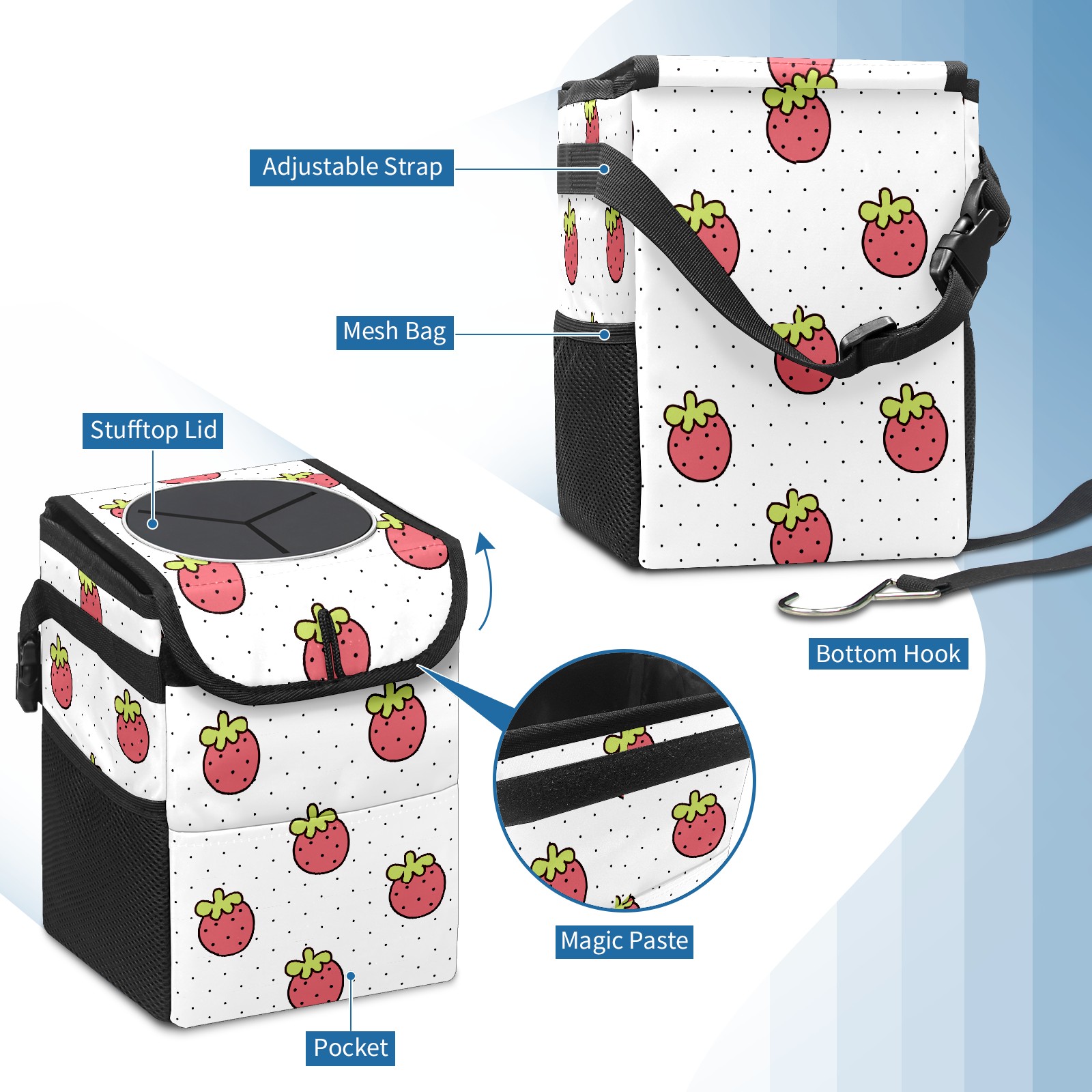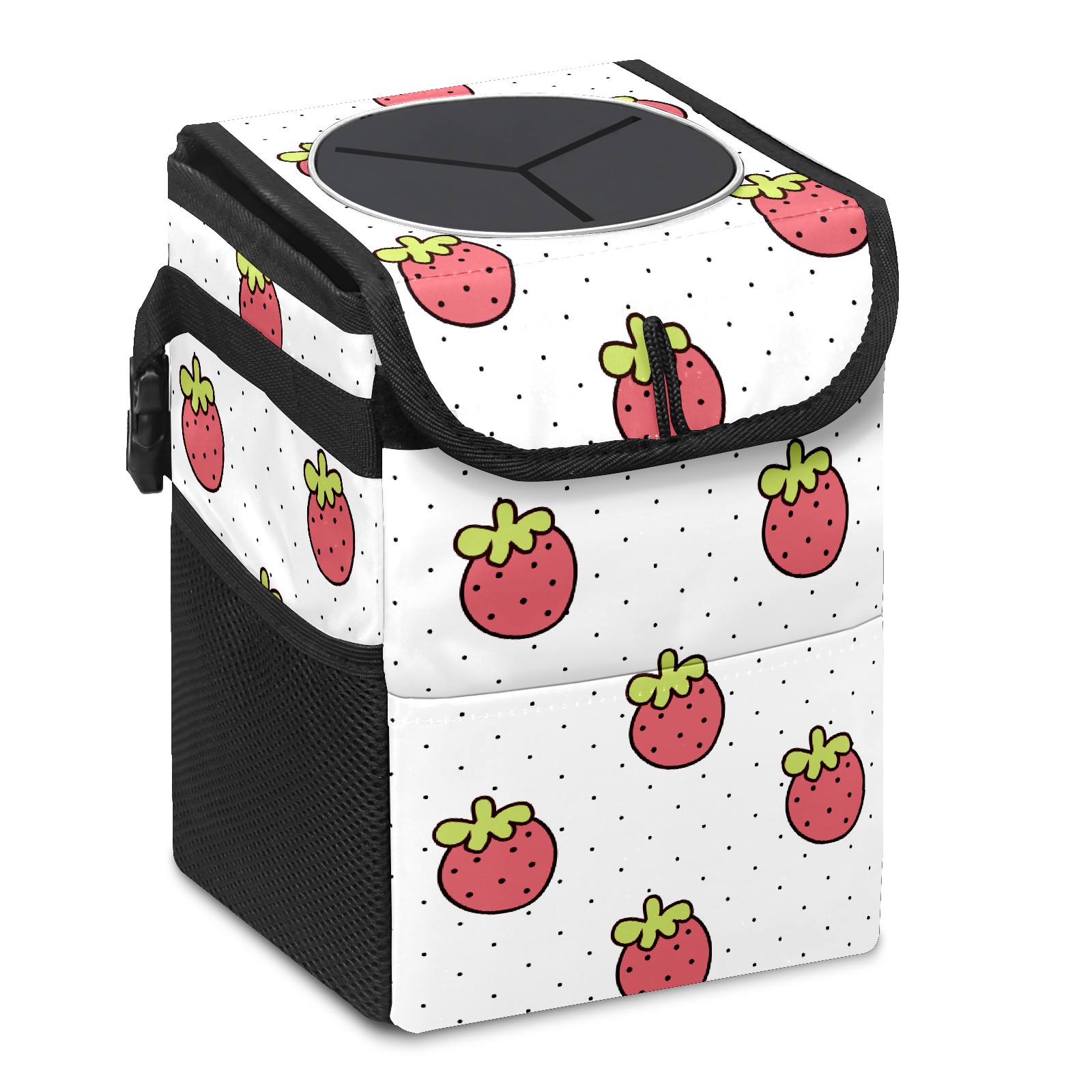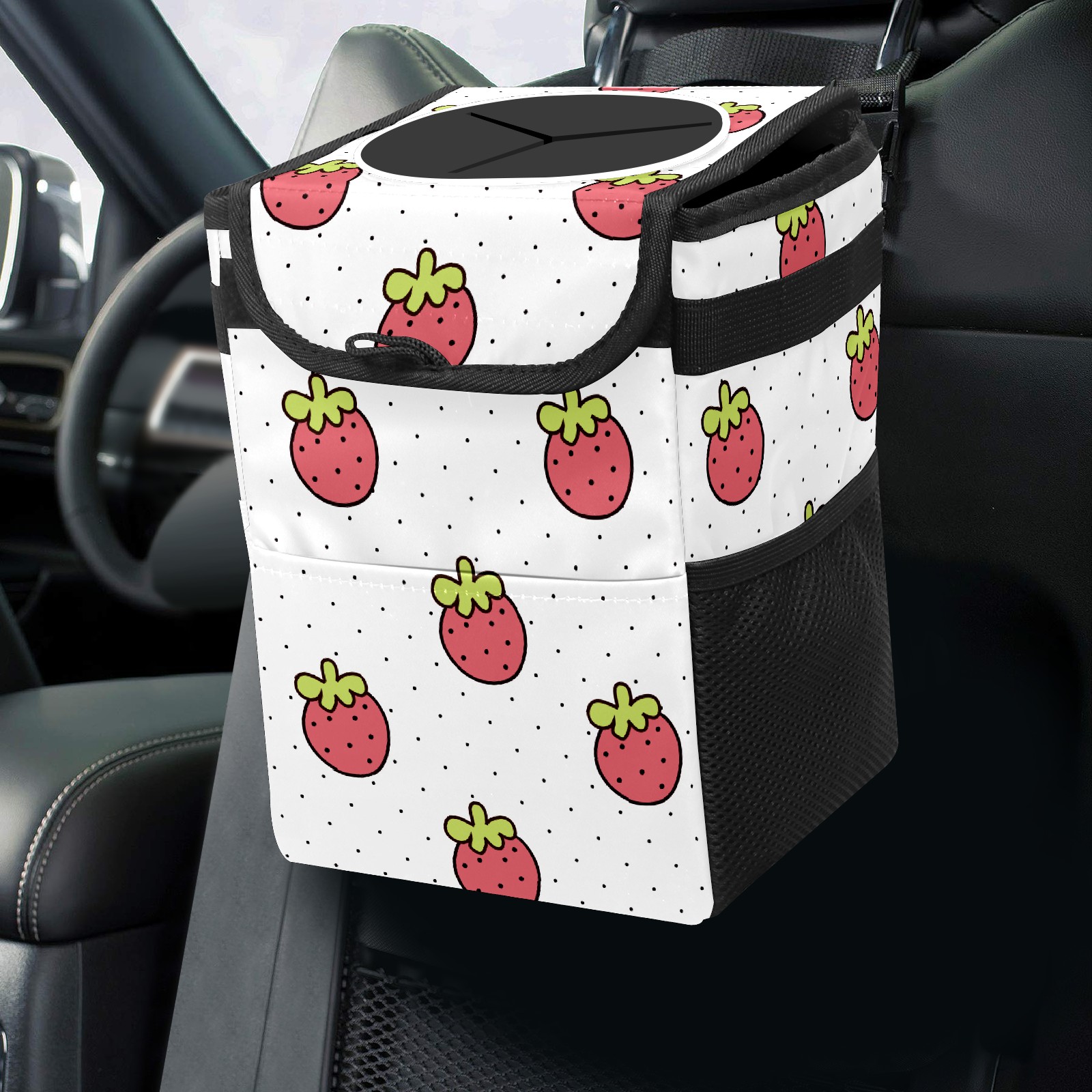 MSINMKOK Car Trash Bin with Lid Auto Garbage Bag Hanging for Back Seat - Leakproof Trash Can for Cars SUVs Trucks Vehicle Car Accessories (Red Strawberry Pattern)