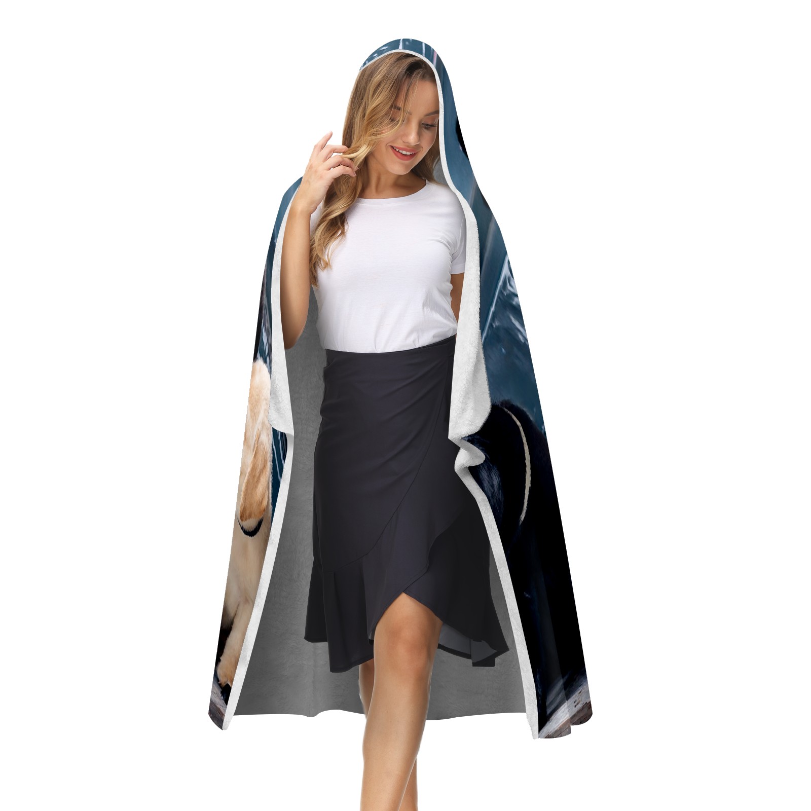 Это пушистое одеяло с капюшоном изготовлено из комбинации полиэстера и кораллового ворса, имеет нежную и пушистую текстуру, теплое и комфортное, даря вам идеальное ощущение обволакивания и приятное время отдыха. Продукт использует технологию печати на лицевой стороне, узор четкий и изысканный, не тускнеет, сочетая практичность и декоративность. настоящее большое одеяло с капюшоном, унисекс, размер подходит для людей всех полов. Уникальный дизайн с капюшоном может покрывать плечи и руки, позволяя вам оставаться теплым, а также свободно двигать руками, не мешая смотреть телевизор, играть в игры, читать, дремать и другие повседневные активности. Оно идеально подходит для расслабления дома, а также для кемпинга и других мероприятий на открытом воздухе, обладает высокой практичностью. Кроме того, это трогательный подарок для семьи, друзей и партнера, передающий тепло и заботу. Советы по стирке: машинная стирка, не блещить, рекомендуется сушка на низкой температуре, удобно в уходе и не деформируется.