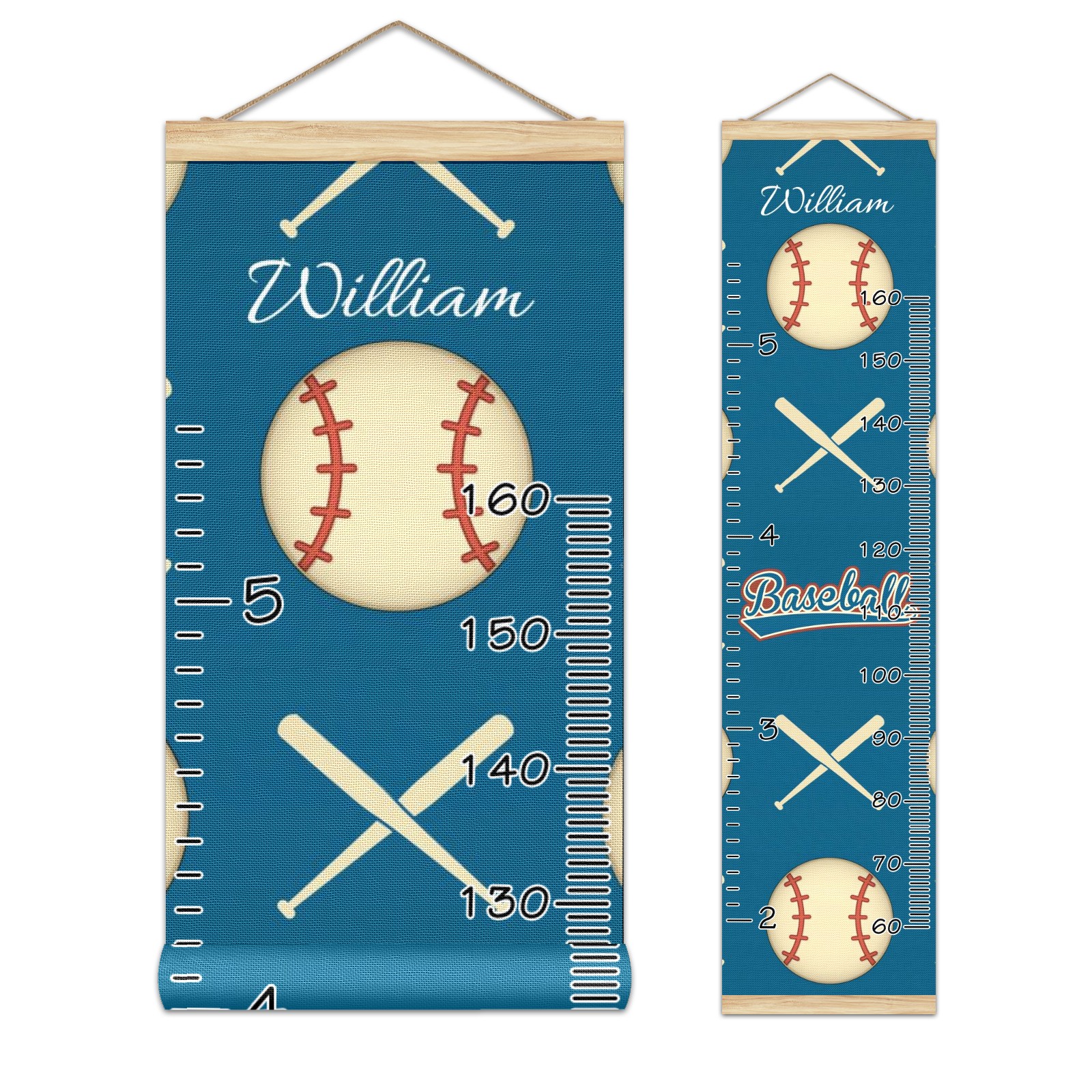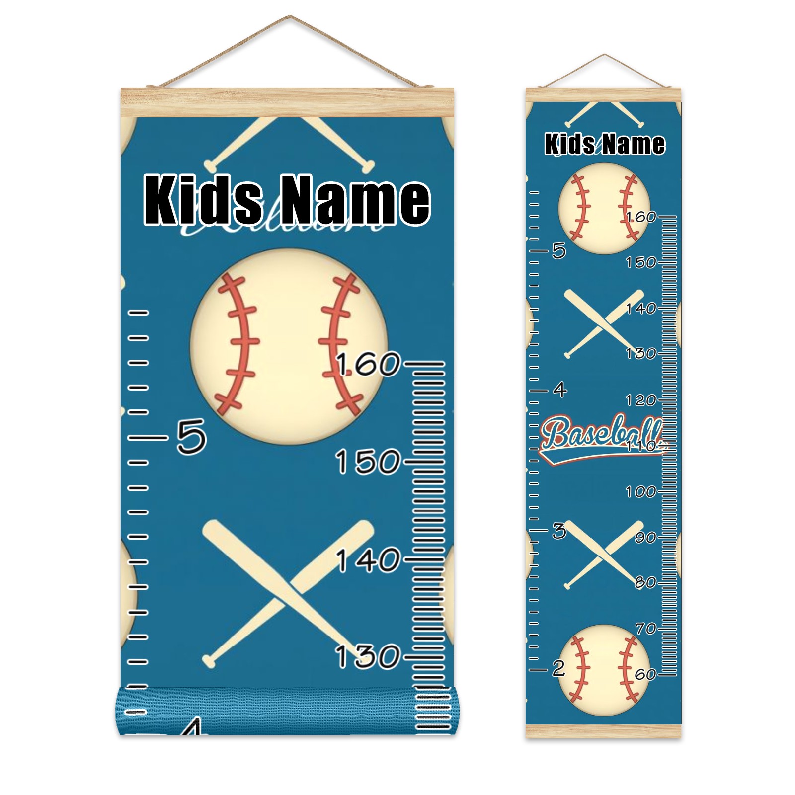 Personalized Kids Name Growth Chart Ruler for Wall Wood Frame Canvas Height Measure Chart 13.4x56 in Hanging Growth Chart Baseball And Baseball Bat Sport3.3 Boys Girls Room Decor