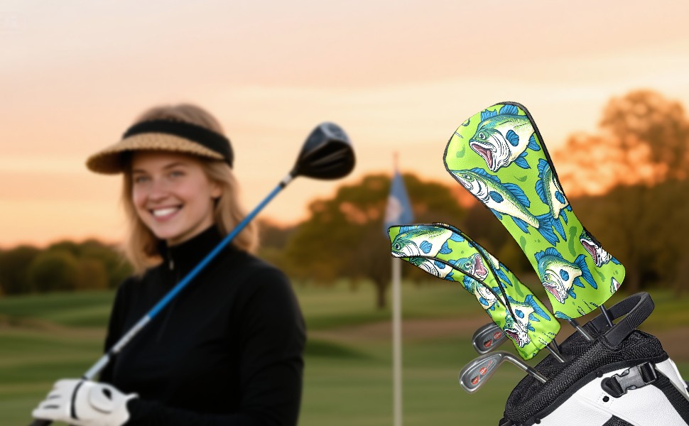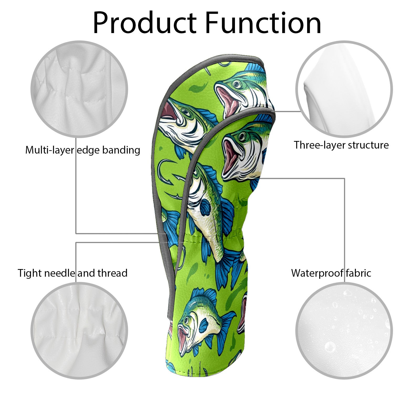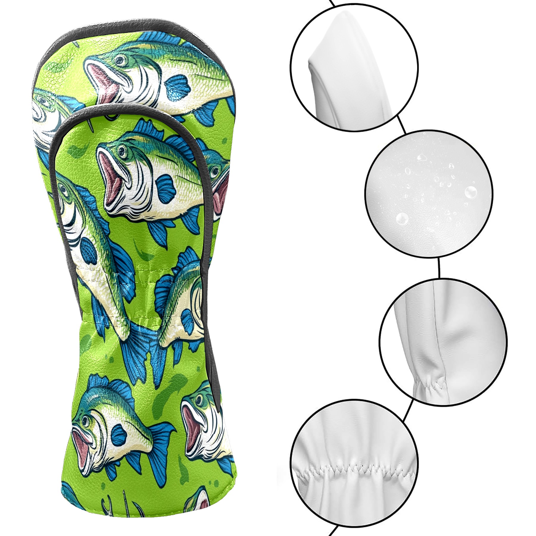 Golf Head Covers Leather Driver Head Cover, Premium Golf Club Covers with Anti-Scratch Lining for Women Men 1/3/5 Wood Cover for Golf Clubs (Fish (1))