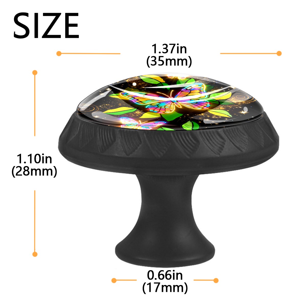 • <p>Decorative Drawer Knobs Pulls Cabinet&nbsp;Handles</p> <p>Package Contents:</p> <p>4 x Cabinet&nbsp; Handles</p> <p>4 x 1.1’’ &nbsp; M ounting Screws &nbsp;</p> <p>4 x 1.37’’ &nbsp;Matching Screws </p> <p>Material:</p> <p>Crafted with a crystal glass surface, combined with ABS plastic and quality materials for durability and aesthetics.</p> <p>Size:</p> <p>Each knob measures 1.37 inches in width by 1.10 inches in height, fitting most standard drawers and cabinet doors.</p> <p>Screw Lengths:</p> <p>Available in two lengths: 1.1 inches and 1.37 inches, to accommodate various board thicknesses.</p> <p>Easy to Install:</p> <p>Each drawer knob comes with a fitting screw, making installation easy without the need for additional accessories.</p> <p>Wide Application:</p> <p>These drawer pulls are versatile for use in various home settings, including cabinets, dressers, drawers, wardrobes, nightstands, closets, bookshelves, kitchens, bathrooms, bedrooms, living rooms, and more,&nbsp; adding consistency and sophistication to your home decor.</p>