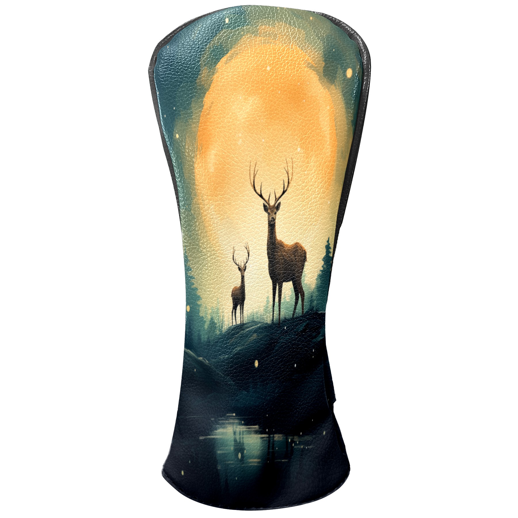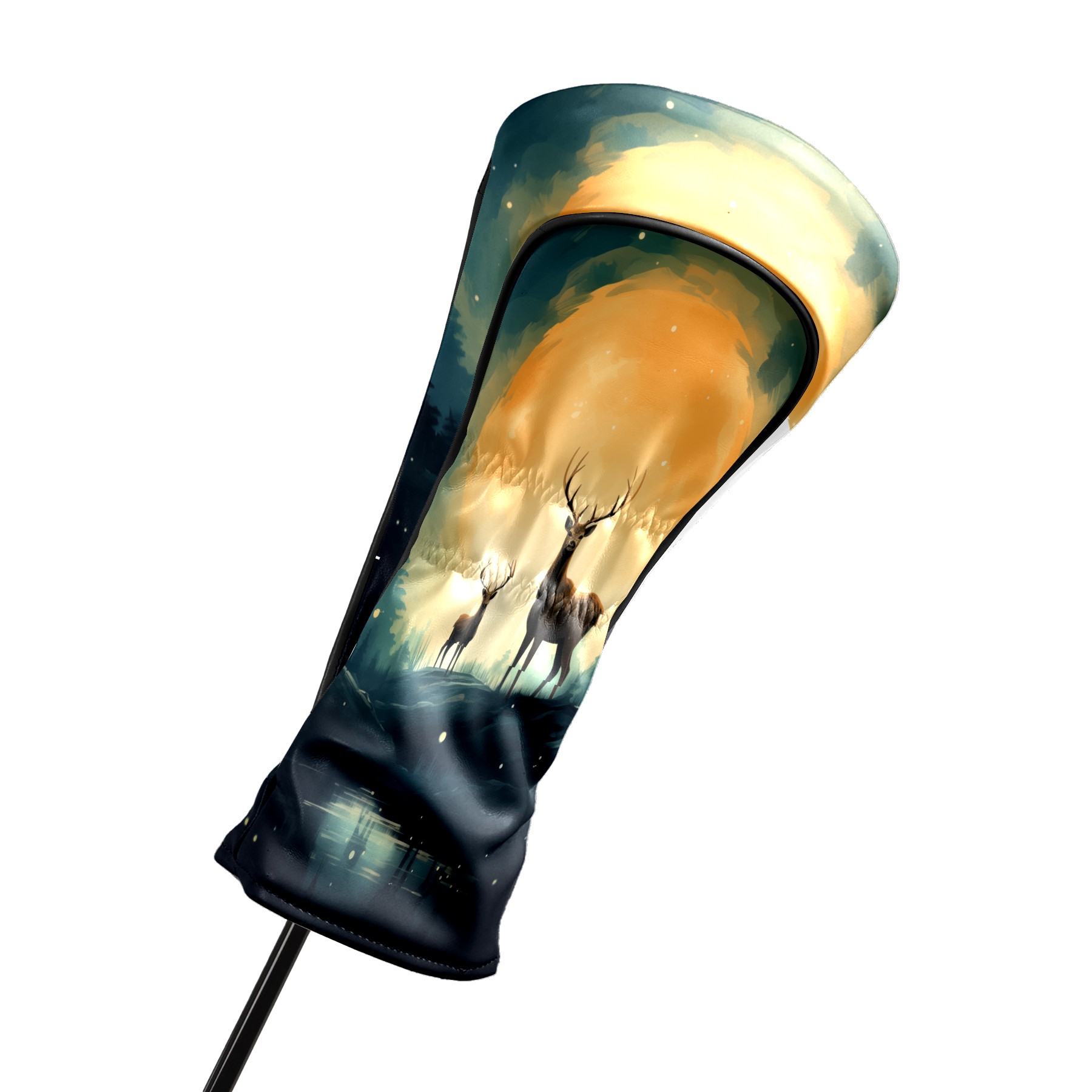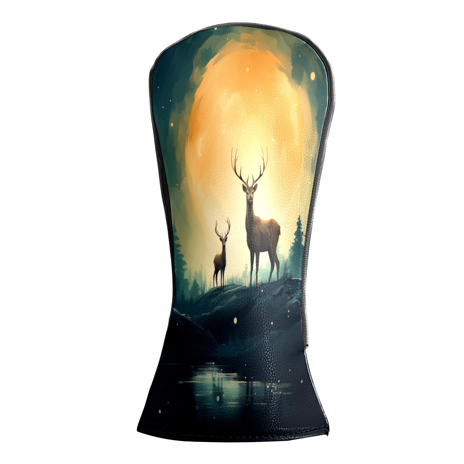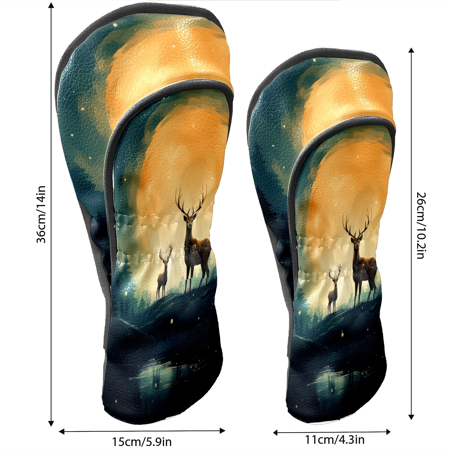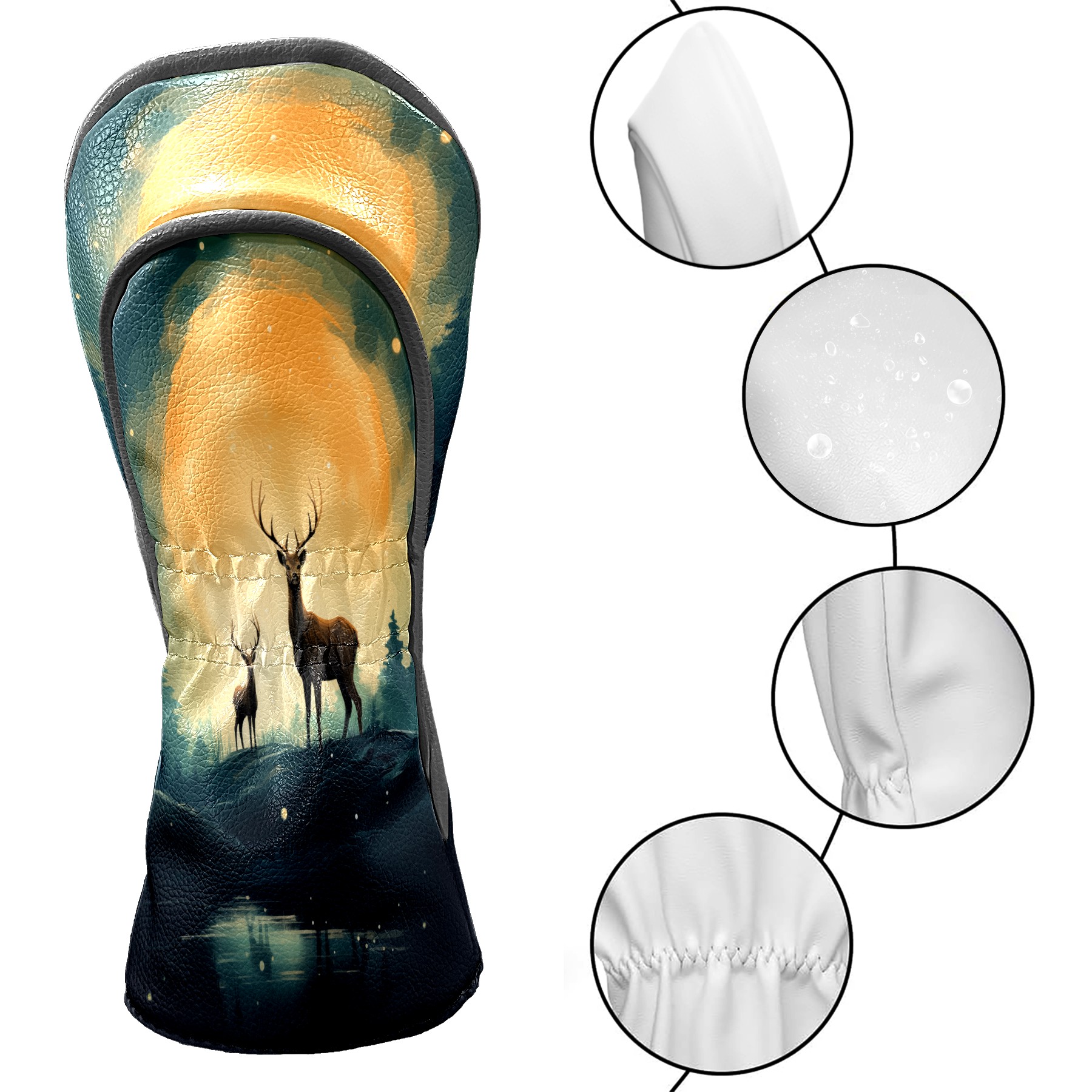 Golf Head Covers Leather Driver Head Cover, Premium Golf Club Covers with Anti-Scratch Lining for Women Men 1/3/5 Wood Cover for Golf Clubs (Deer With Moon)