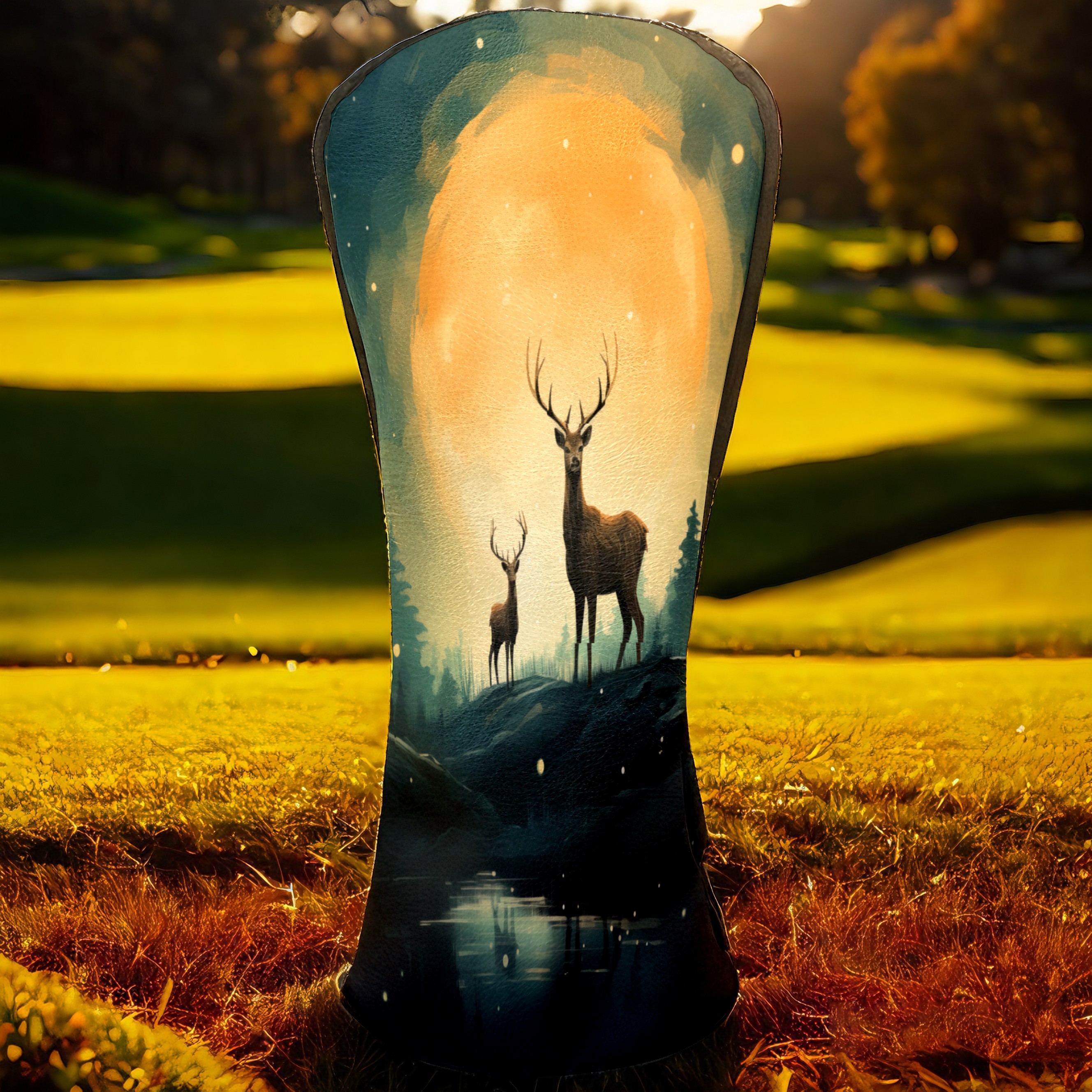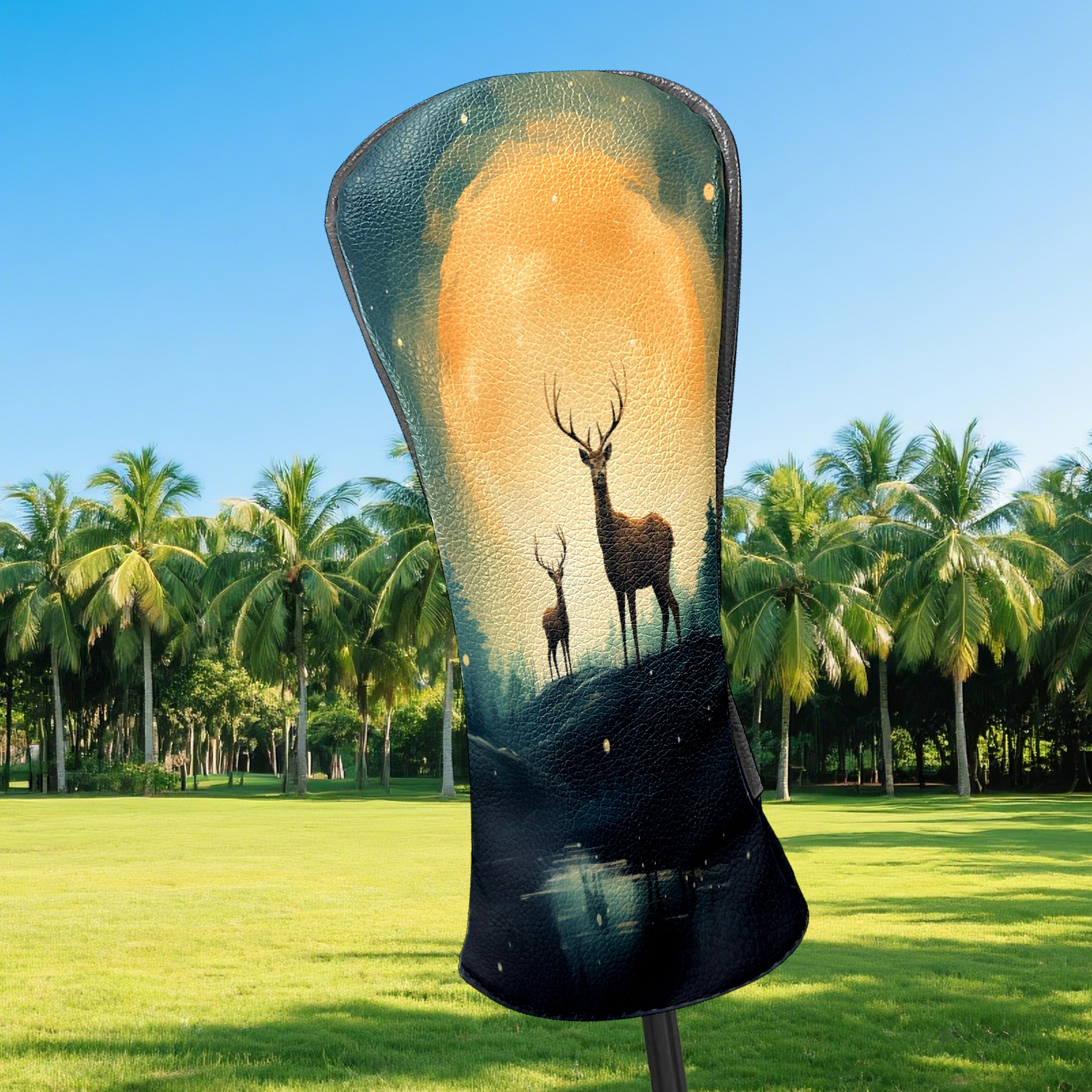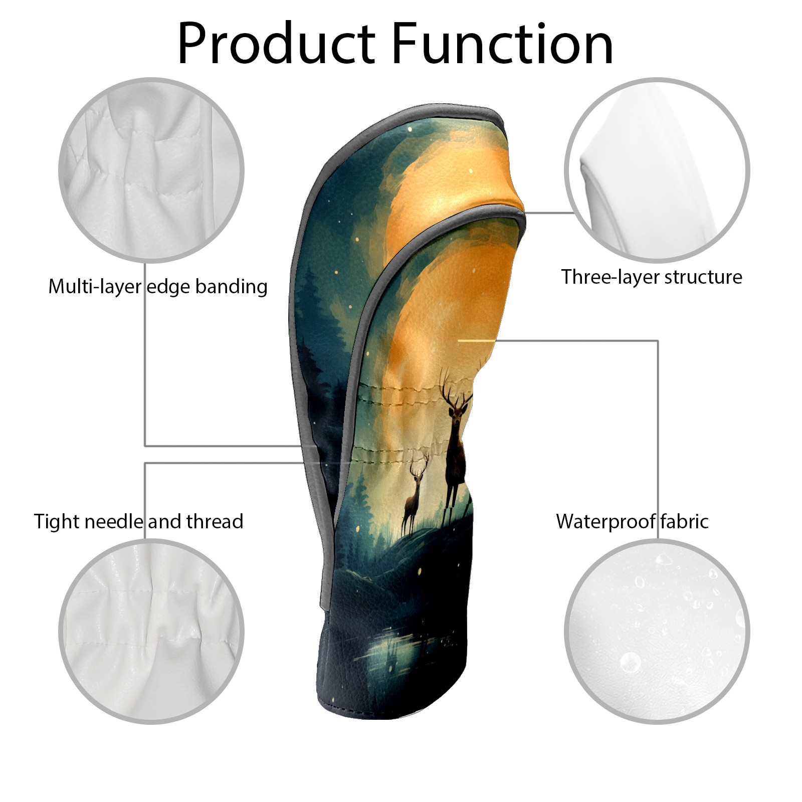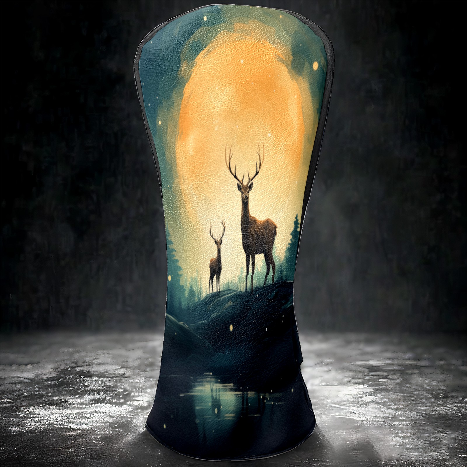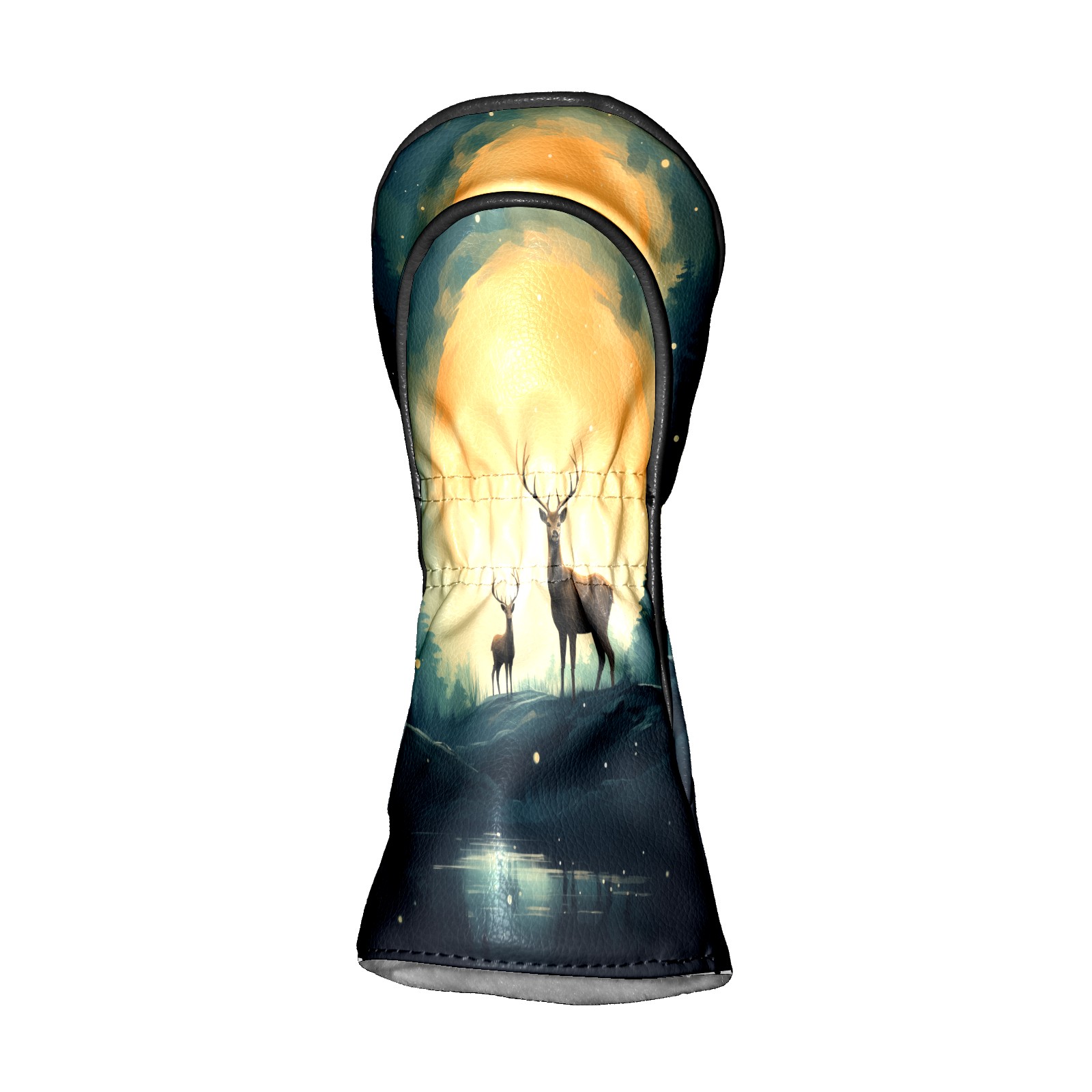 Golf Head Covers Leather Driver Head Cover, Premium Golf Club Covers with Anti-Scratch Lining for Women Men 1/3/5 Wood Cover for Golf Clubs (Deer With Moon)