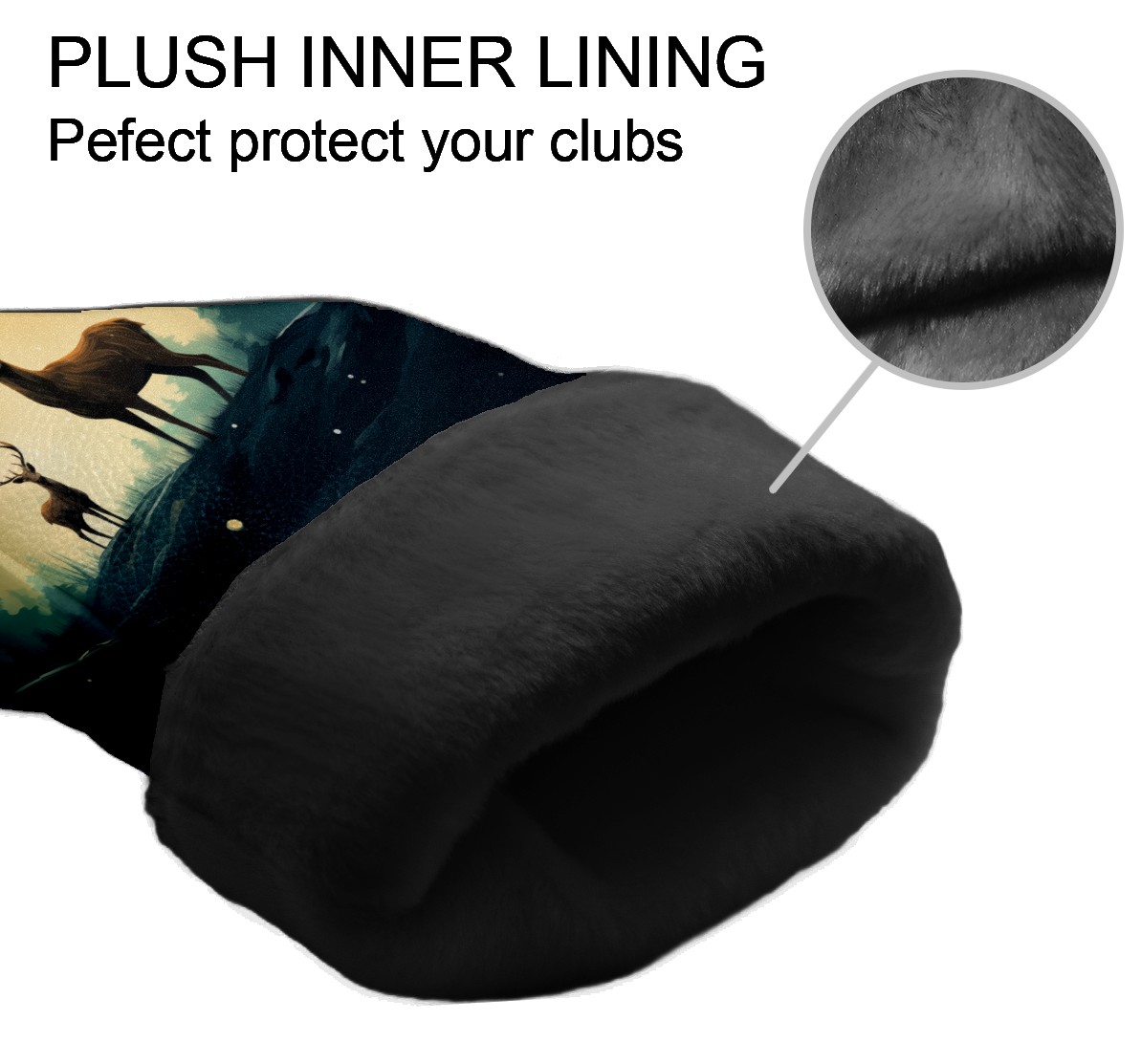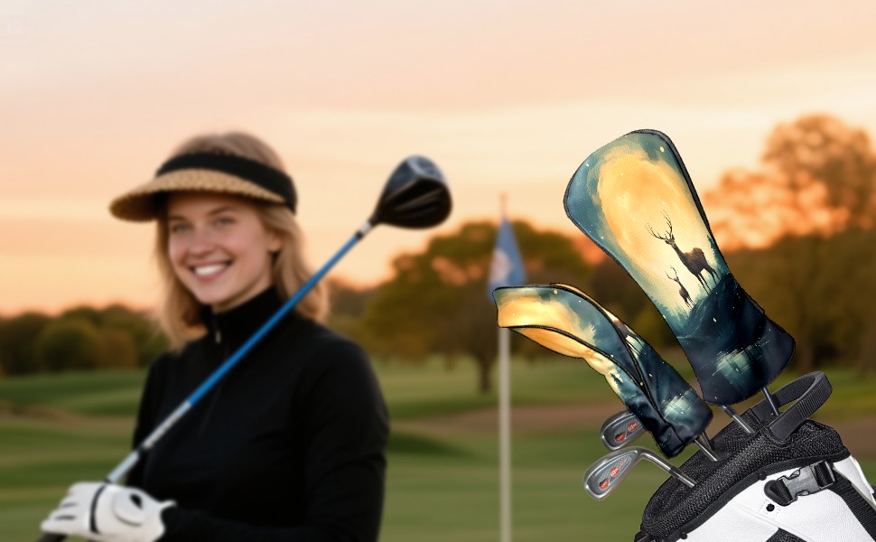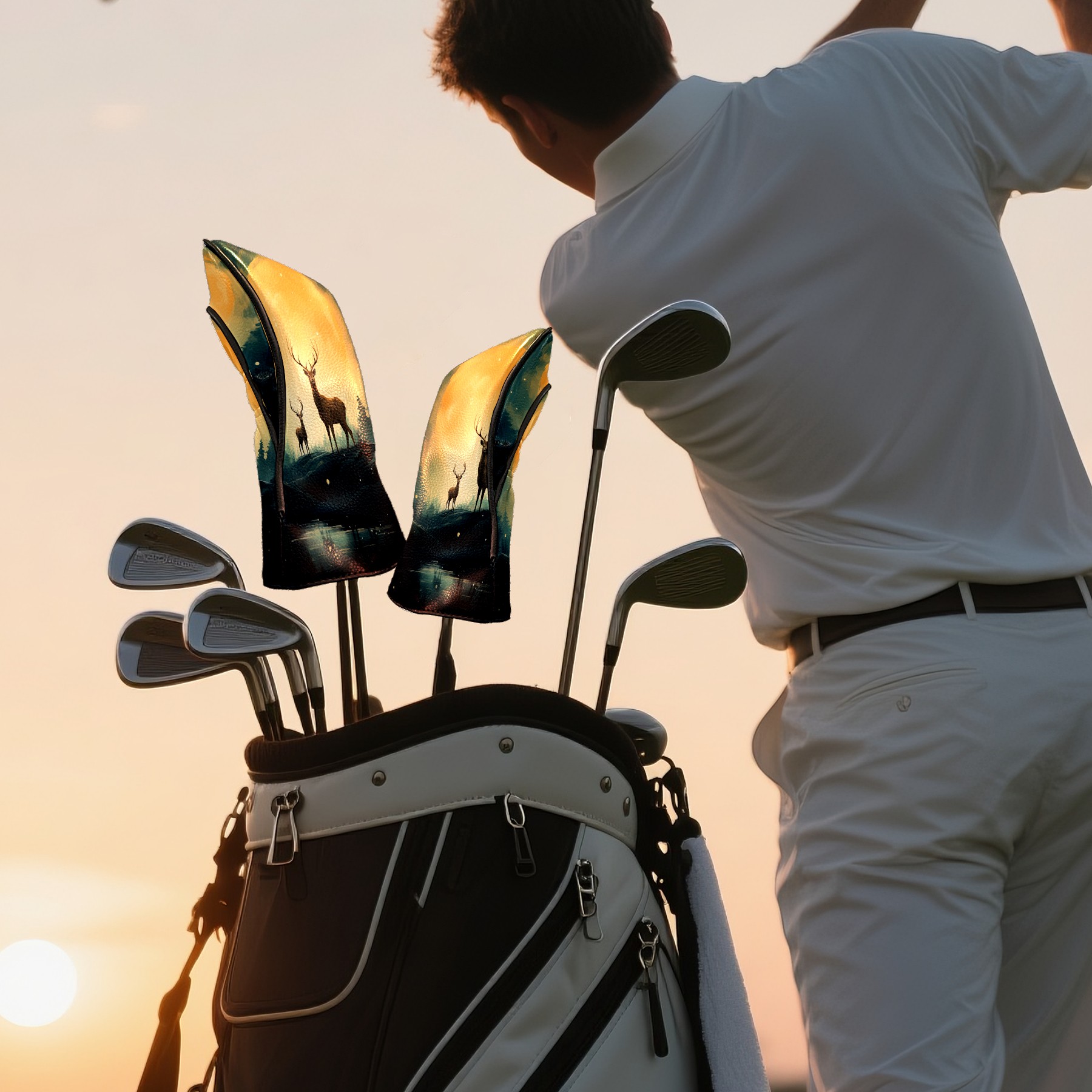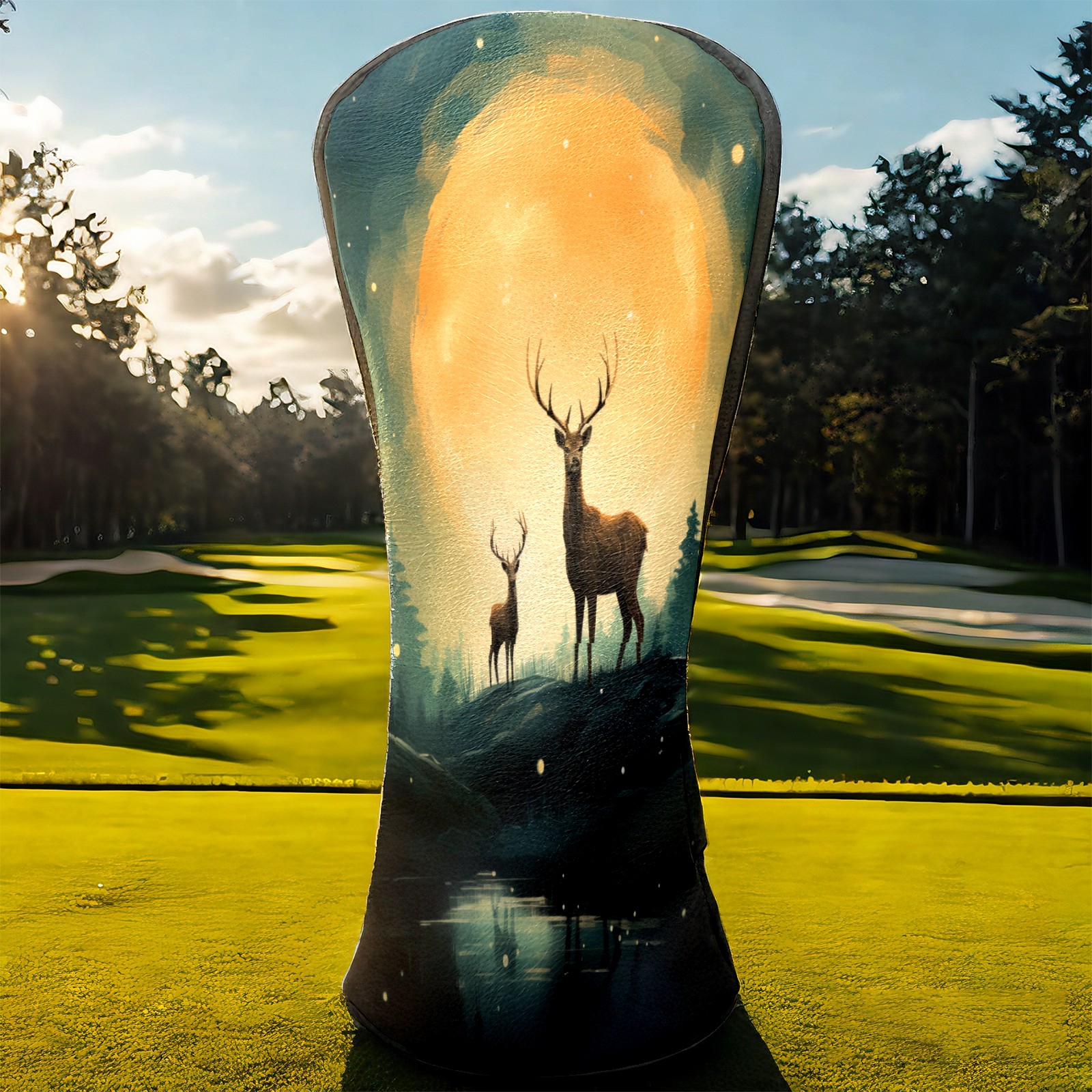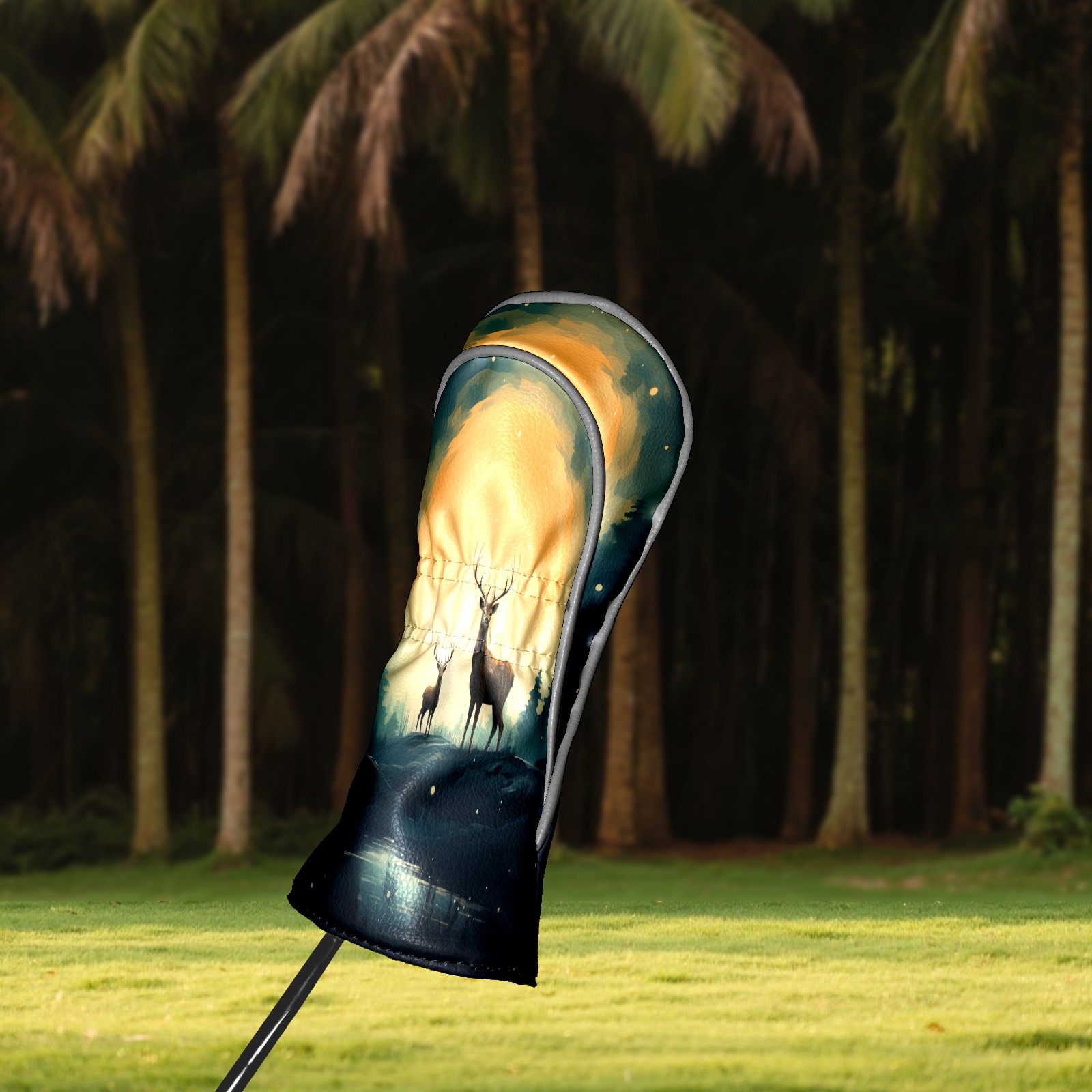 Golf Head Covers Leather Driver Head Cover, Premium Golf Club Covers with Anti-Scratch Lining for Women Men 1/3/5 Wood Cover for Golf Clubs (Deer With Moon)