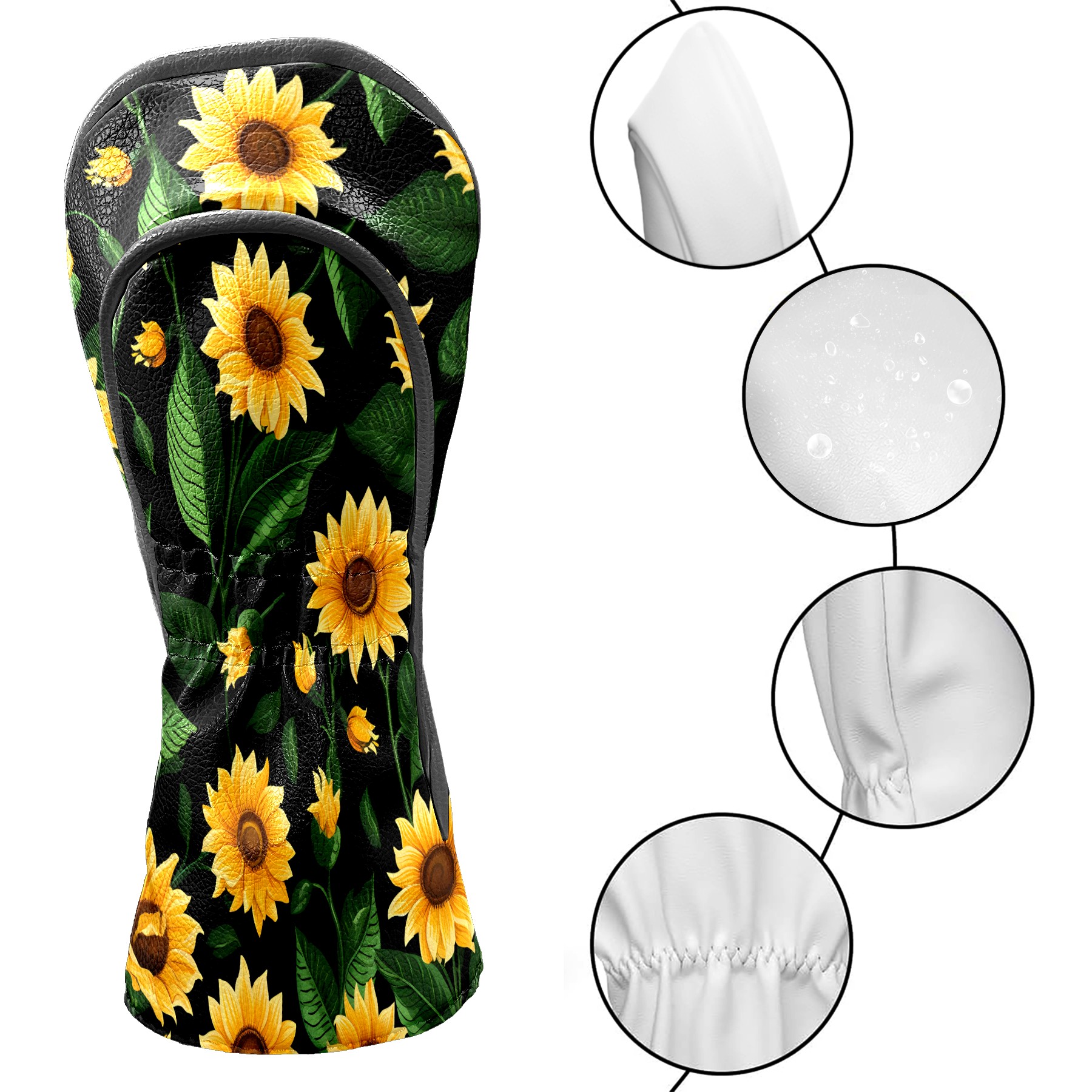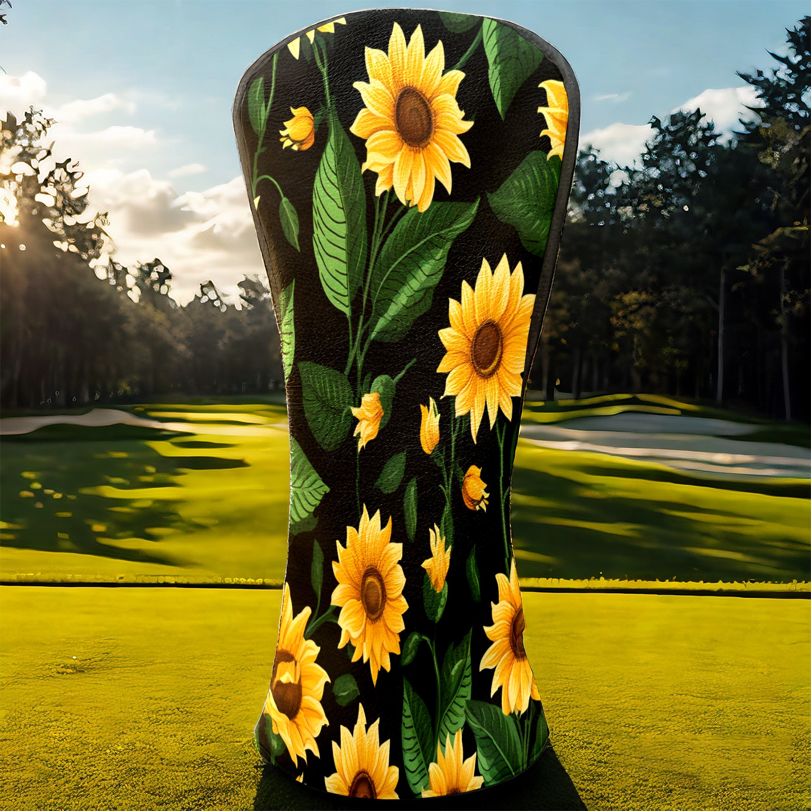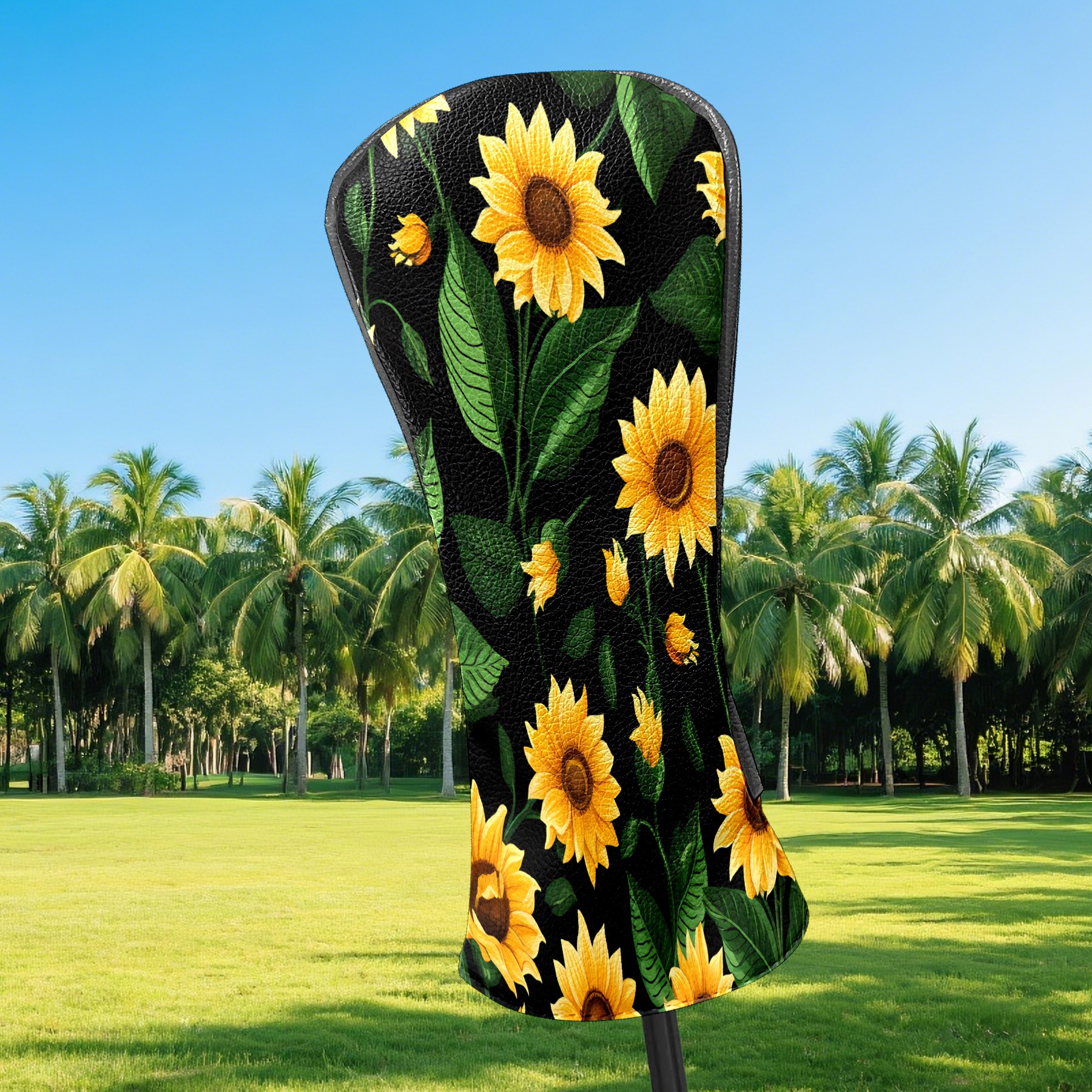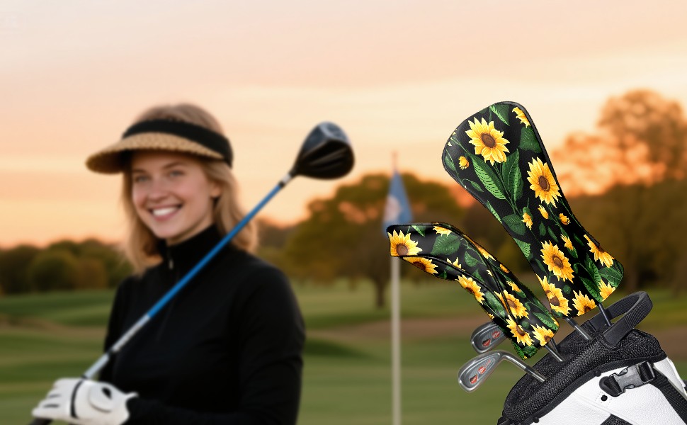 Golf Head Covers Leather Driver Head Cover, Premium Golf Club Covers with Anti-Scratch Lining for Women Men 1/3/5 Wood Cover for Golf Clubs (Tropical Sunflowers)