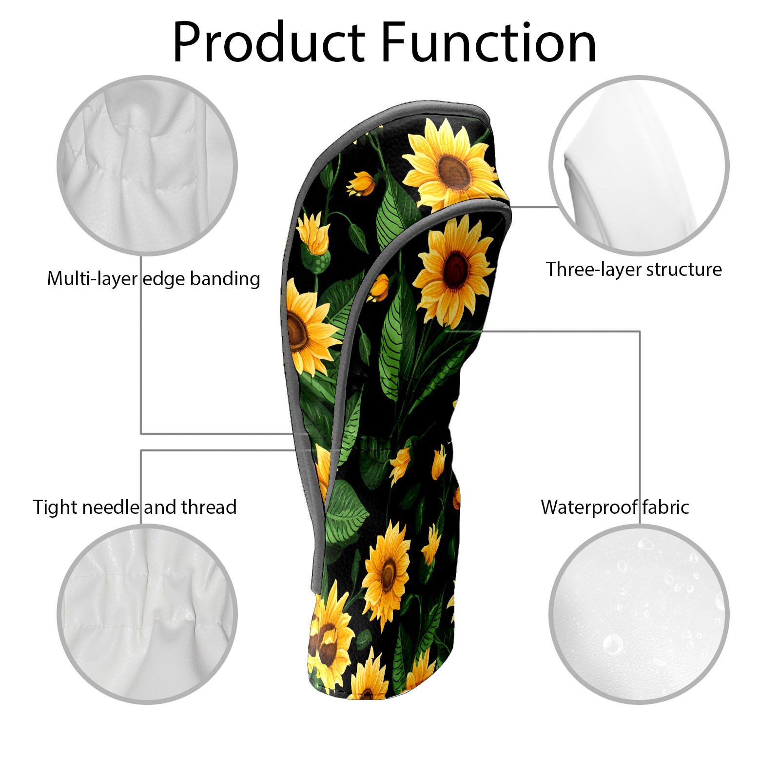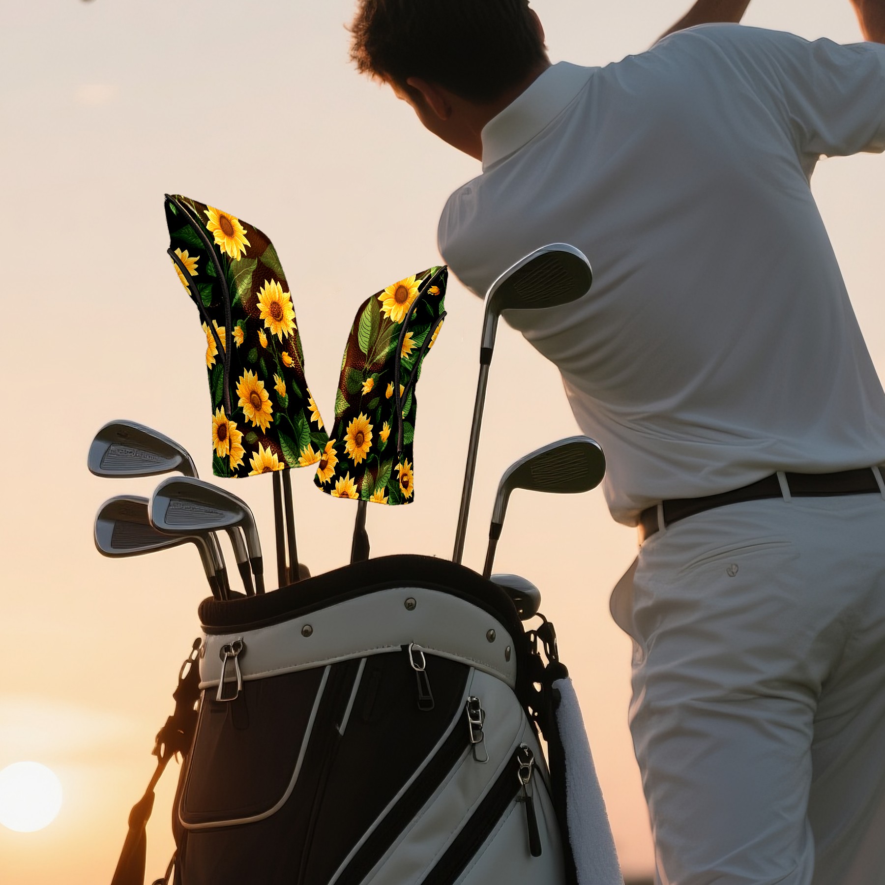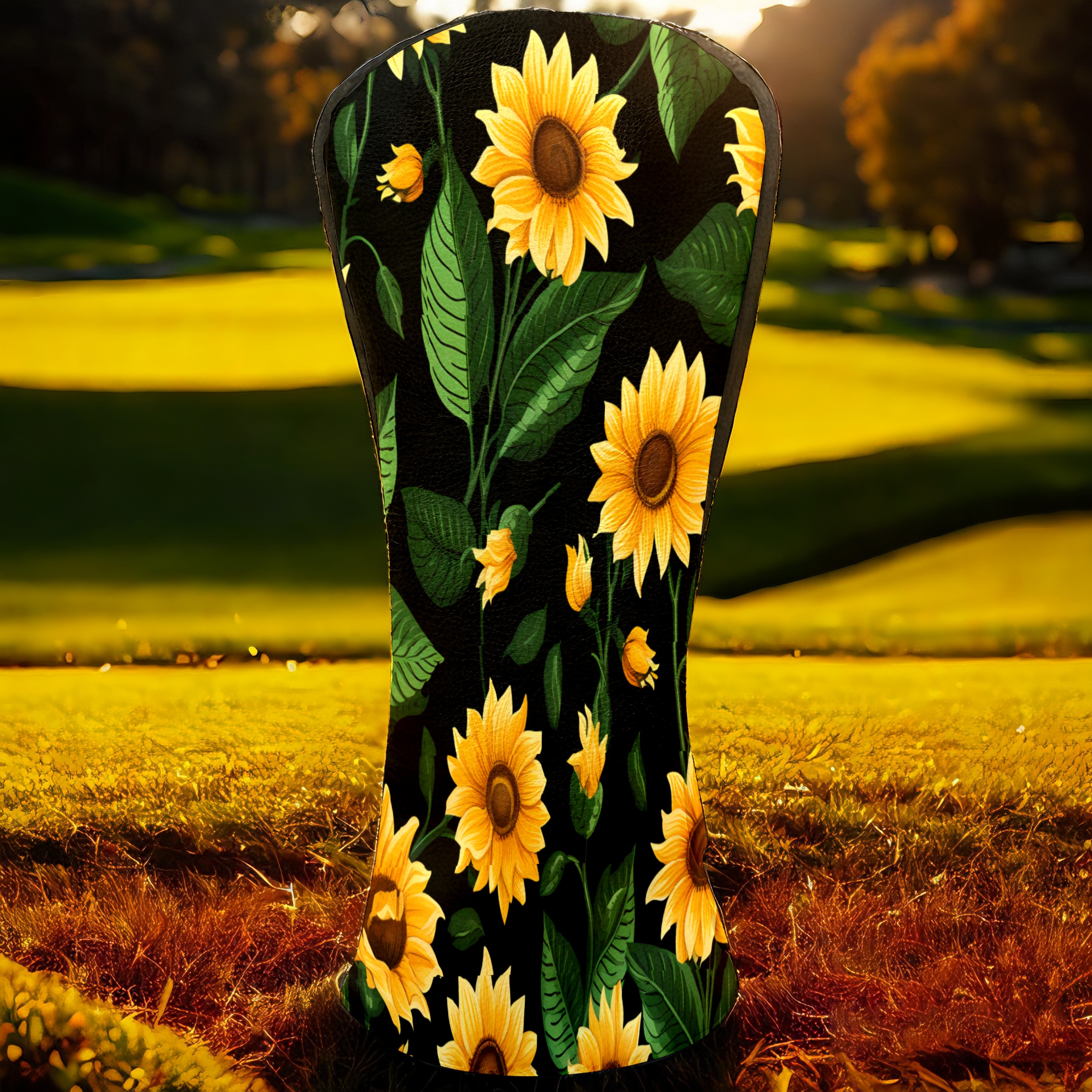 Golf Head Covers Leather Driver Head Cover, Premium Golf Club Covers with Anti-Scratch Lining for Women Men 1/3/5 Wood Cover for Golf Clubs (Tropical Sunflowers)