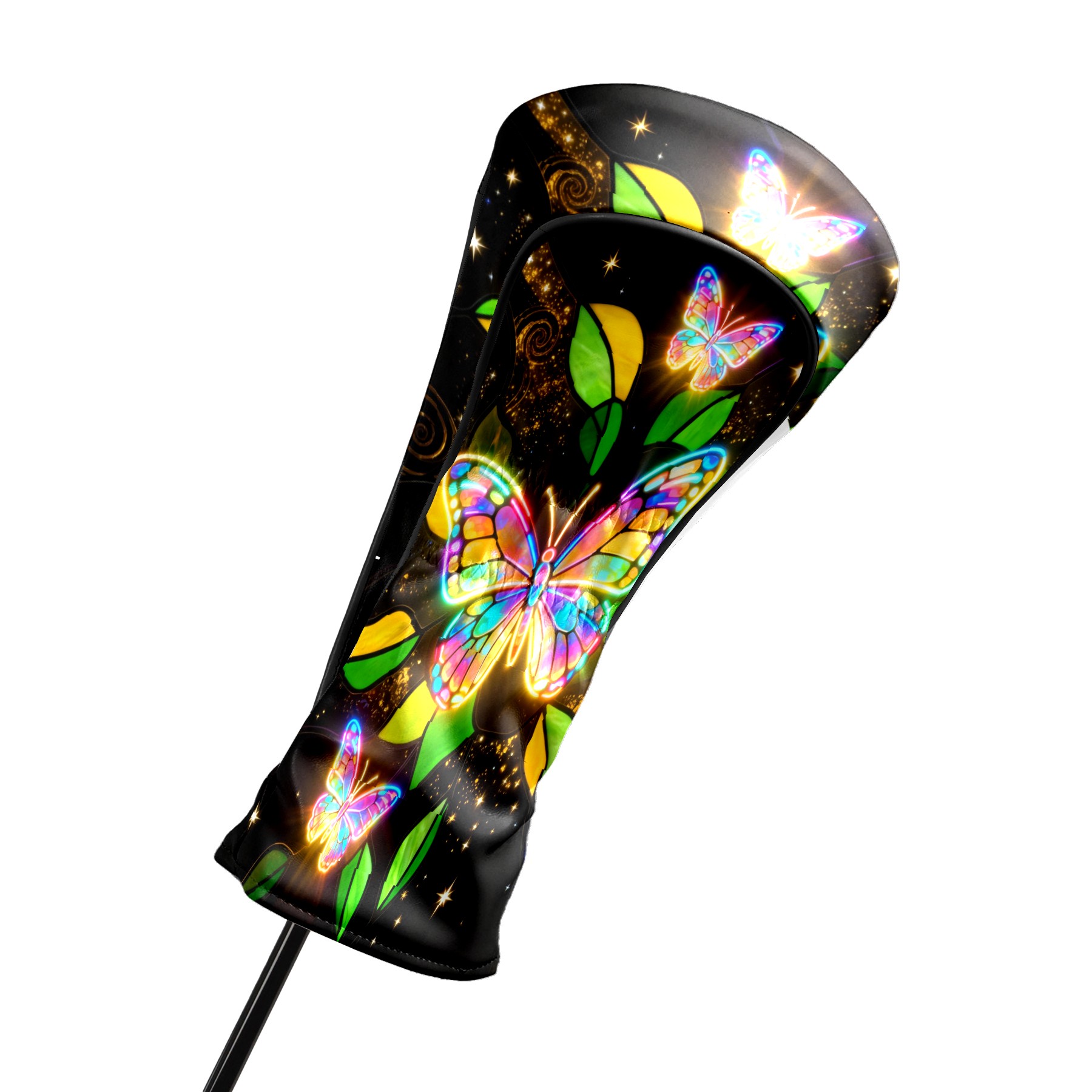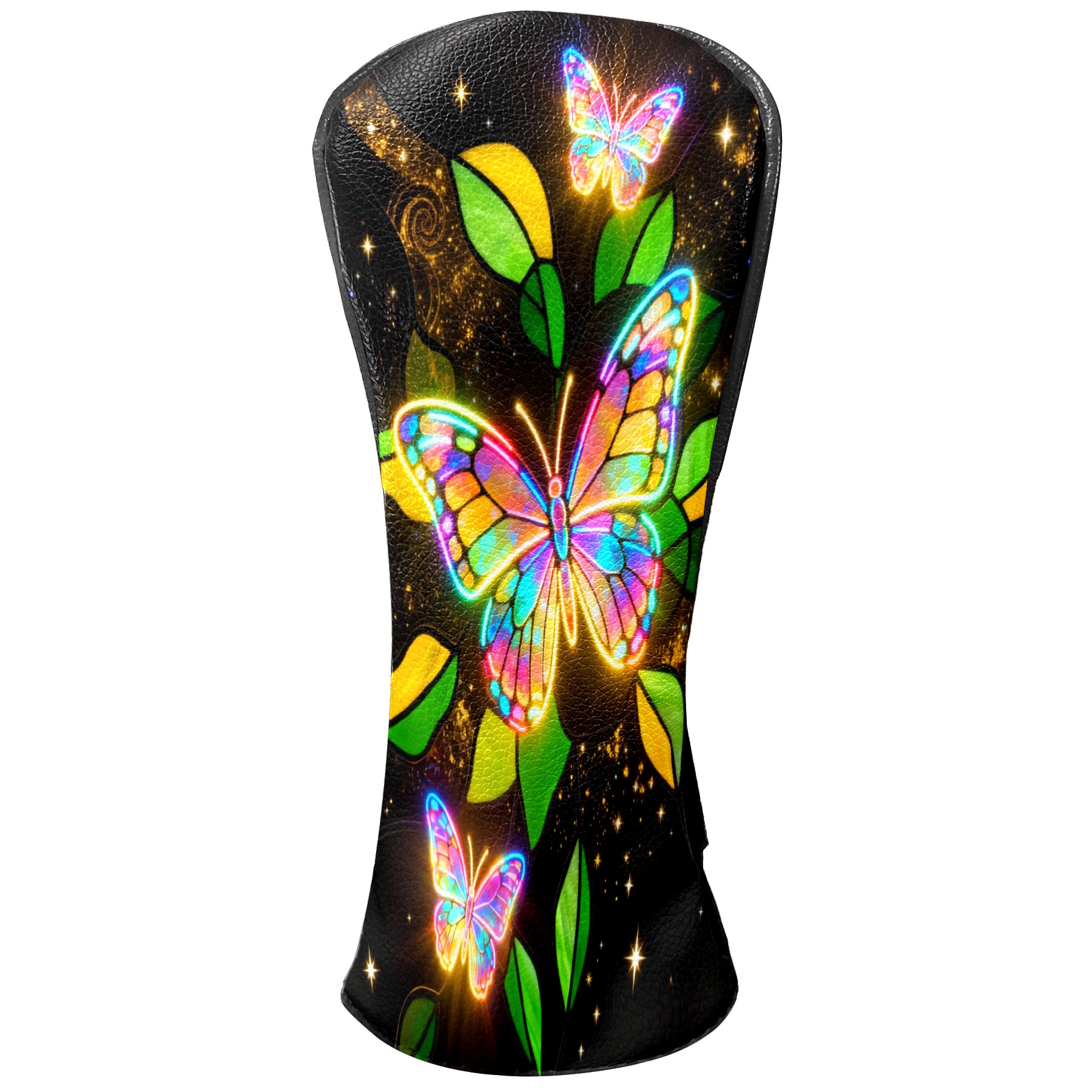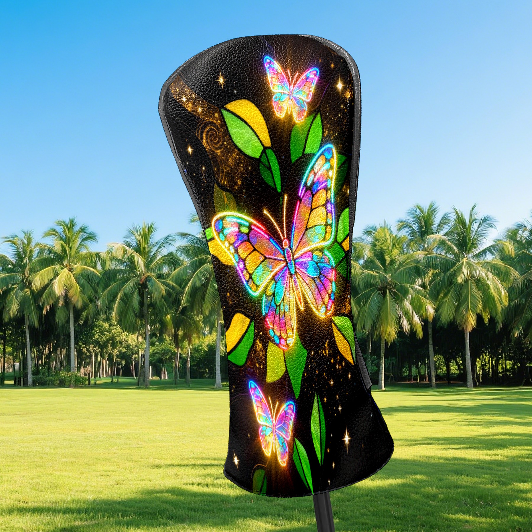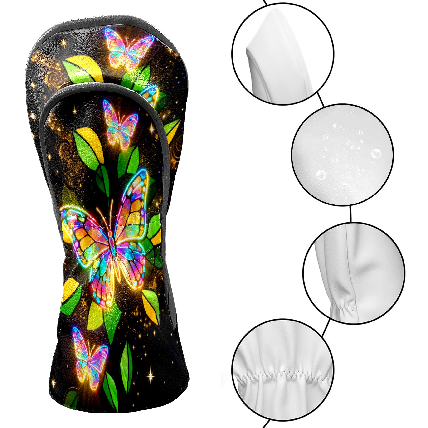 Golf Head Covers Leather Driver Head Cover, Premium Golf Club Covers with Anti-Scratch Lining for Women Men 1/3/5 Wood Cover for Golf Clubs (Butterfly)