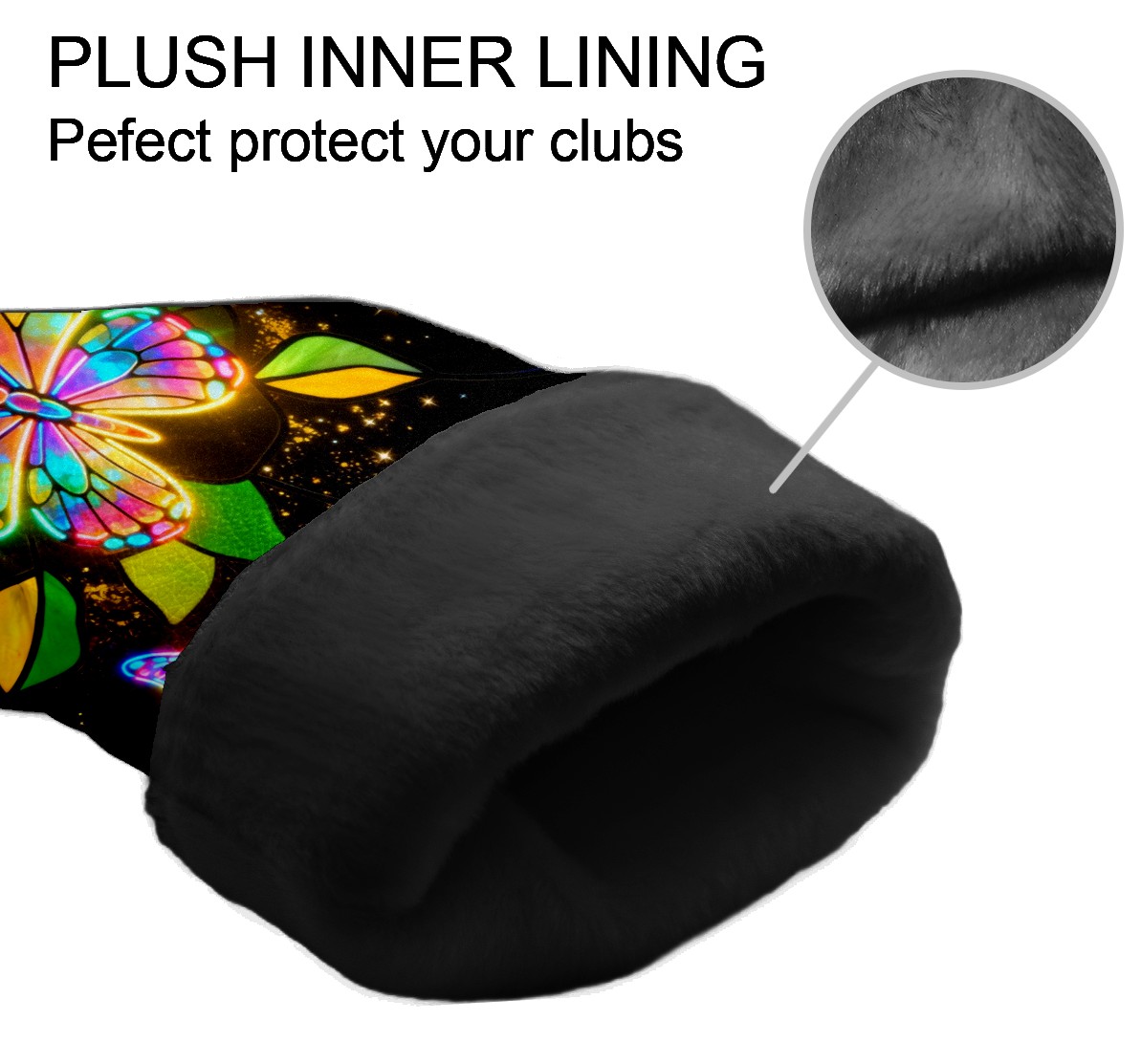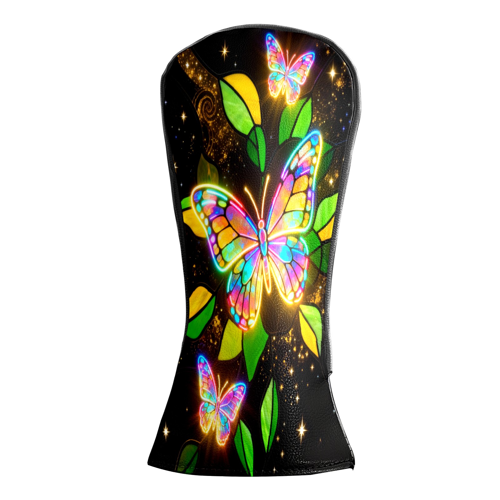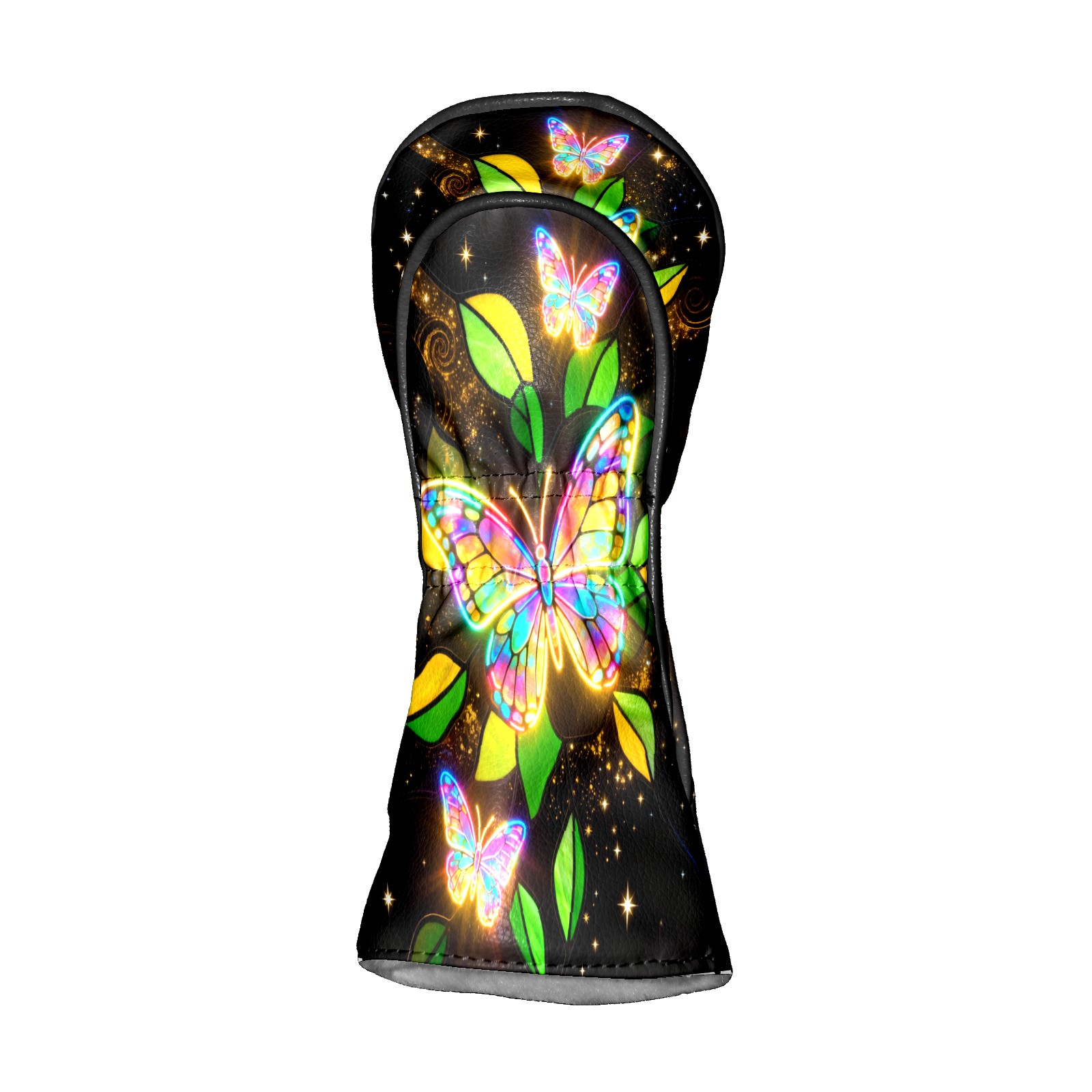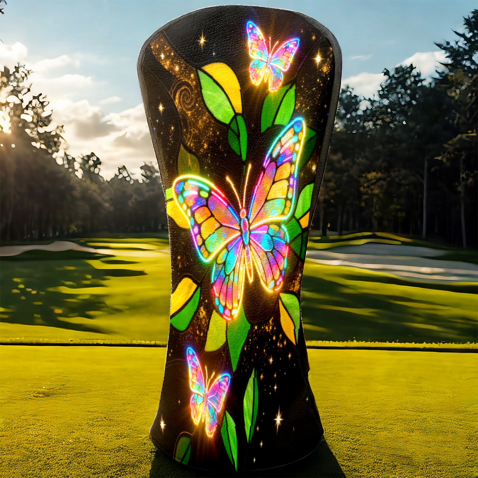 Golf Head Covers Leather Driver Head Cover, Premium Golf Club Covers with Anti-Scratch Lining for Women Men 1/3/5 Wood Cover for Golf Clubs (Butterfly)
