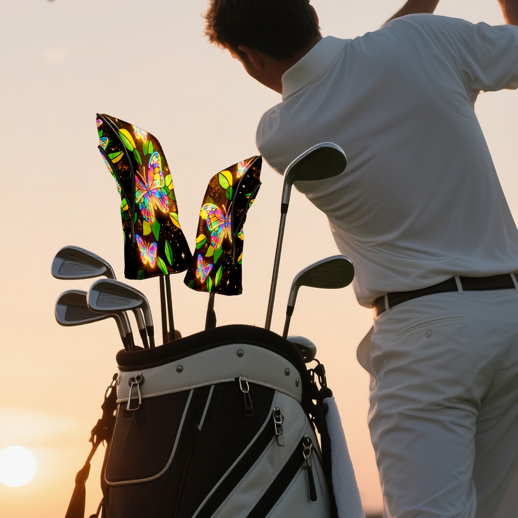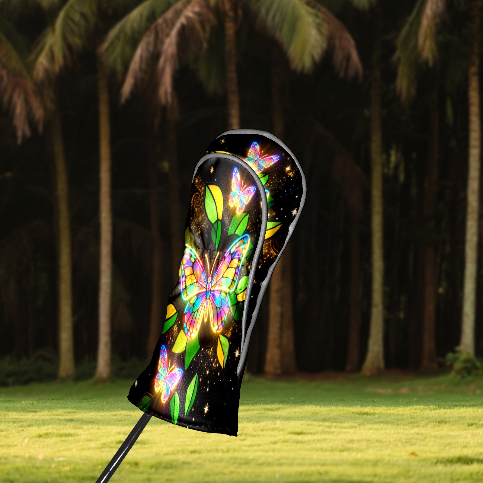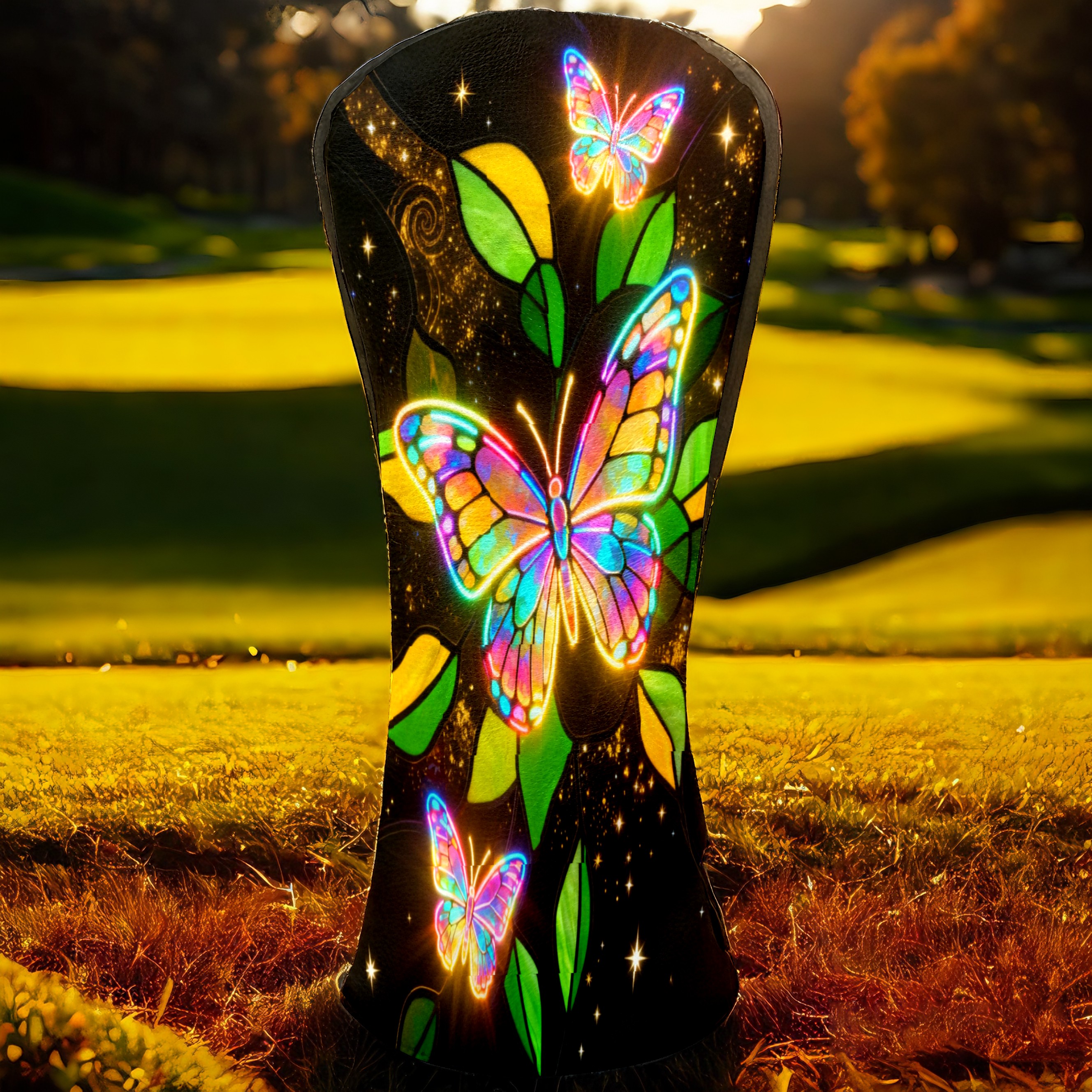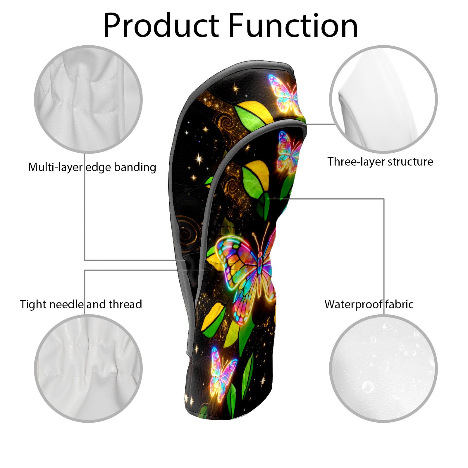 Golf Head Covers Leather Driver Head Cover, Premium Golf Club Covers with Anti-Scratch Lining for Women Men 1/3/5 Wood Cover for Golf Clubs (Butterfly)